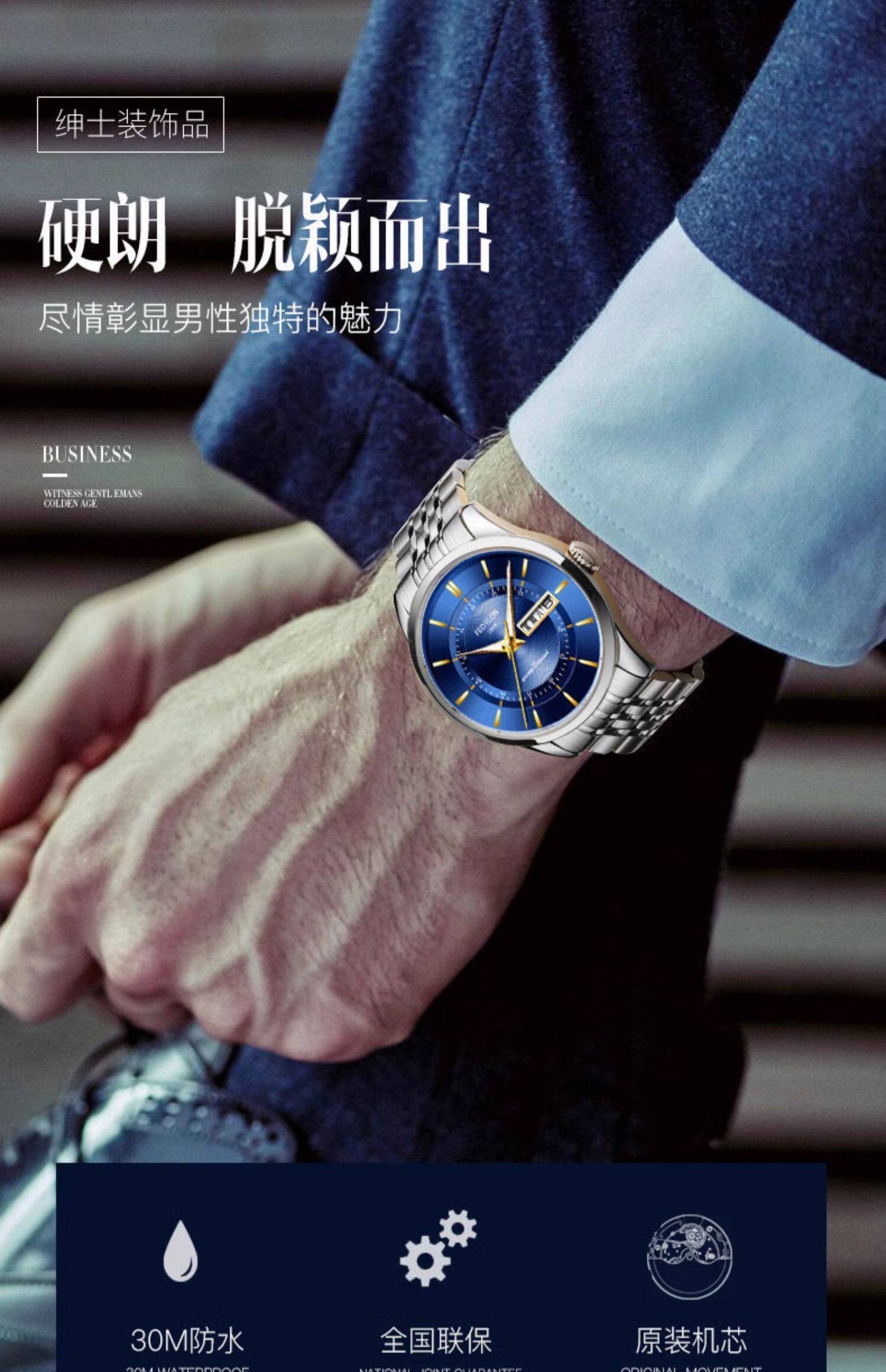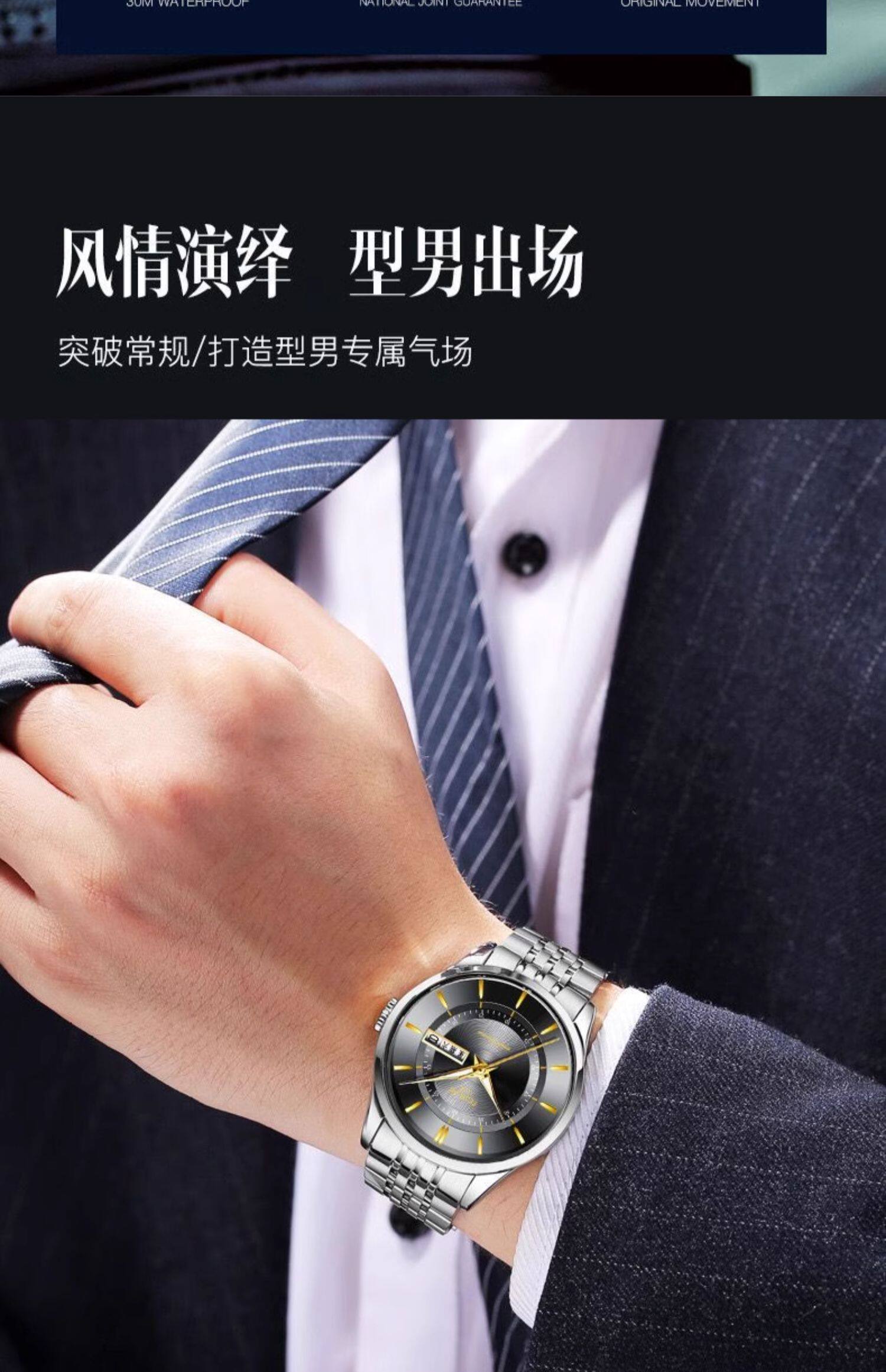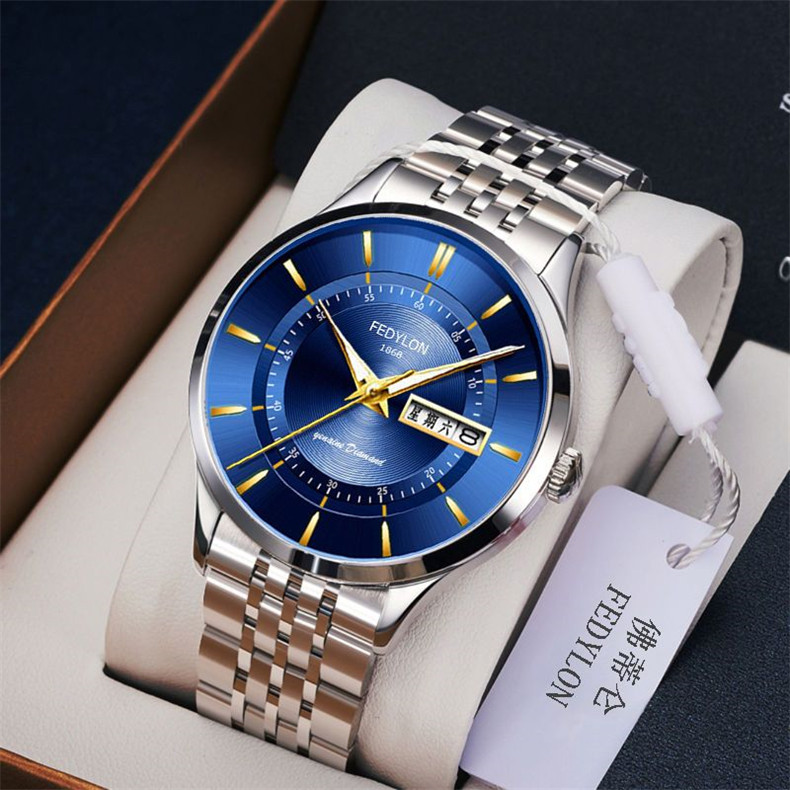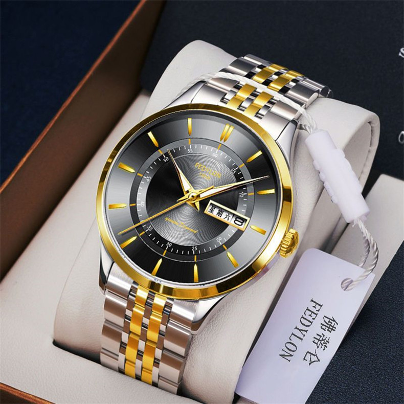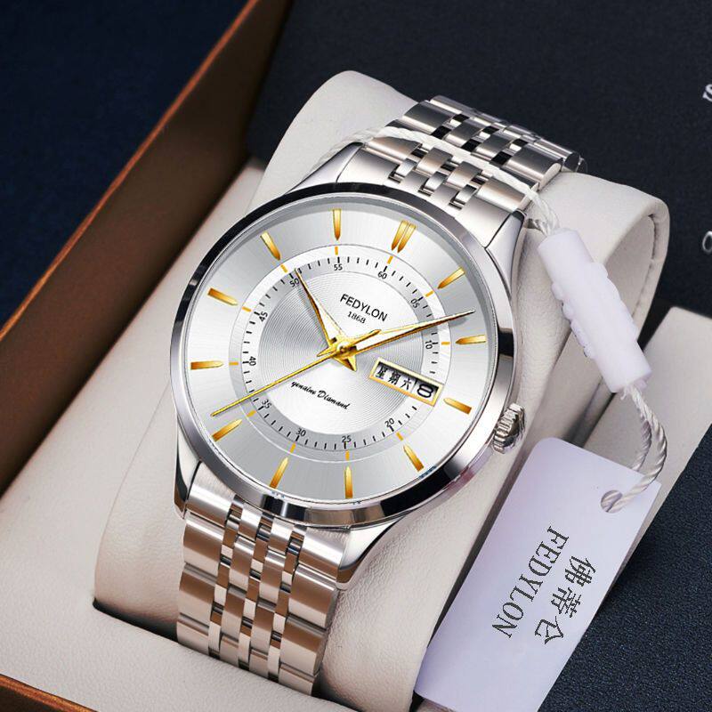Мужские часы, универсальный календарь для отдыха, брендовый водонепроницаемый механический стальной ремешок, кварцевые часы, простой и элегантный дизайн
