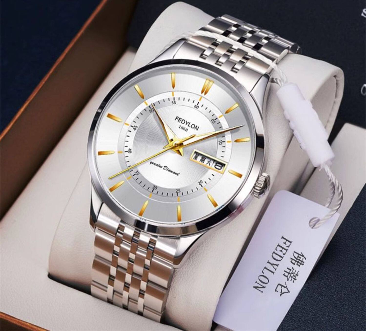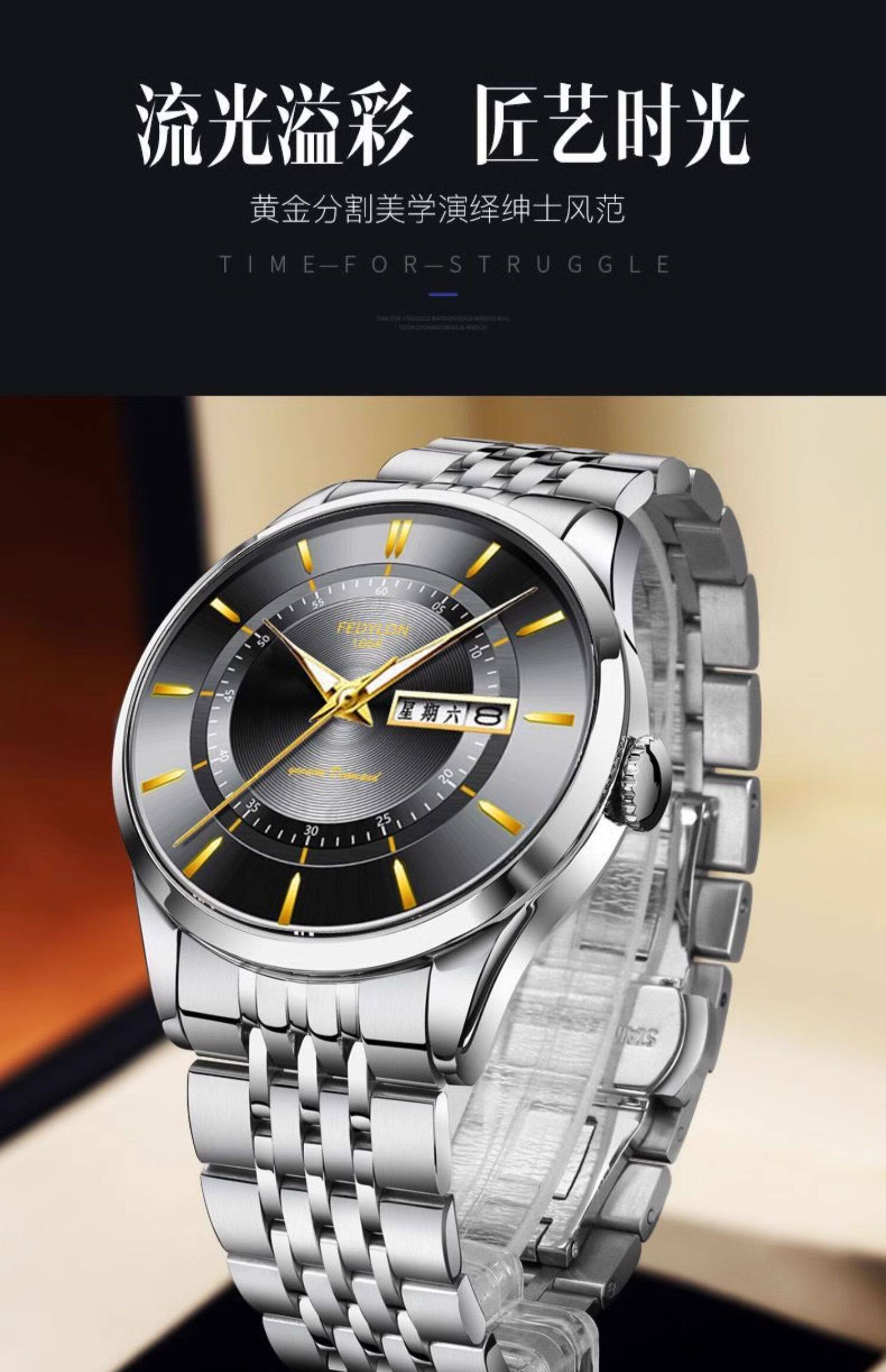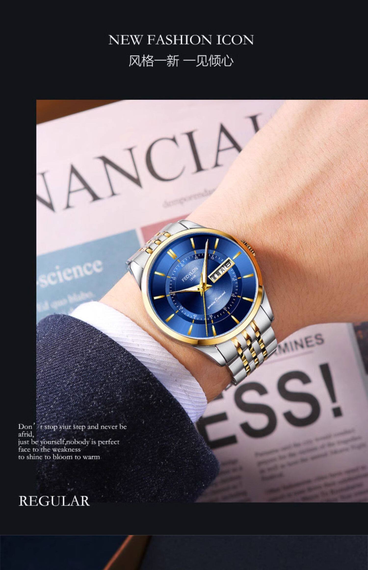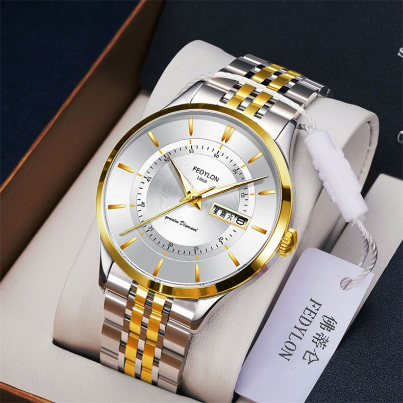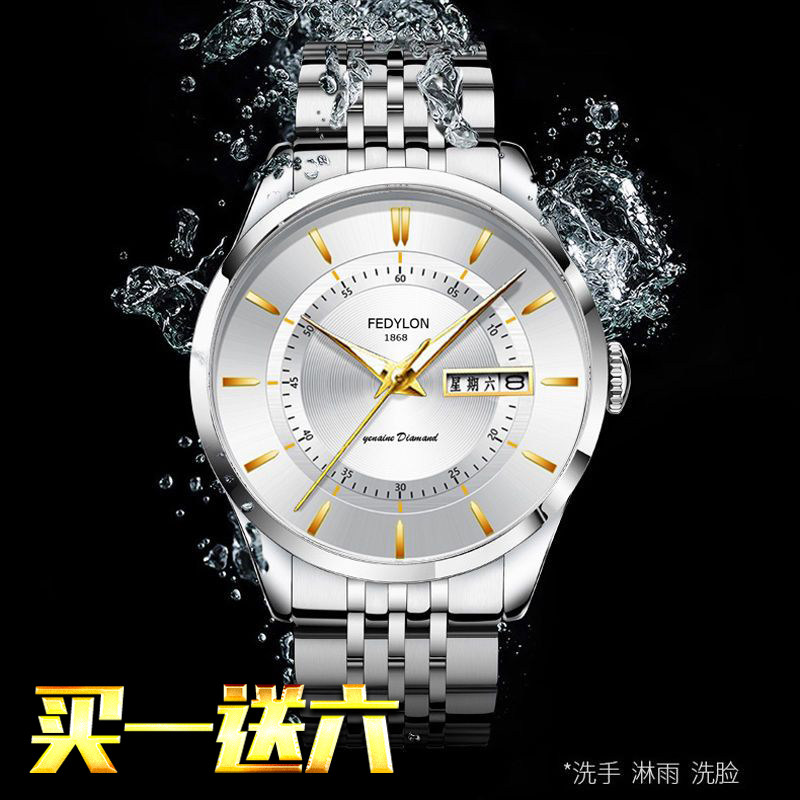 Мужские часы, универсальный календарь для отдыха, брендовый водонепроницаемый механический стальной ремешок, кварцевые часы, простой и элегантный дизайн