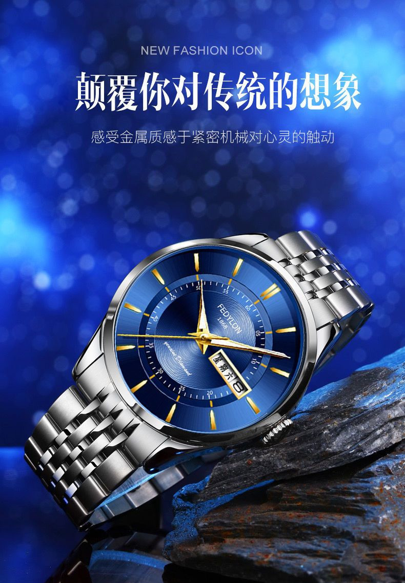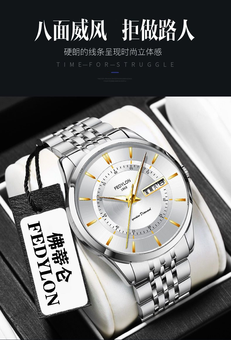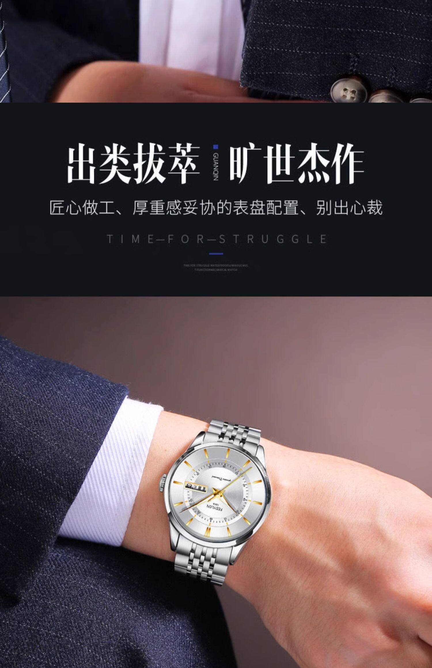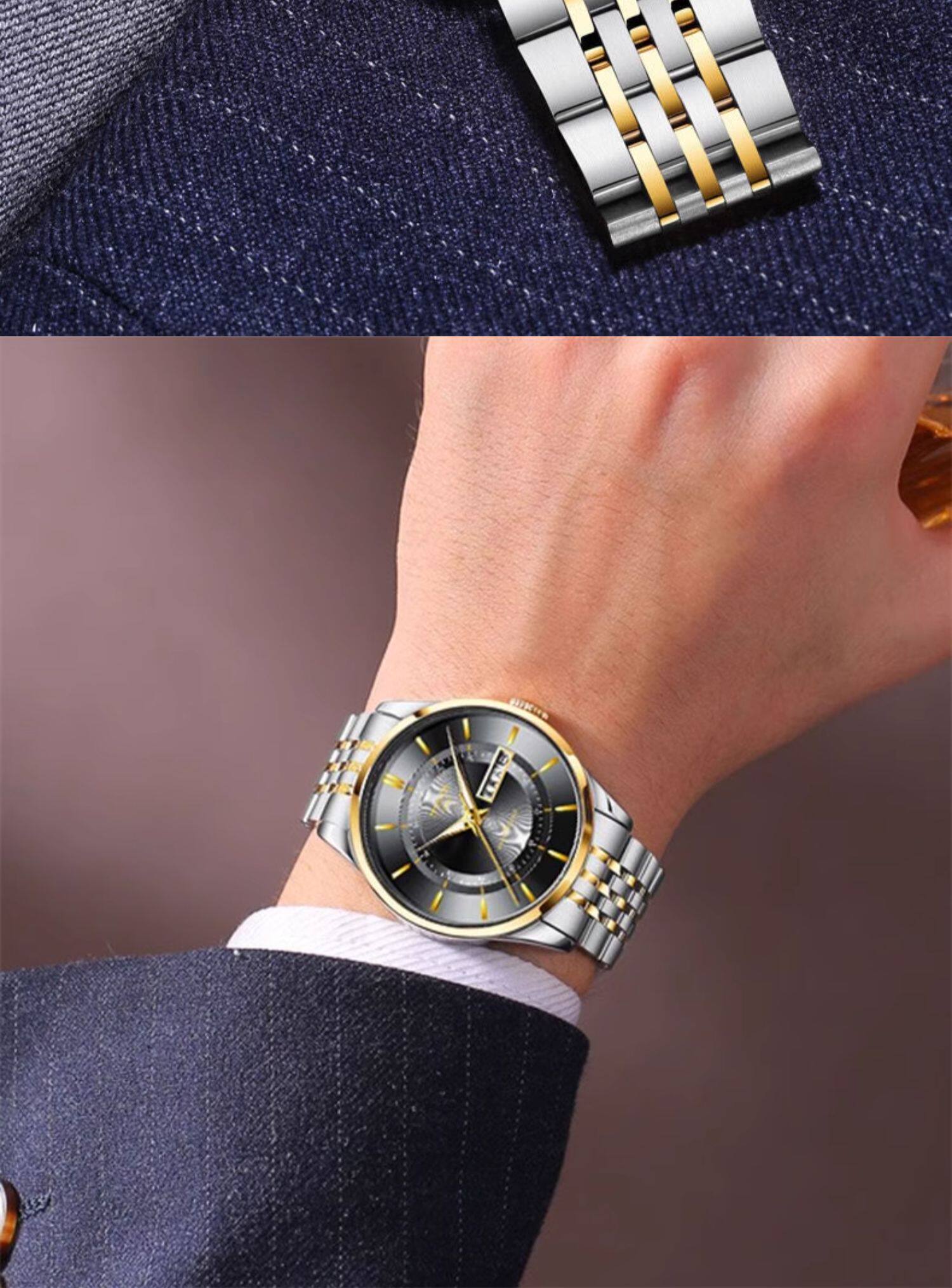 Мужские часы, универсальный календарь для отдыха, брендовый водонепроницаемый механический стальной ремешок, кварцевые часы, простой и элегантный дизайн
