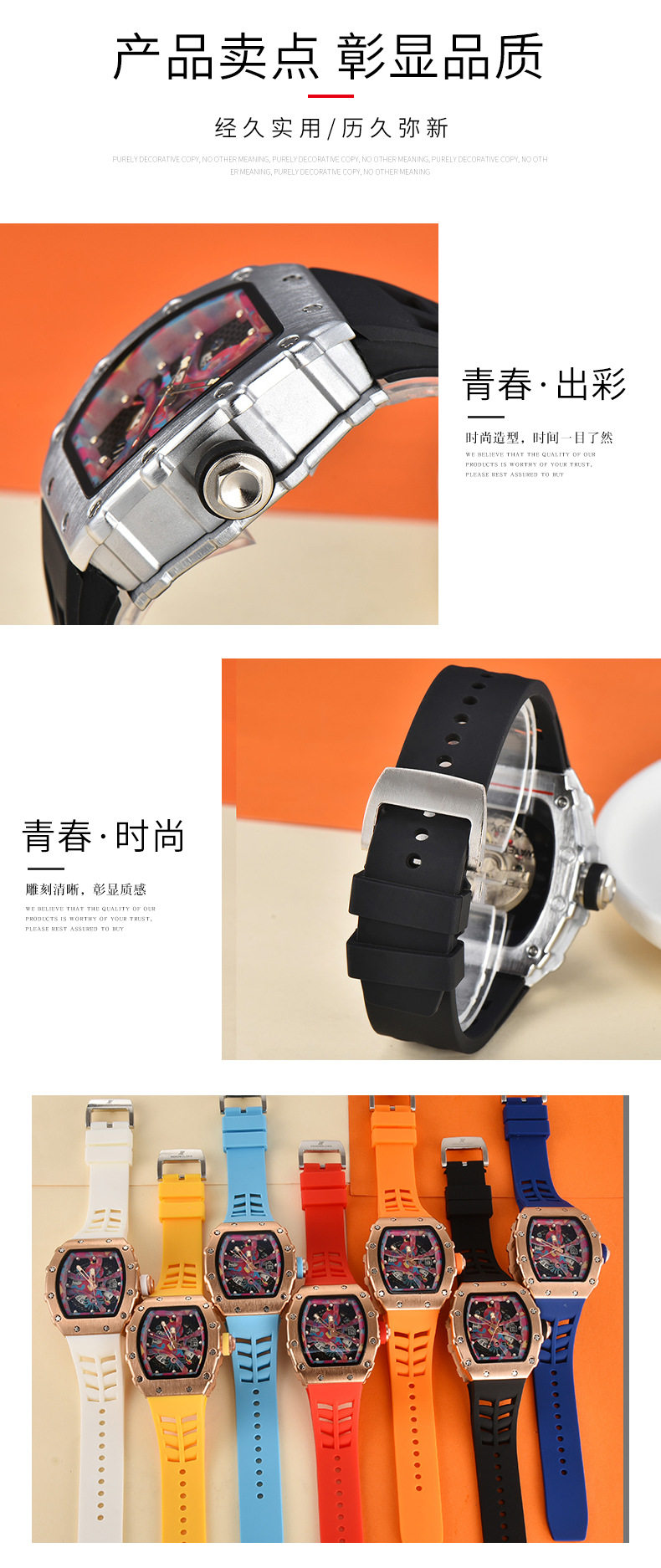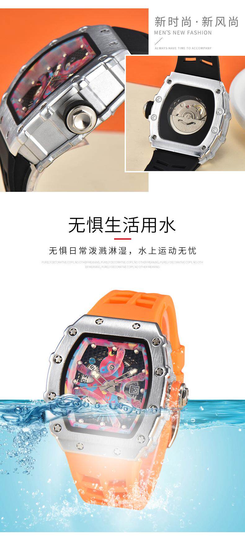 Механические полиуретановые модные швейцарские часы, полностью автоматический, материал