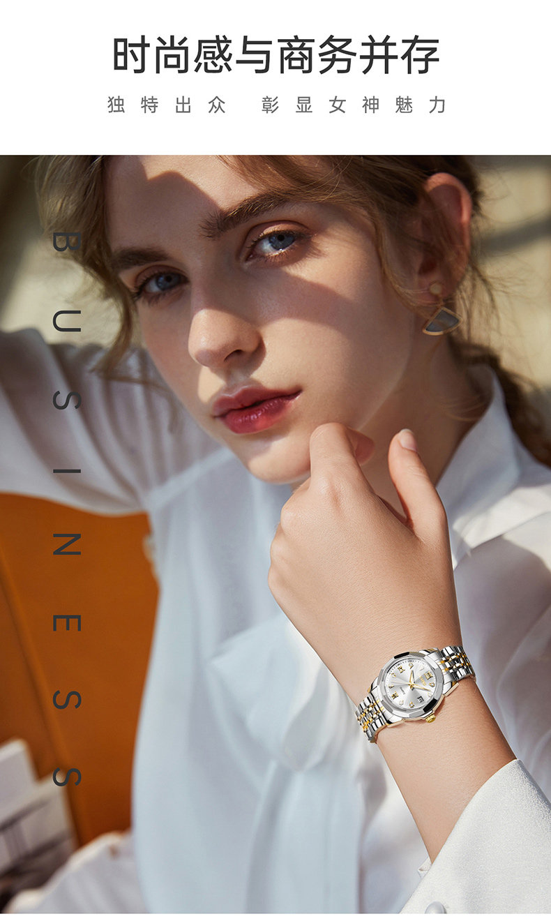 Швейцарские часы, высококачественный стальной ремешок, кварцевый календарь, легкий роскошный стиль, женский стиль