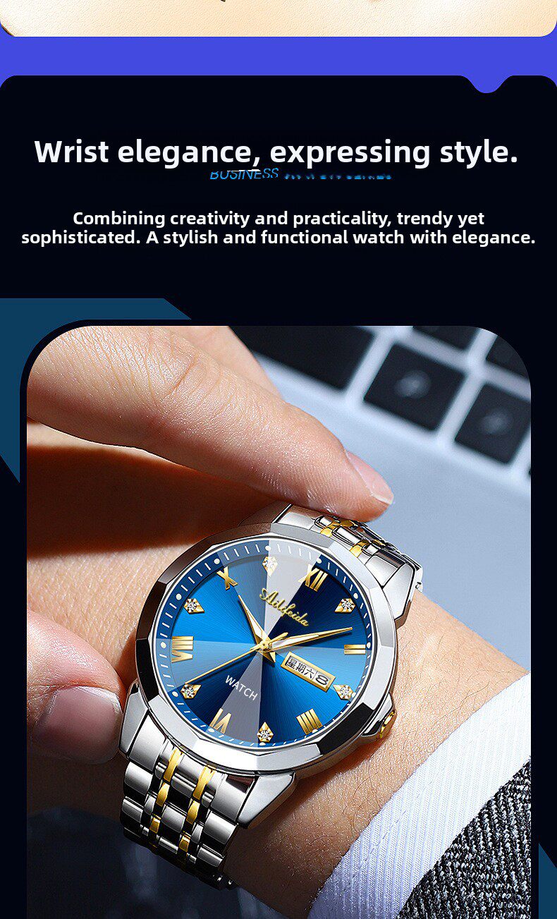 Мужские модные кварцевые часы, водонепроницаемый модный элитный календарь, зеркальный эффект