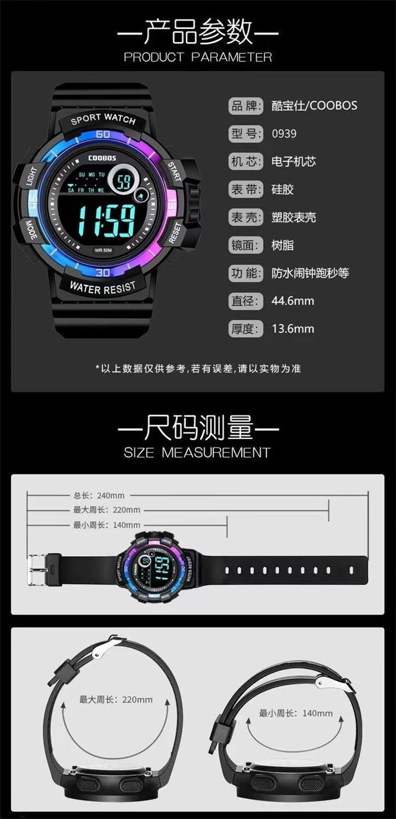Водонепроницаемые мужские часы, универсальные детские цифровые часы, подходит для подростков