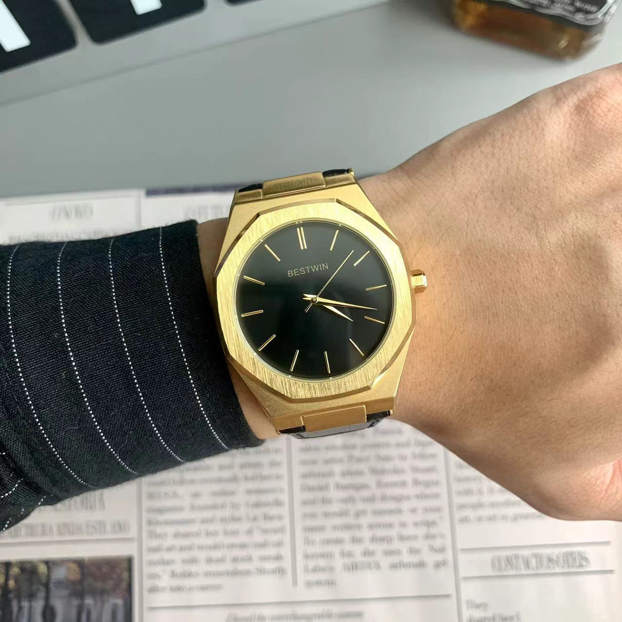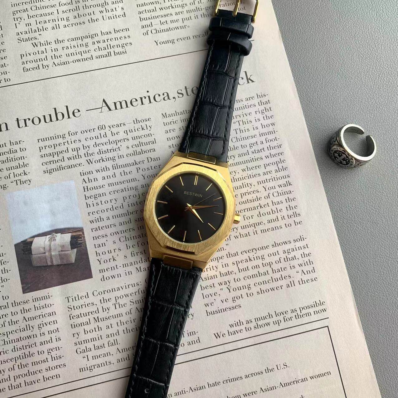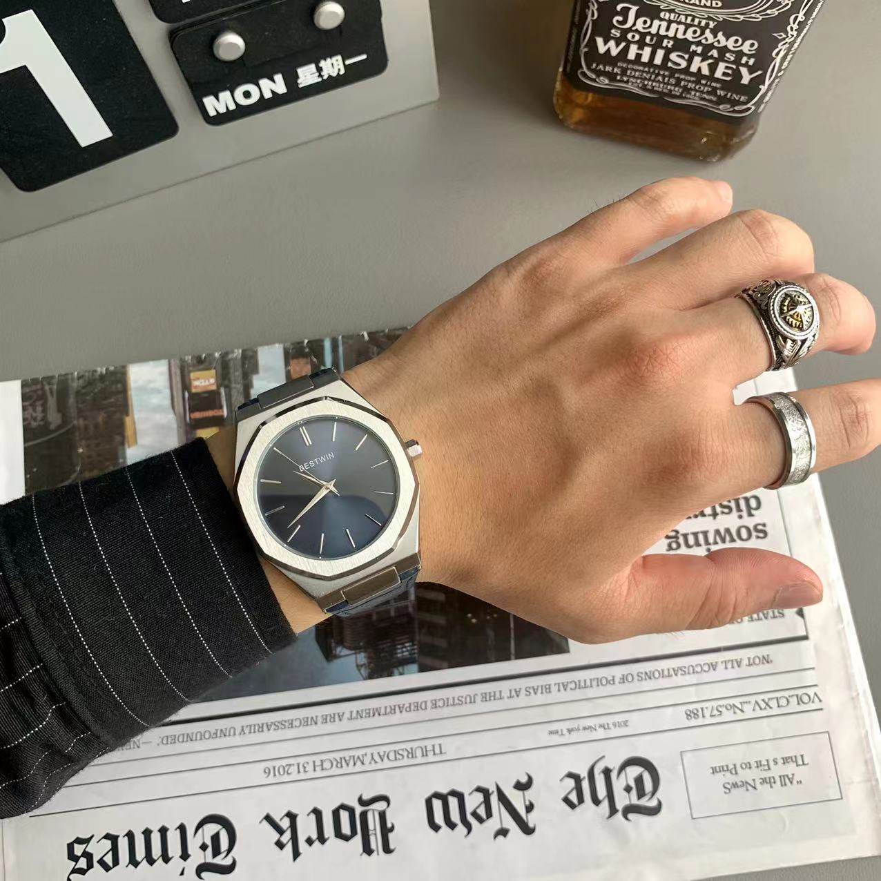 Квадратные мужские часы, трендовый ремень для отдыха, кварцевые золотые часы в стиле хип-хоп