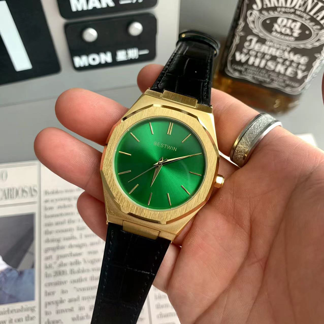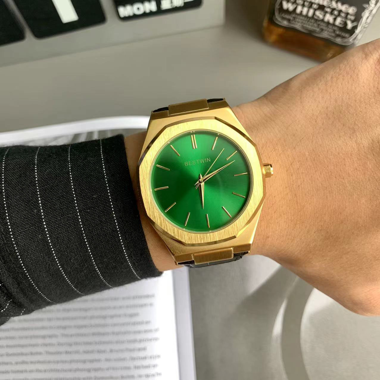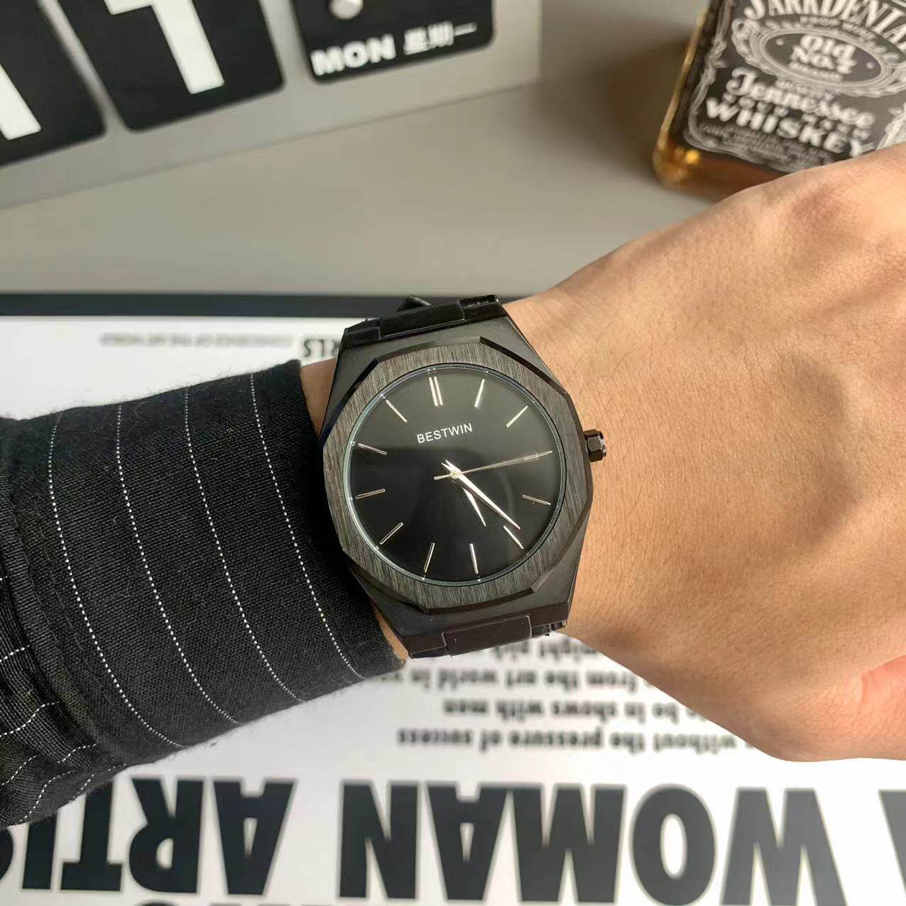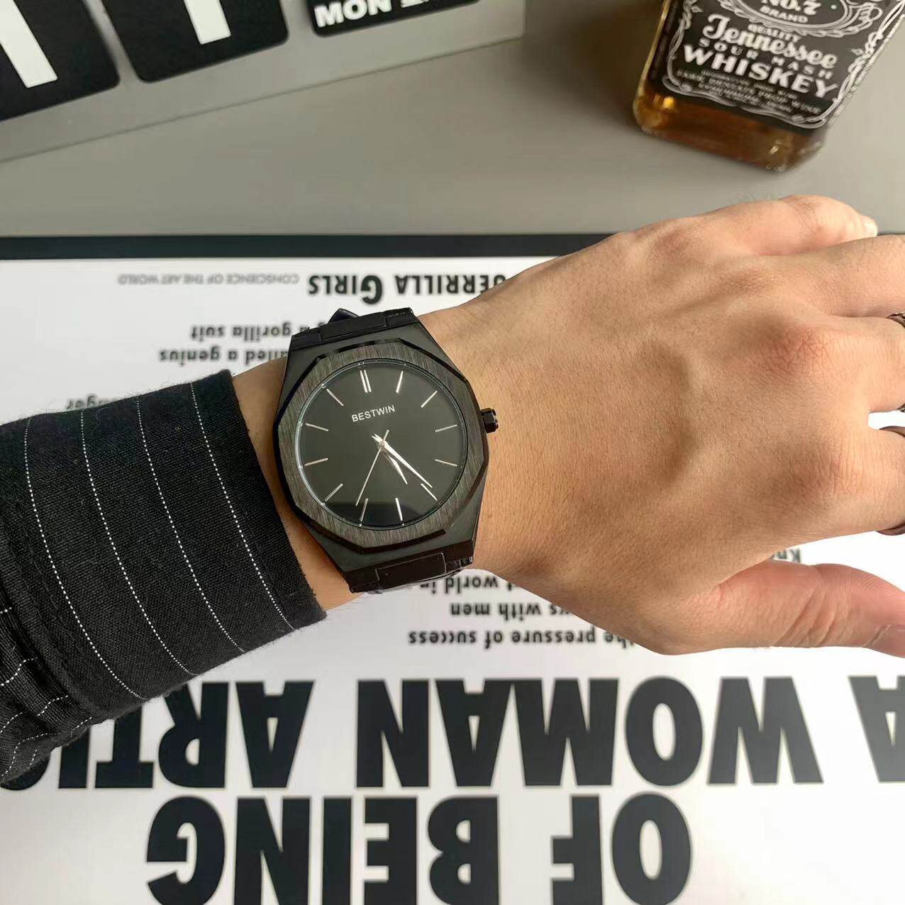 Квадратные мужские часы, трендовый ремень для отдыха, кварцевые золотые часы в стиле хип-хоп