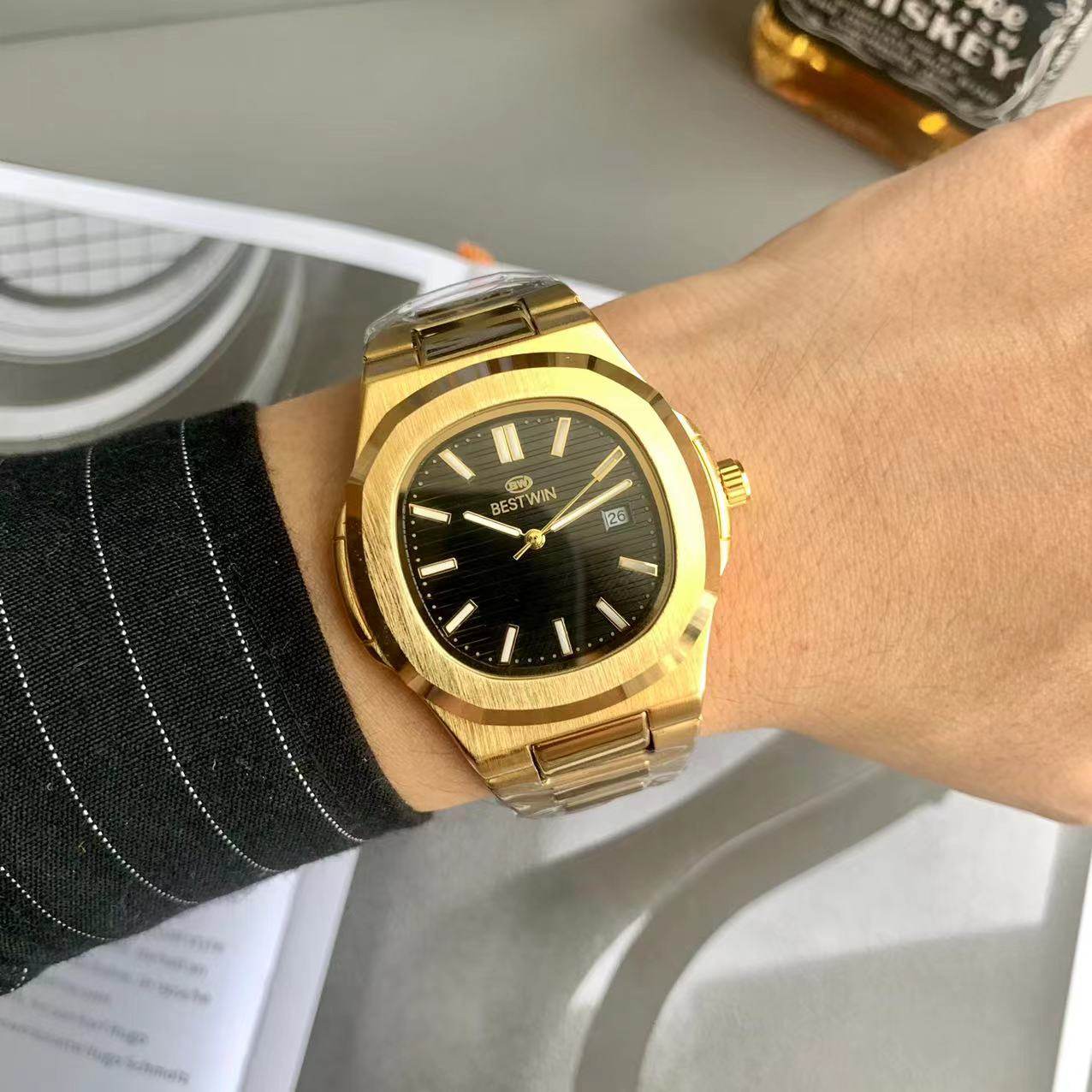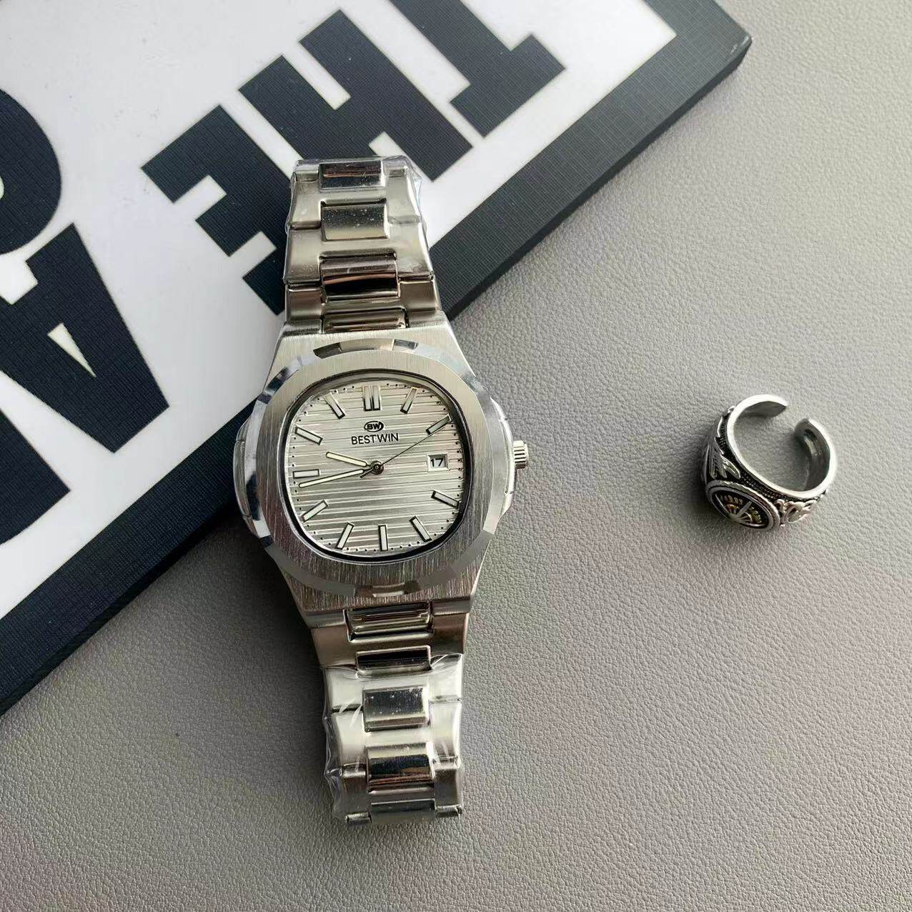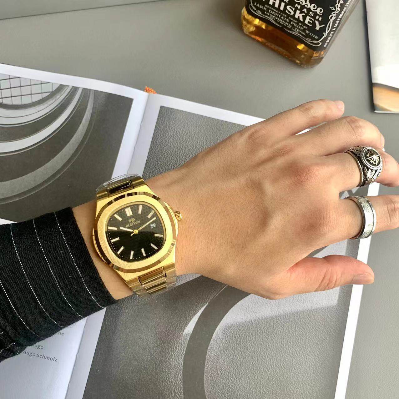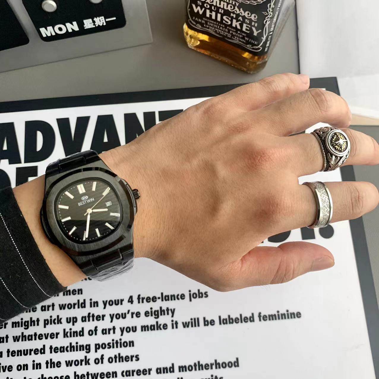 Квадратные швейцарские часы, спортивный модный стальной ремешок, кварцевые часы в стиле хип-хоп