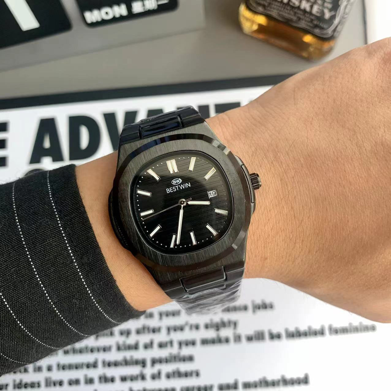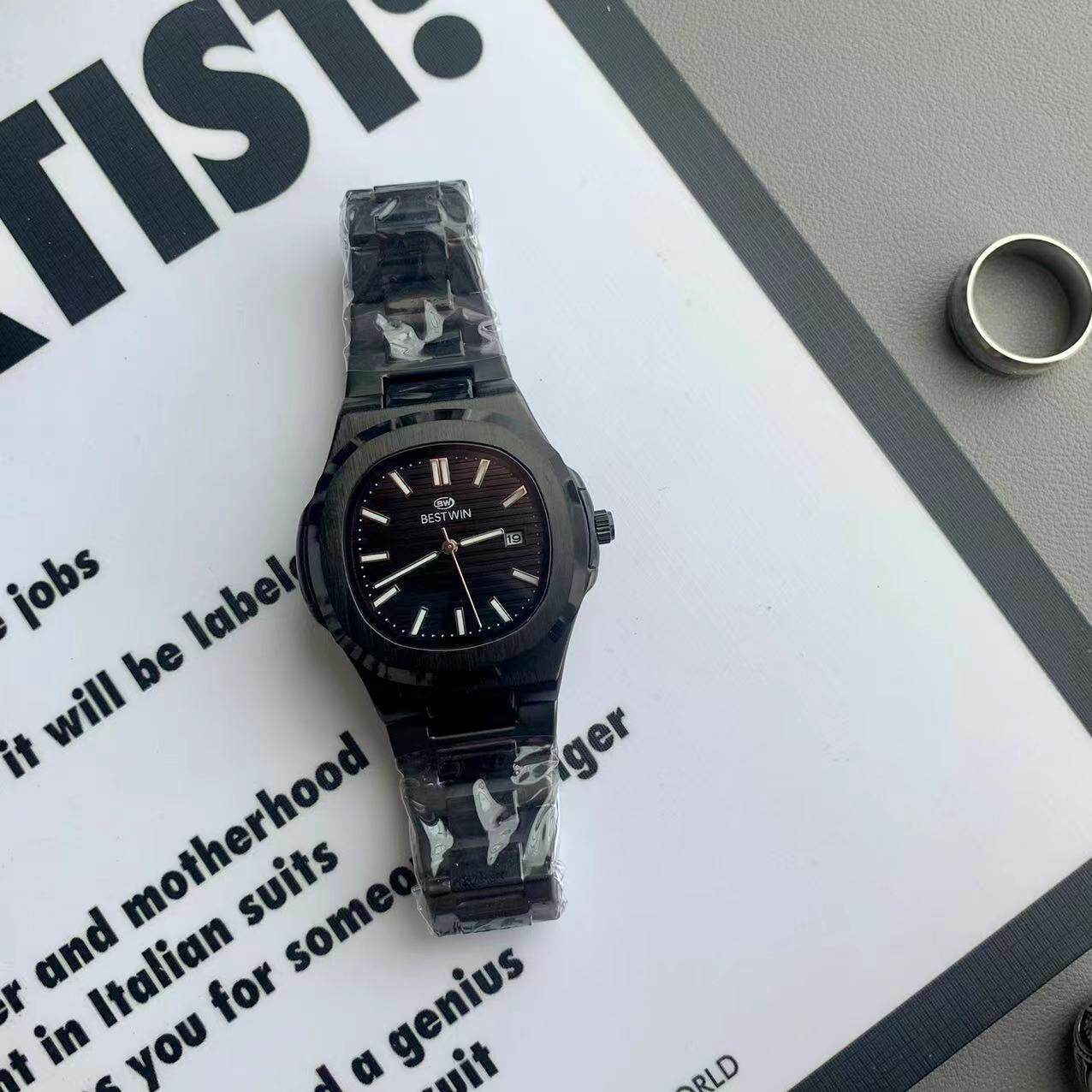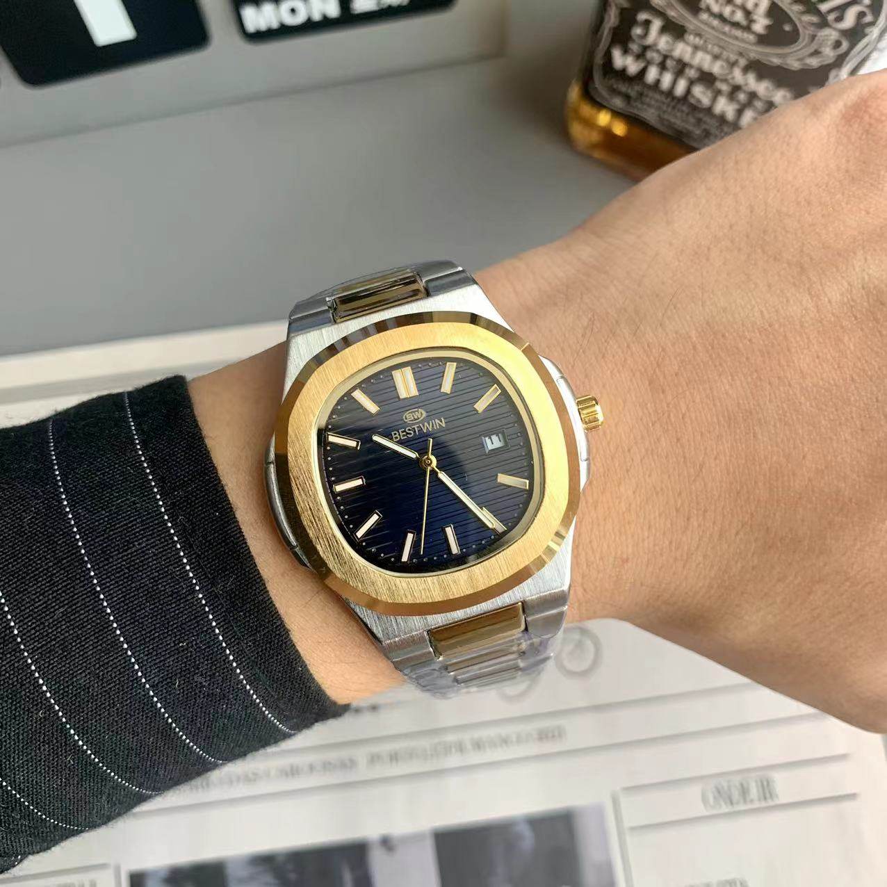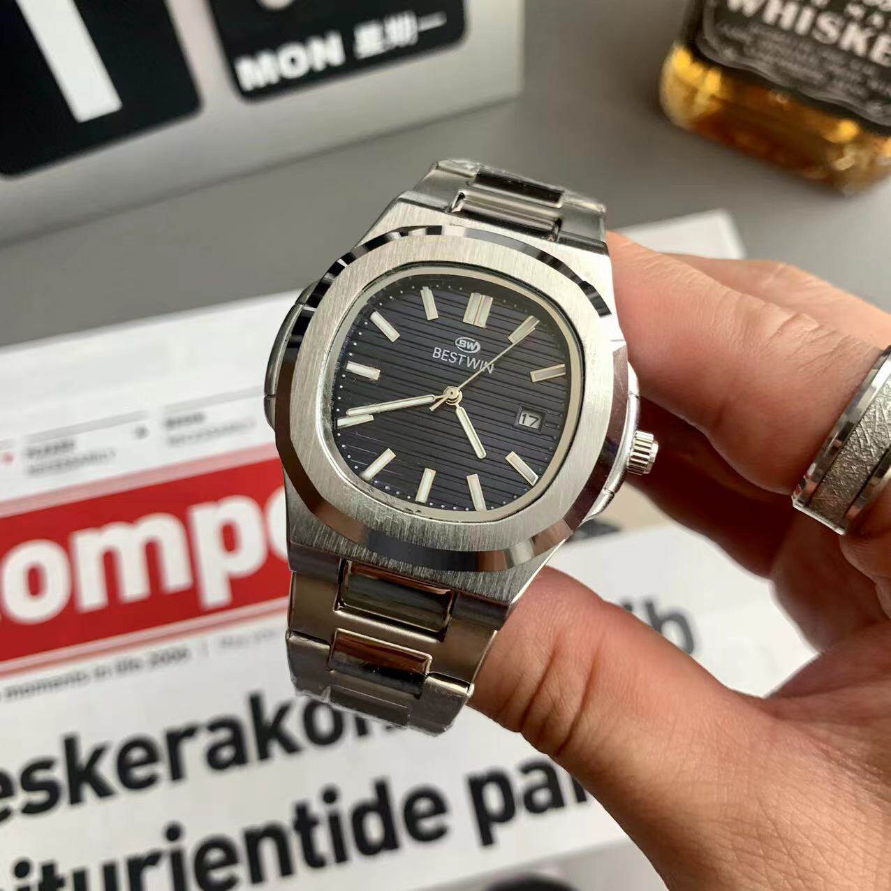Квадратные швейцарские часы, спортивный модный стальной ремешок, кварцевые часы в стиле хип-хоп