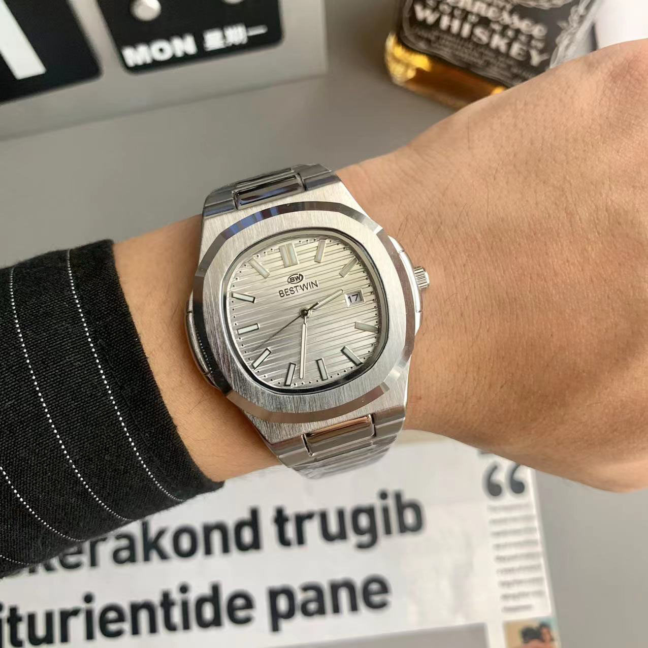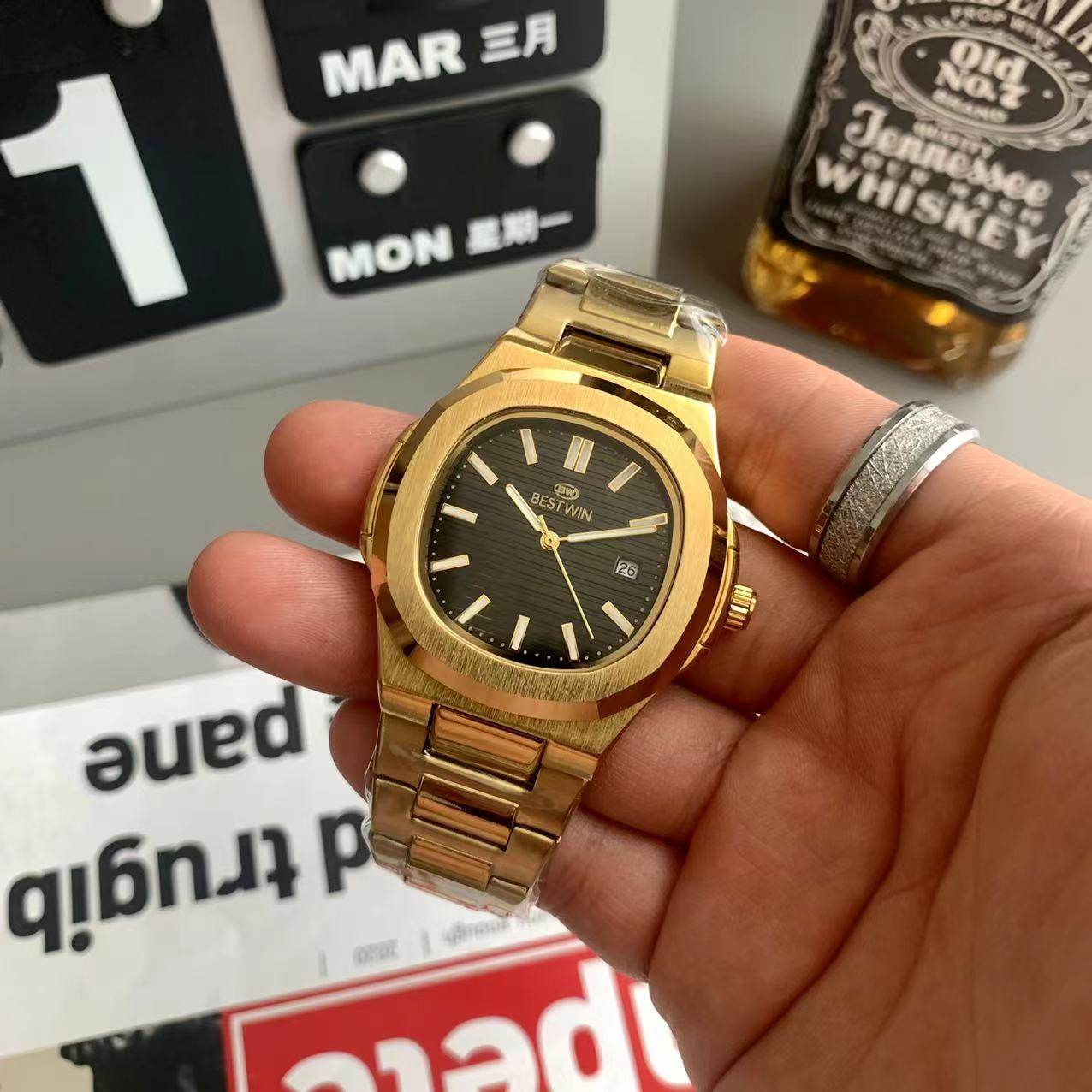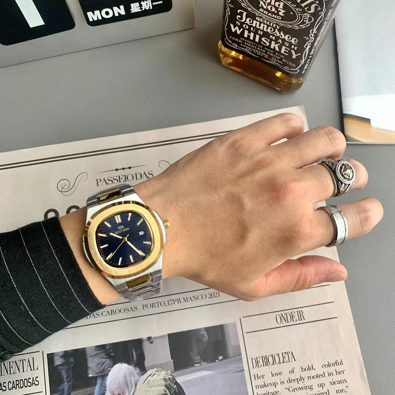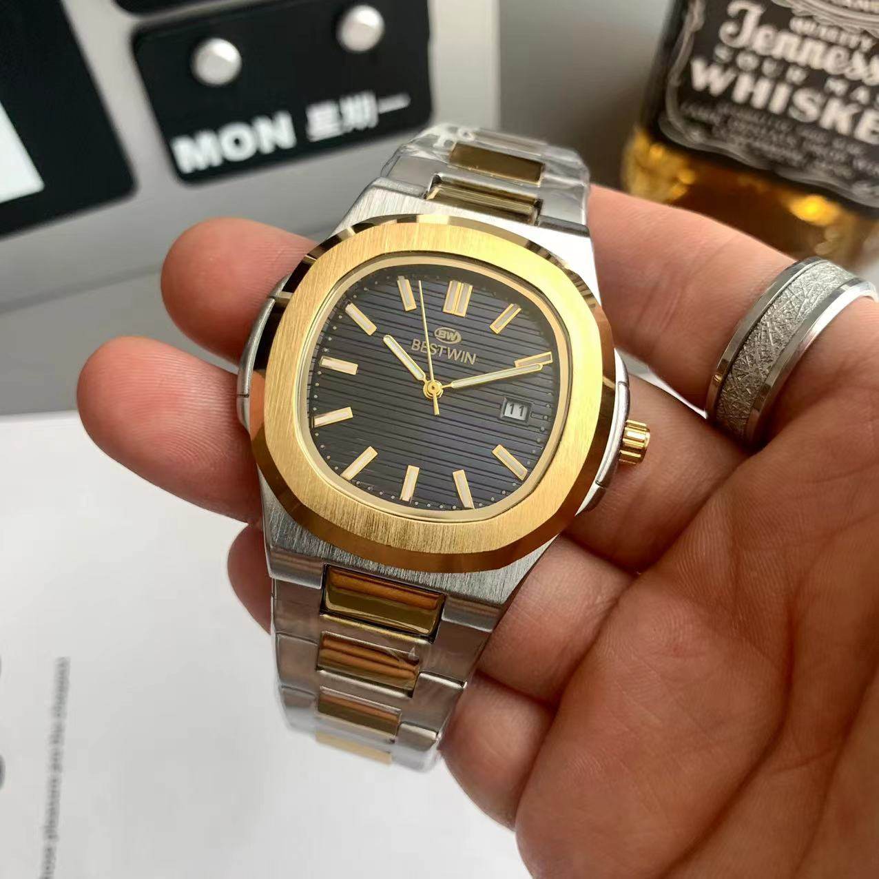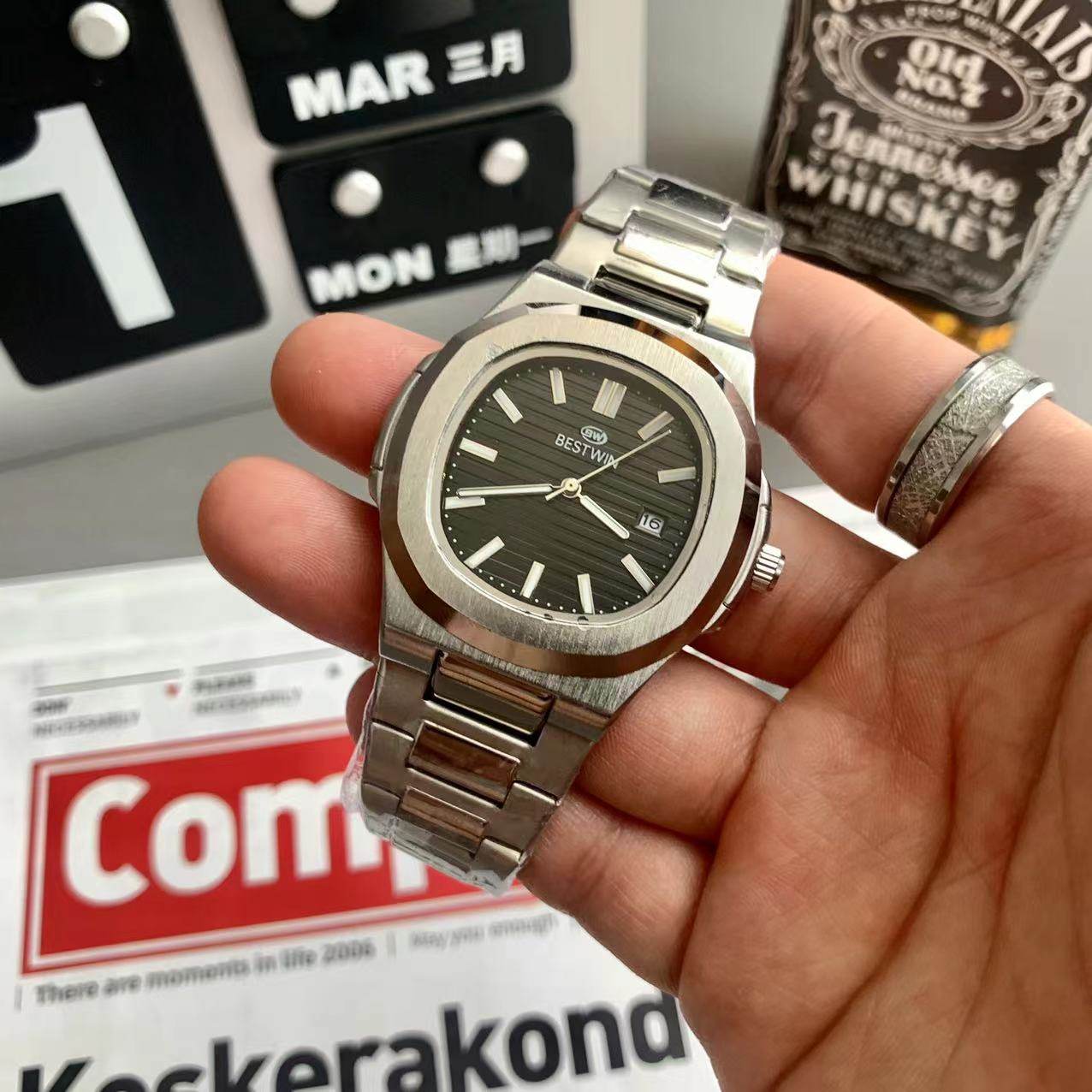 Квадратные швейцарские часы, спортивный модный стальной ремешок, кварцевые часы в стиле хип-хоп