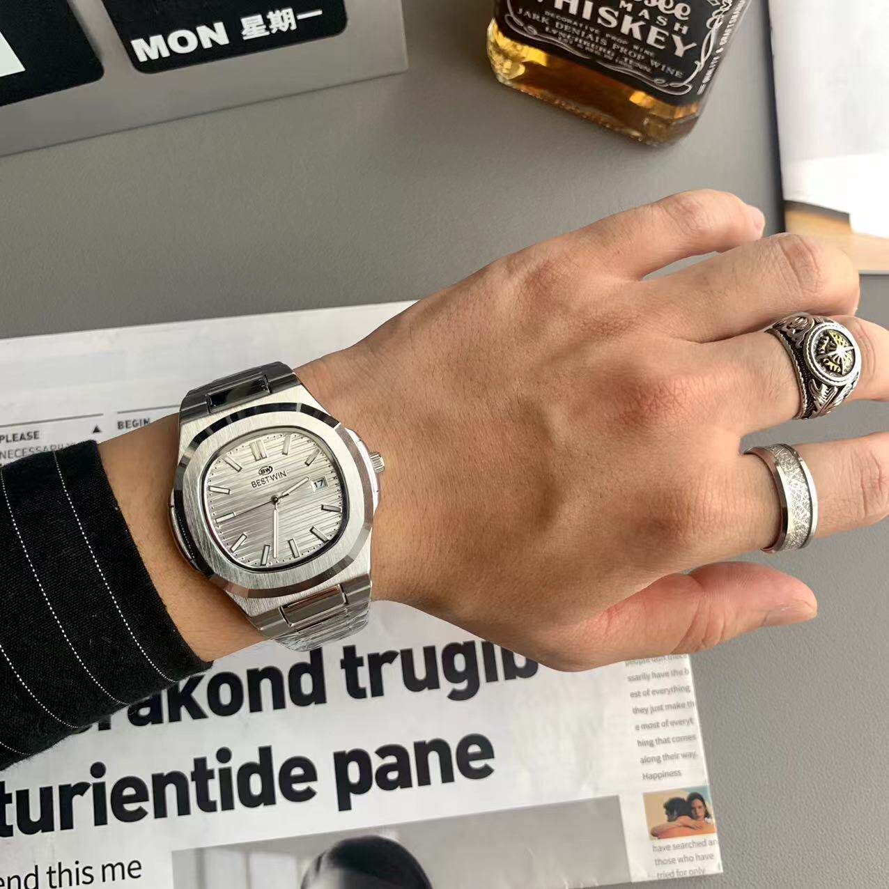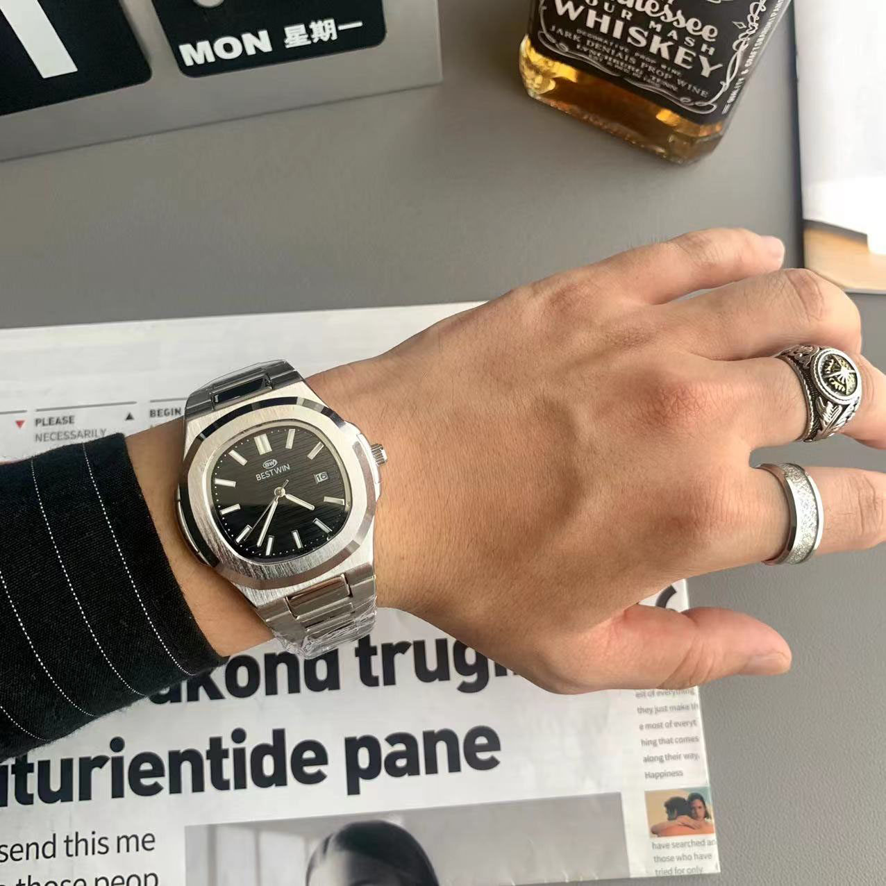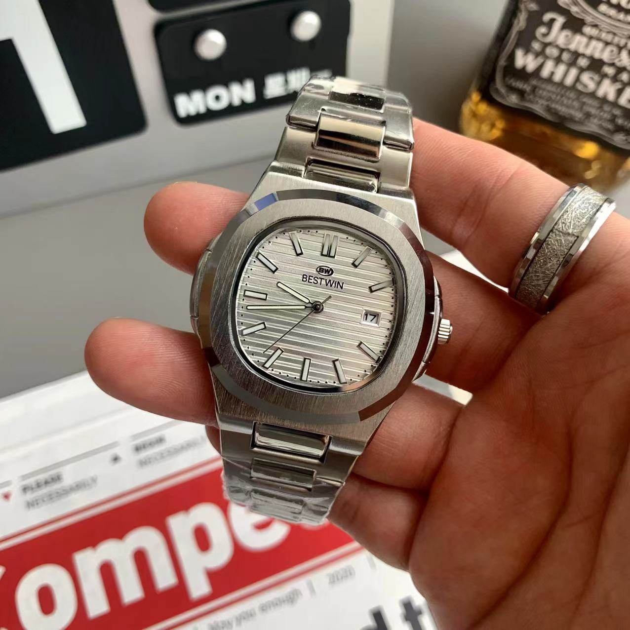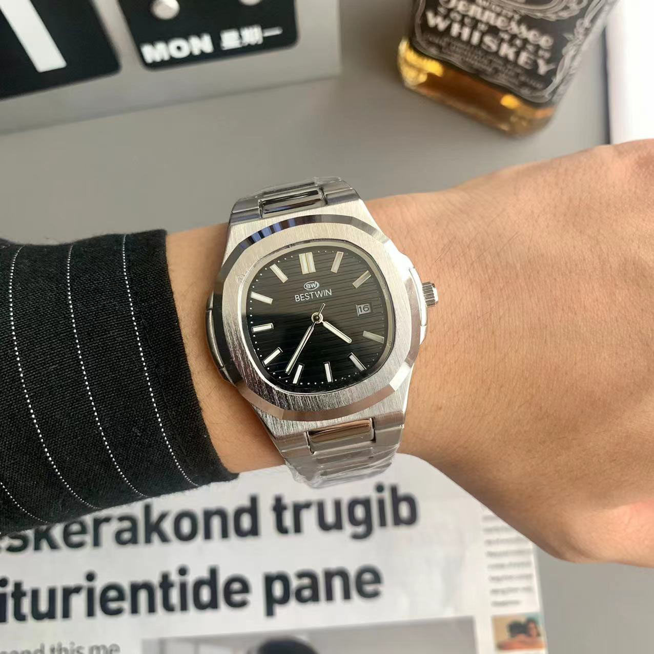 Квадратные швейцарские часы, спортивный модный стальной ремешок, кварцевые часы в стиле хип-хоп