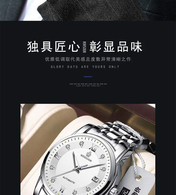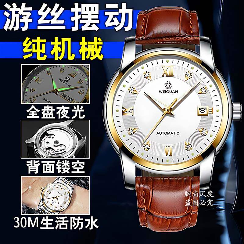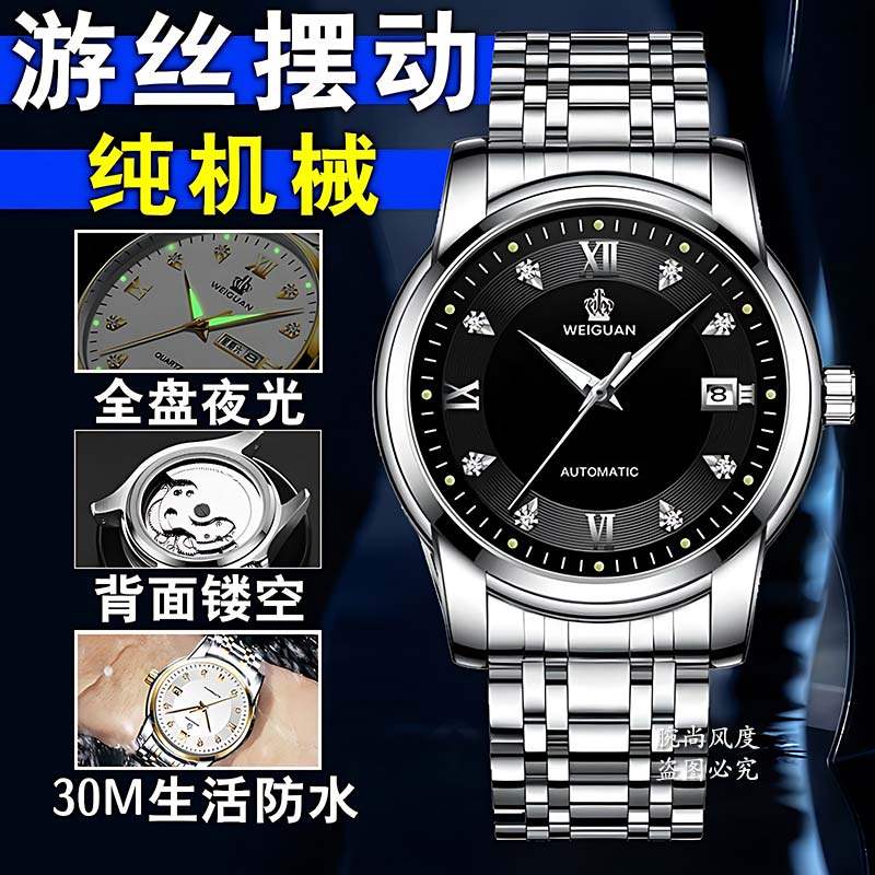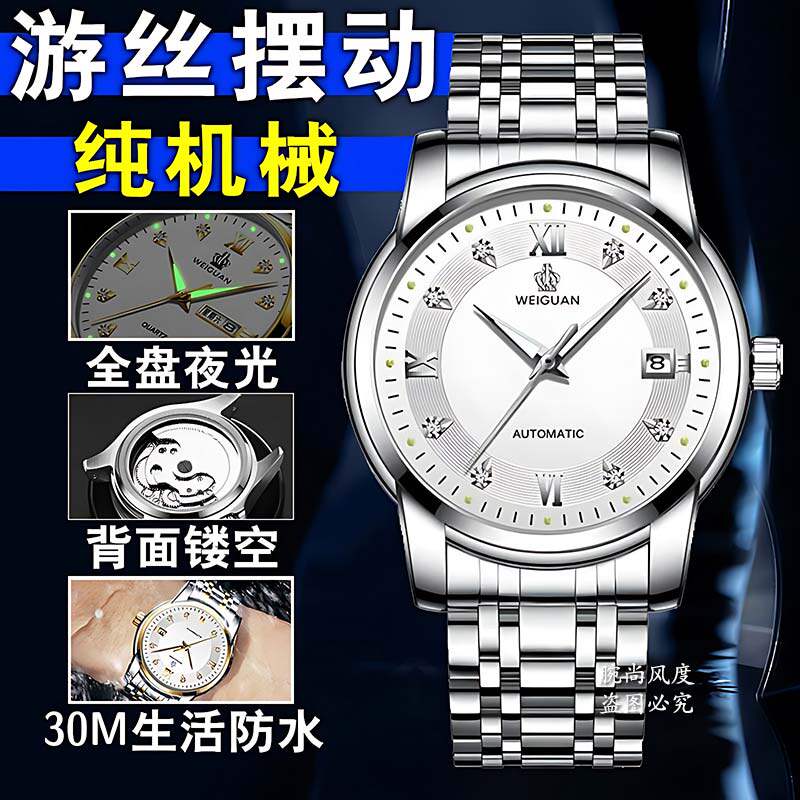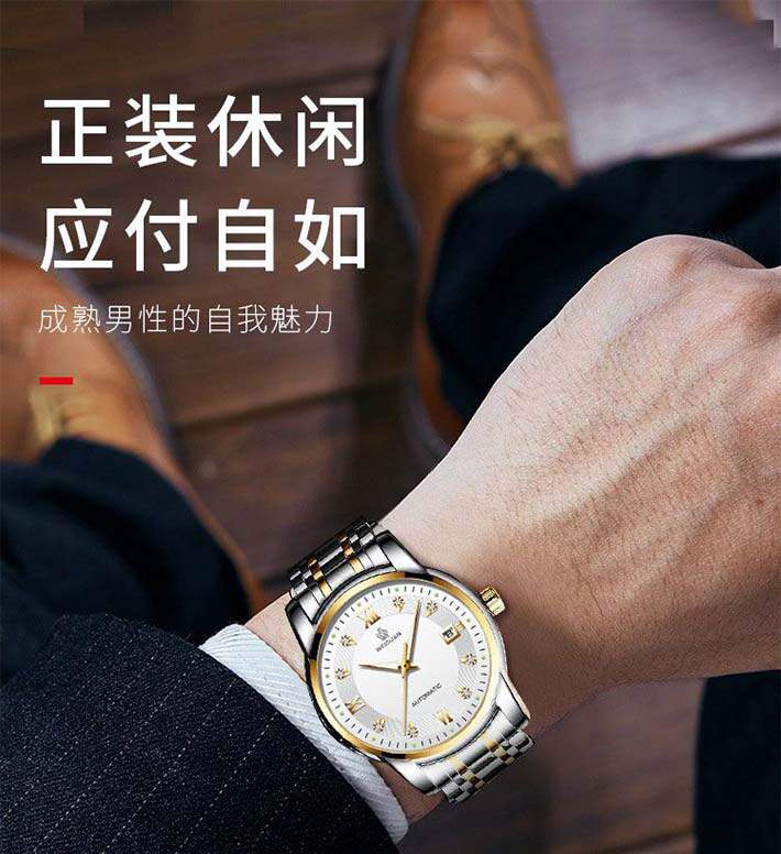 Механические мужские часы, водонепроницаемый календарь, стальной ремешок, полностью автоматический