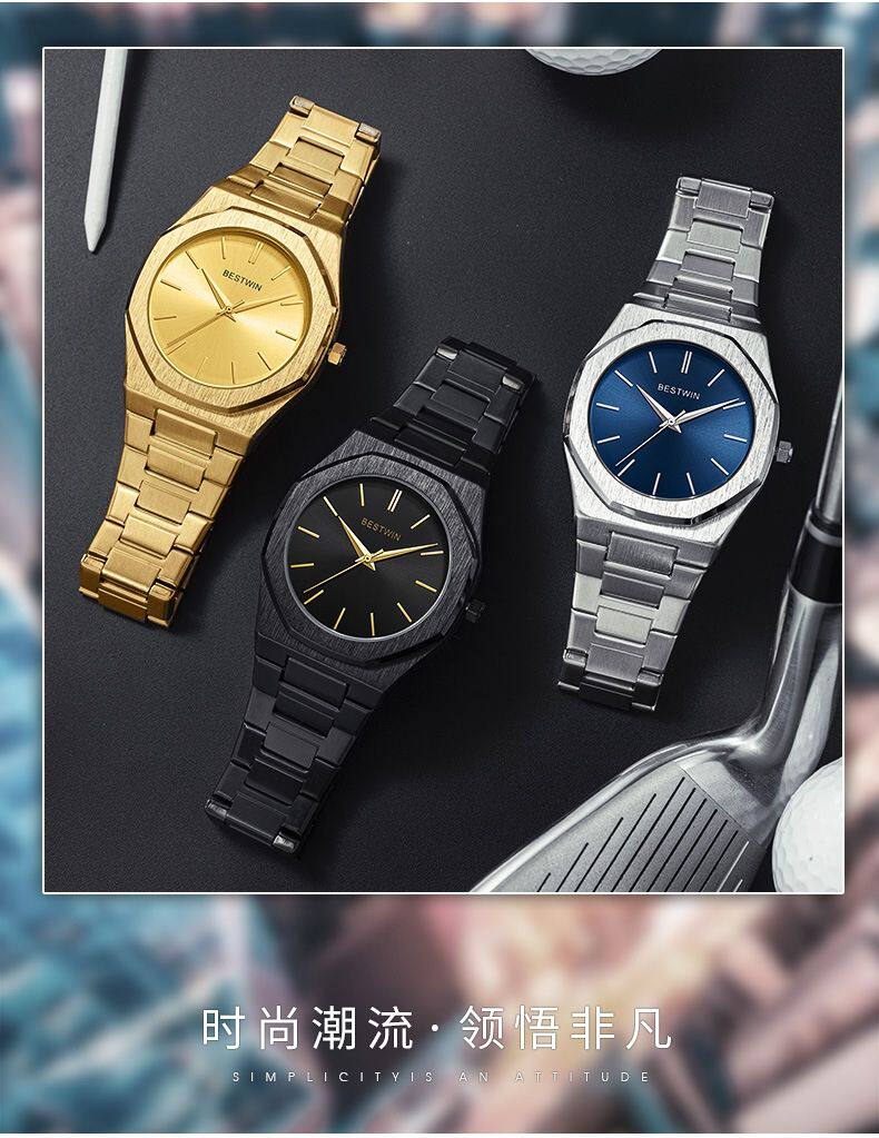 Водонепроницаемые кварцевые швейцарские часы, стальной ремешок для отдыха, мужские часы, Швейцария, полностью автоматический, простой и элегантный дизайн, популярно в интернете
