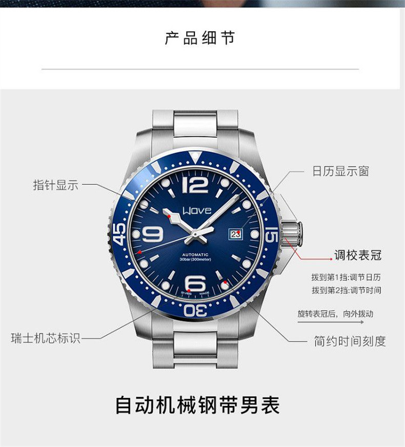 Tide, трендовые мужские часы, водонепроницаемые механические кварцевые часы, стальной ремешок в стиле хип-хоп, календарь, полностью автоматический
