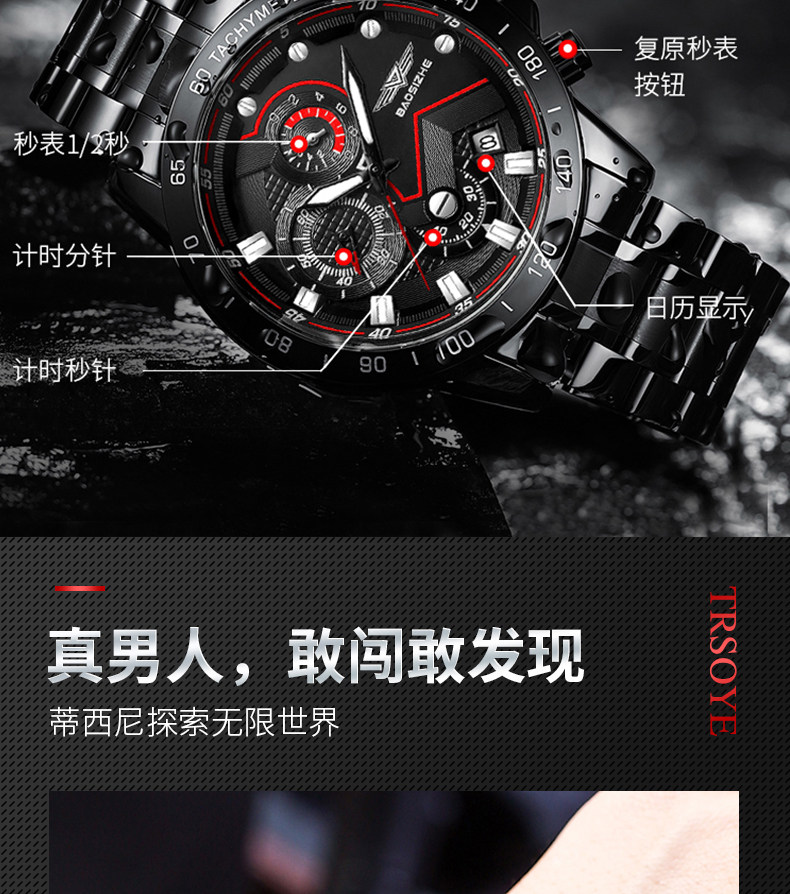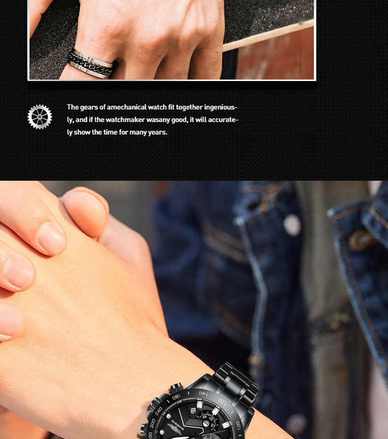 Мужские механические водонепроницаемые универсальные кварцевые мужские часы, Швейцария, полностью автоматический