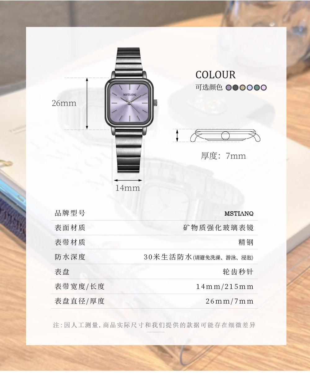 Квадратные кварцевые часы, изысканный циферблат, маленький циферблат