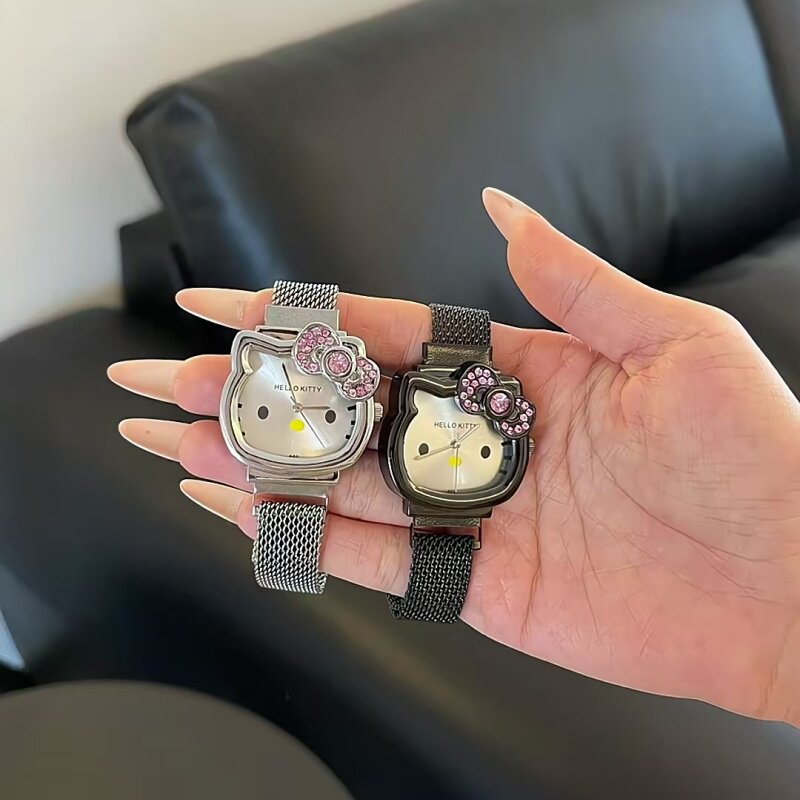 Hello Kitty, бриллиантовые кварцевые мультяшные металлические детские часы