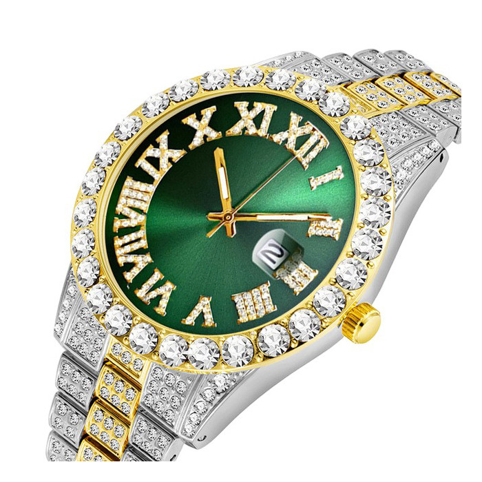 Мужские часы с бриллиантами Часы в стиле хип-хоп с календарем Часы в стиле хип-хоп с бриллиантами