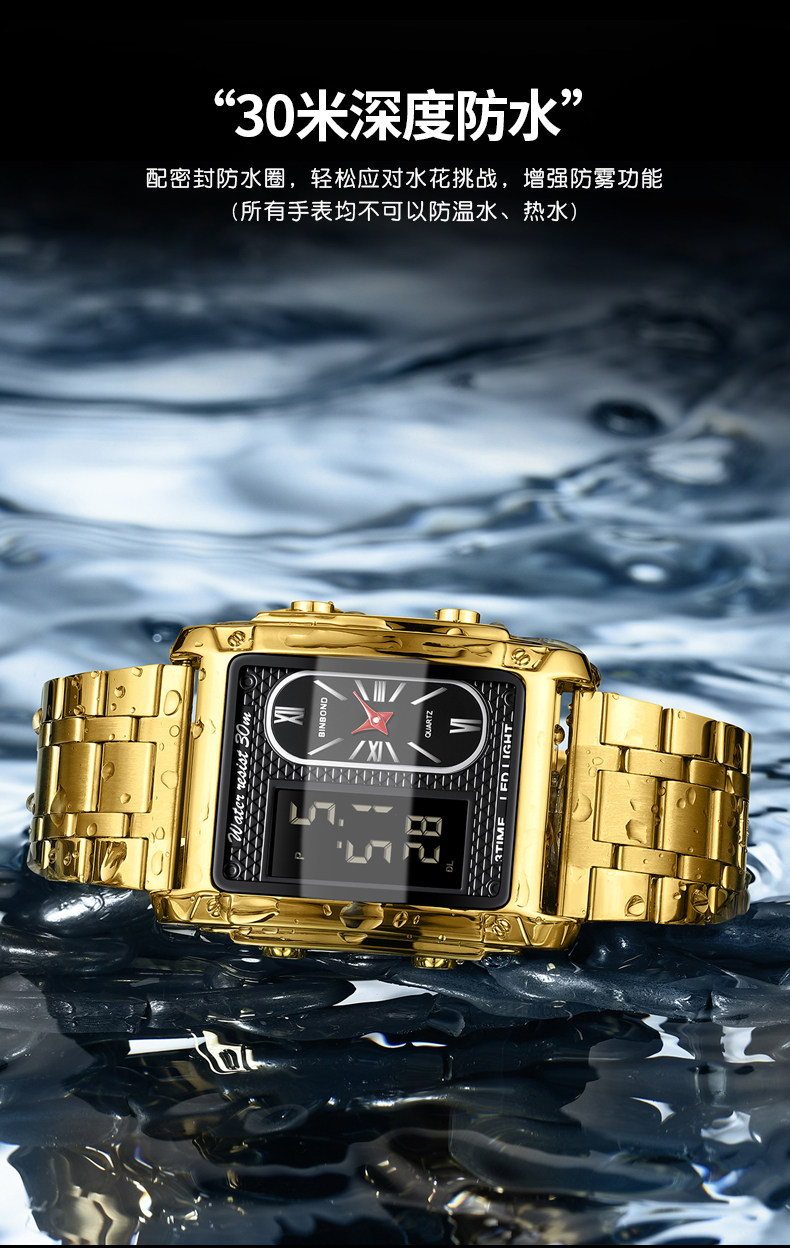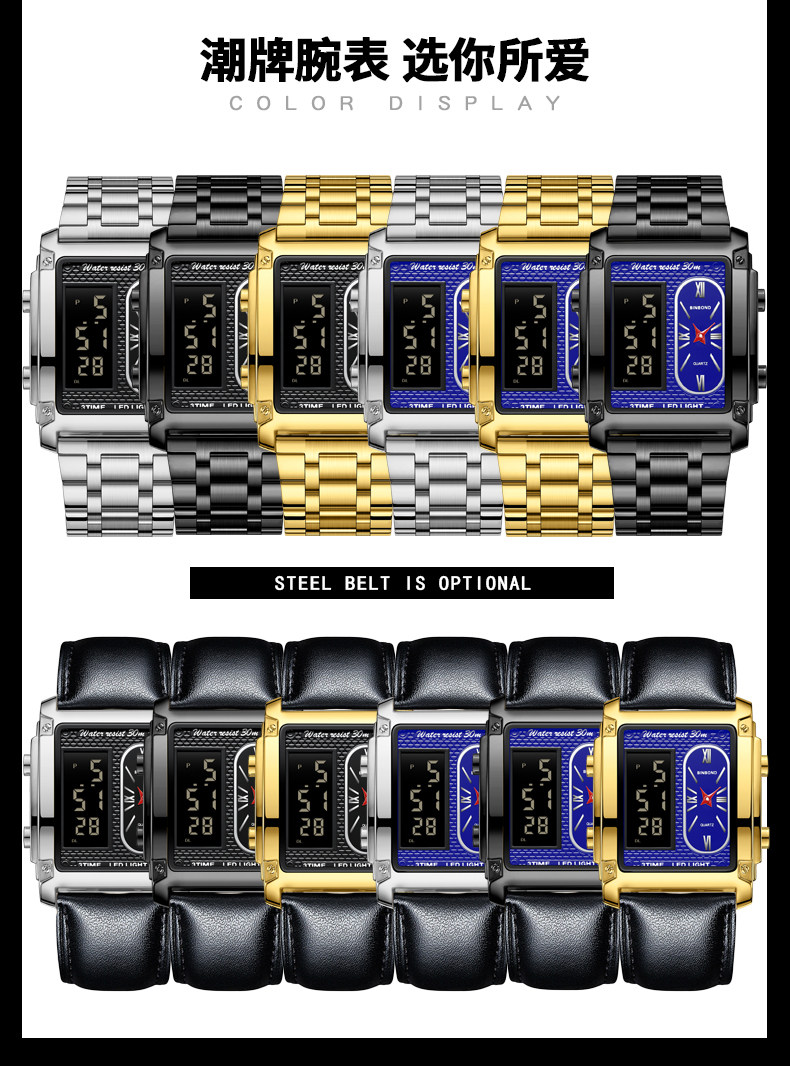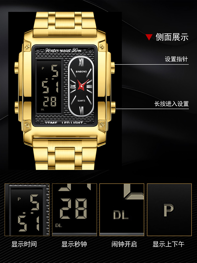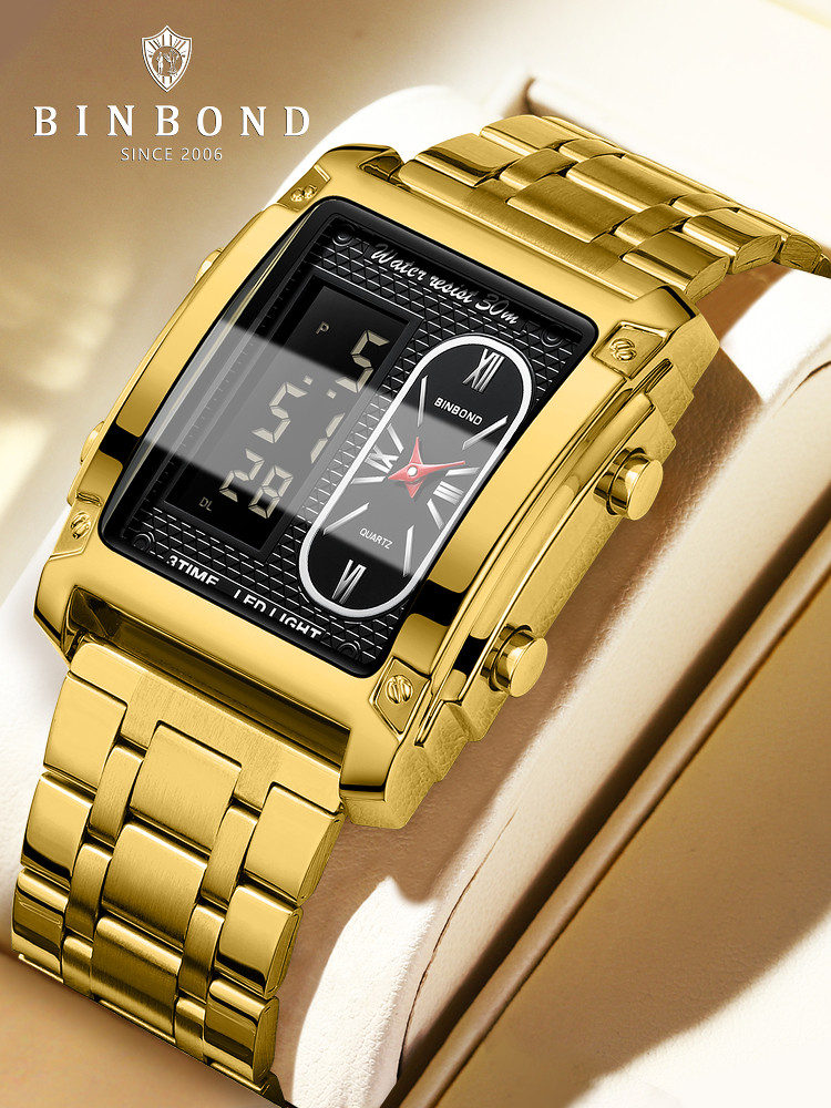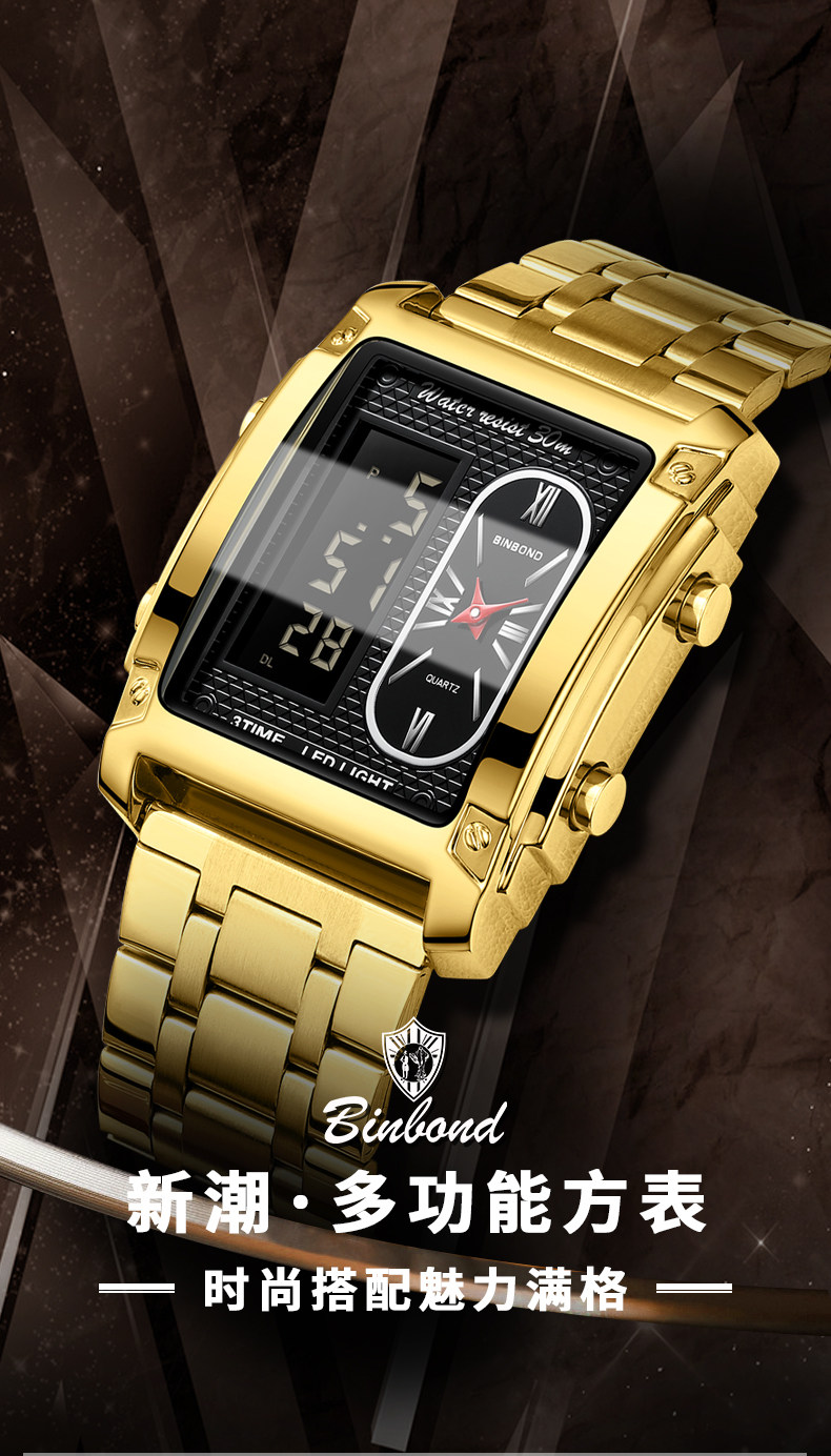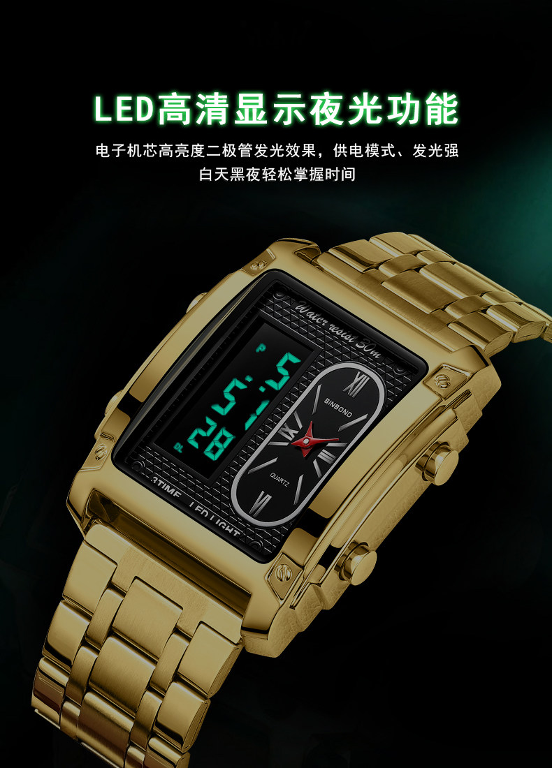 BINBOND/宾邦 Квадратные универсальные водонепроницаемые цифровые часы, электронный ремень