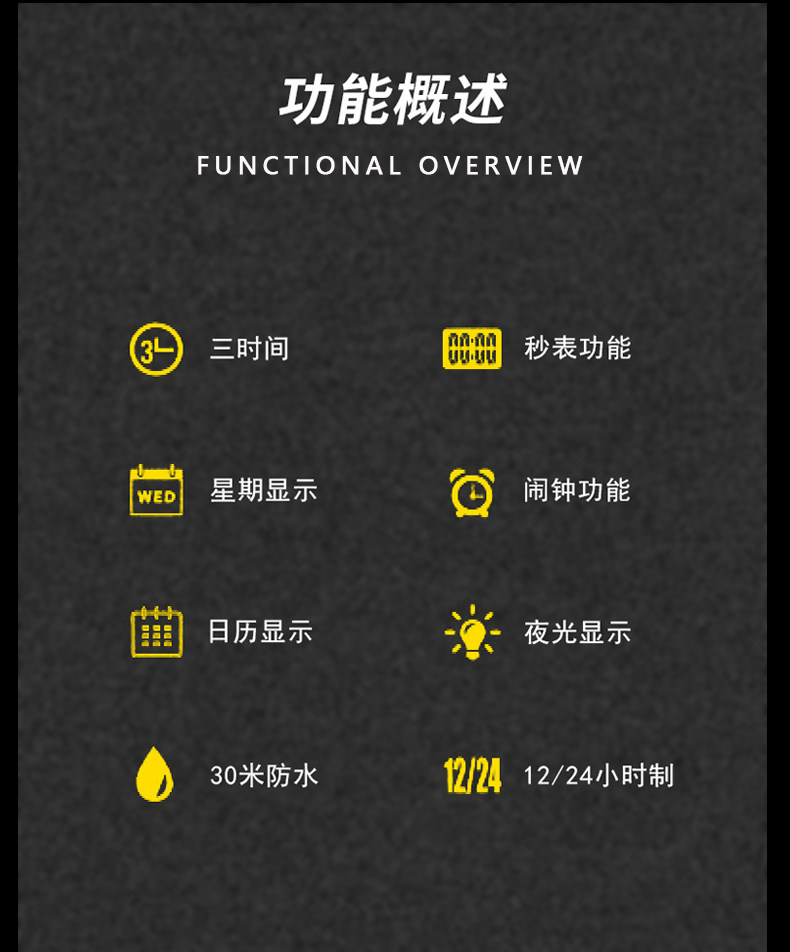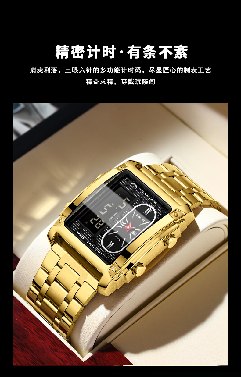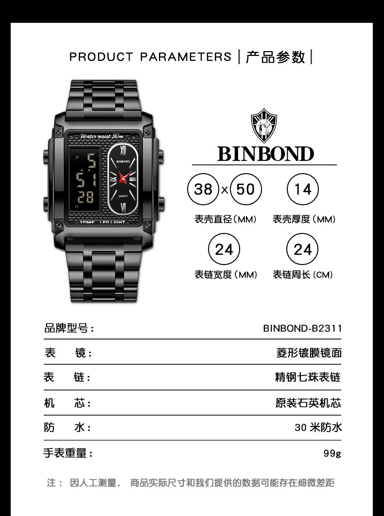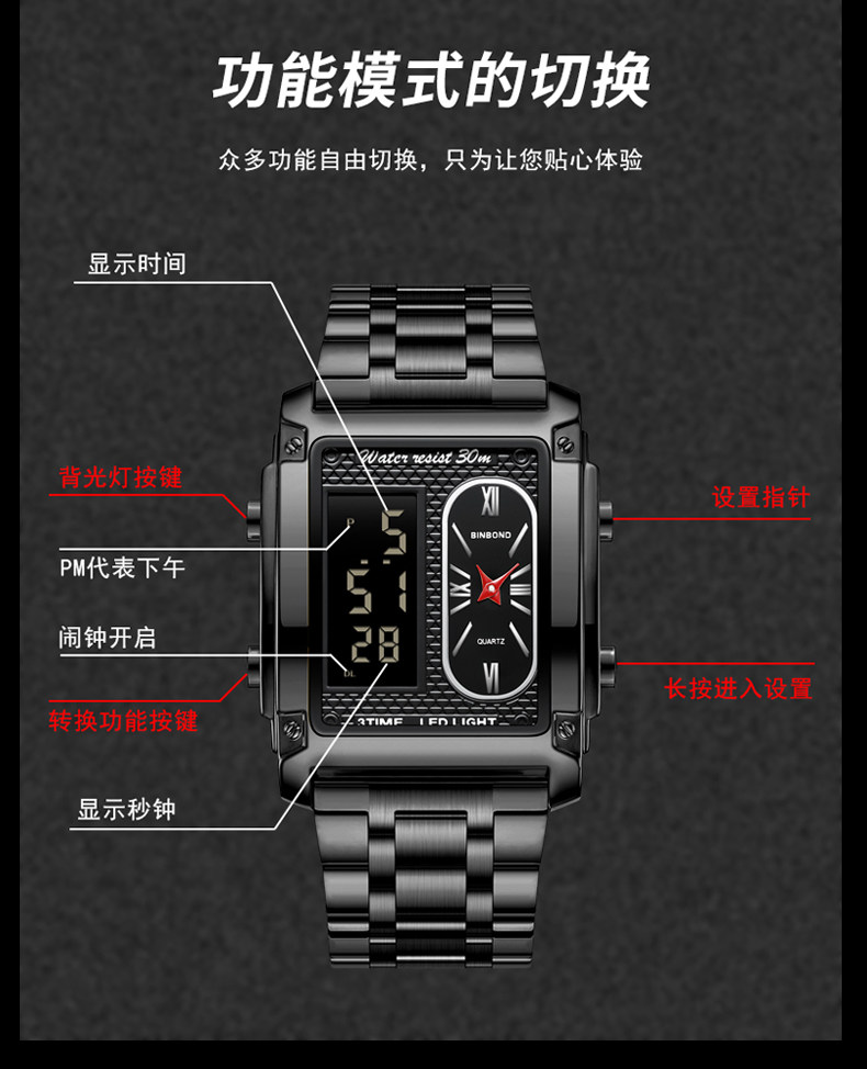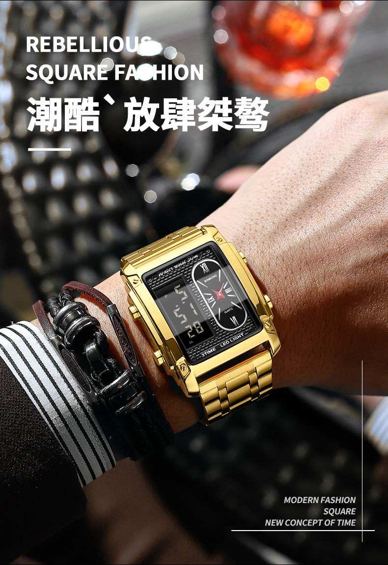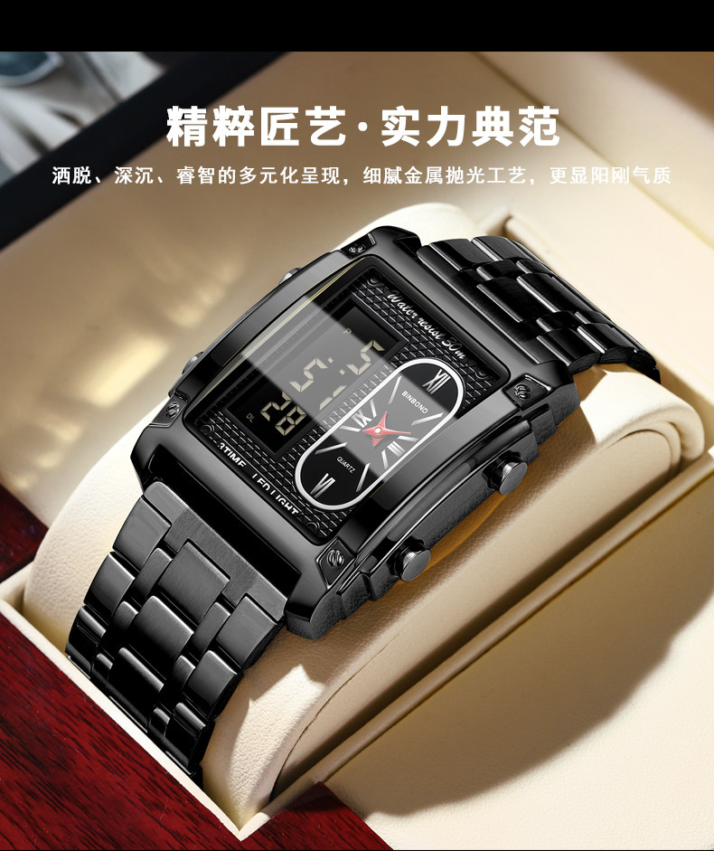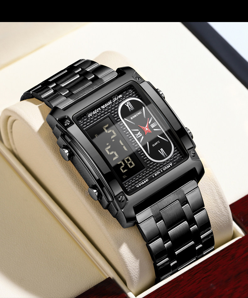 BINBOND/宾邦 Квадратные универсальные водонепроницаемые цифровые часы, электронный ремень