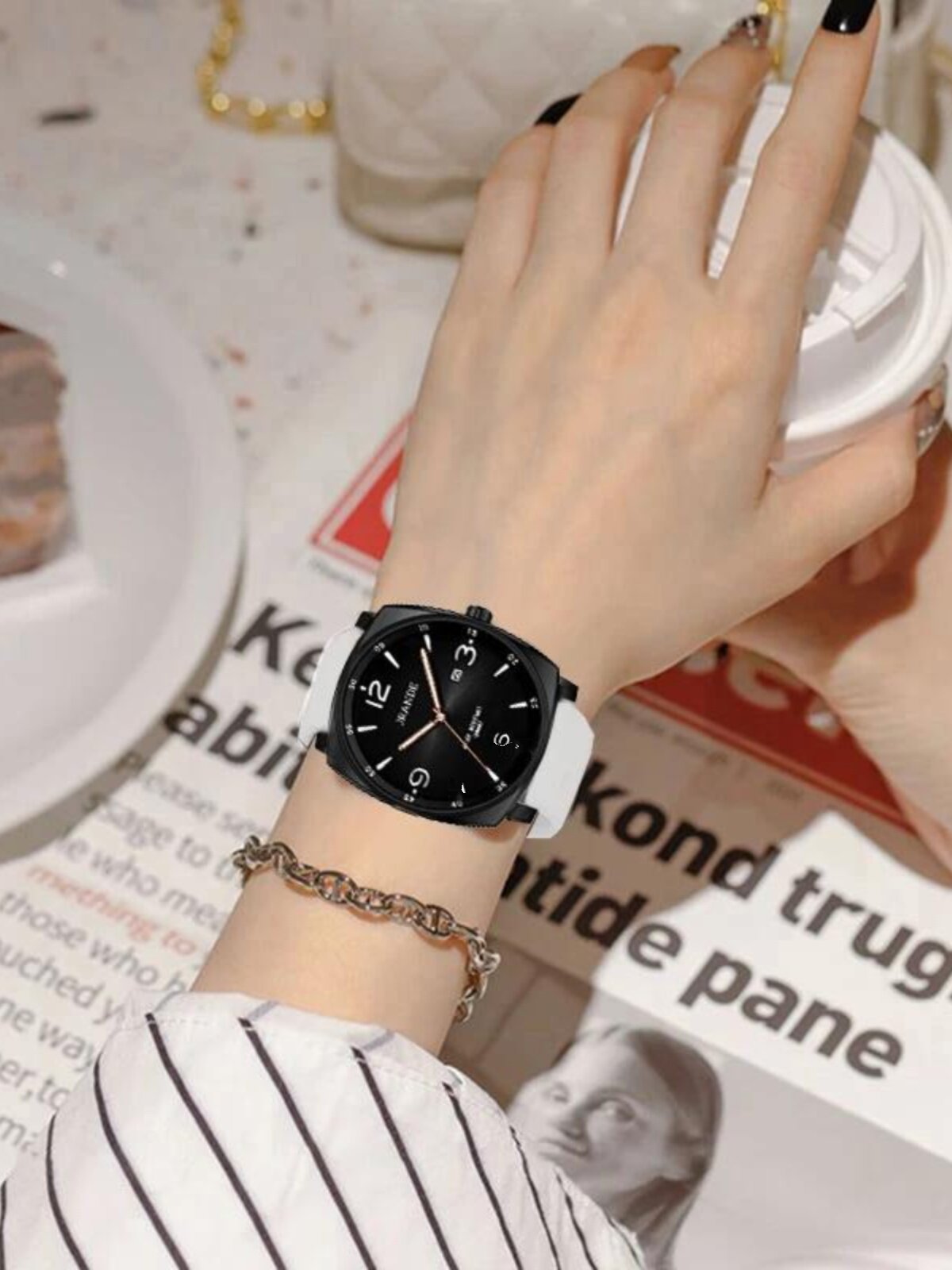 Водонепроницаемые трендовые черные универсальные швейцарские часы подходит для мужчин и женщин для влюбленных