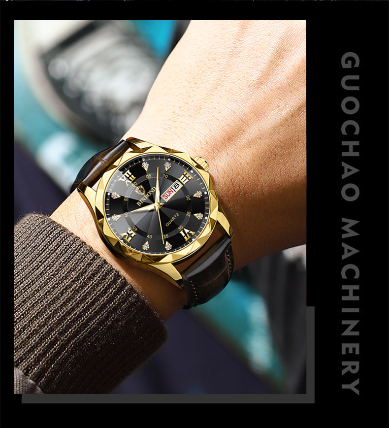 Водонепроницаемые швейцарские часы, календарь, мужские часы, кварцевые часы, ремень