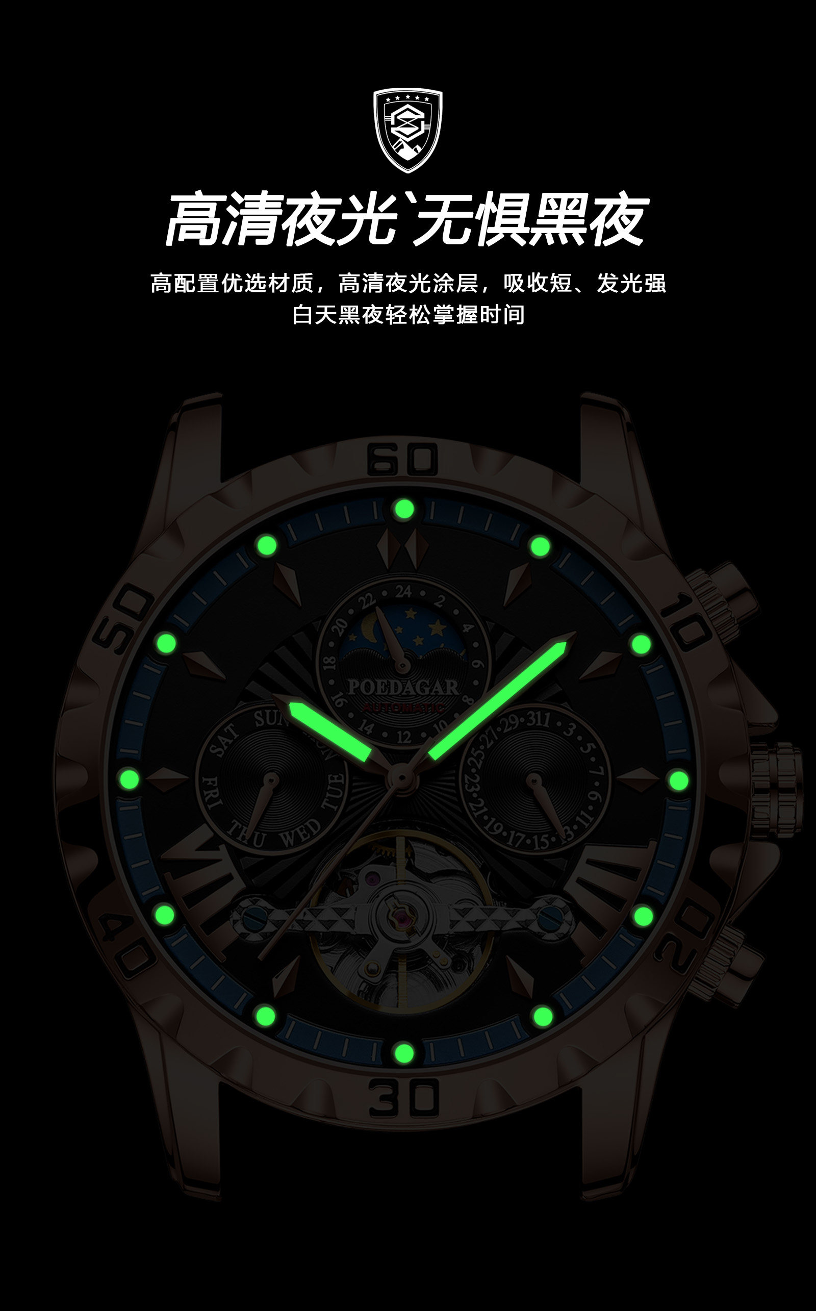 Высококлассная универсальная водонепроницаемая механическая велосипедная кассета, светящиеся мужские часы, Швейцария, полностью автоматический