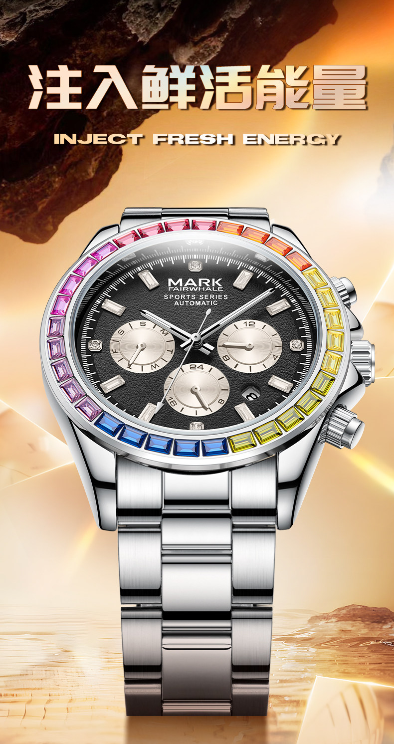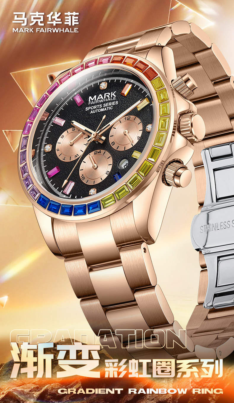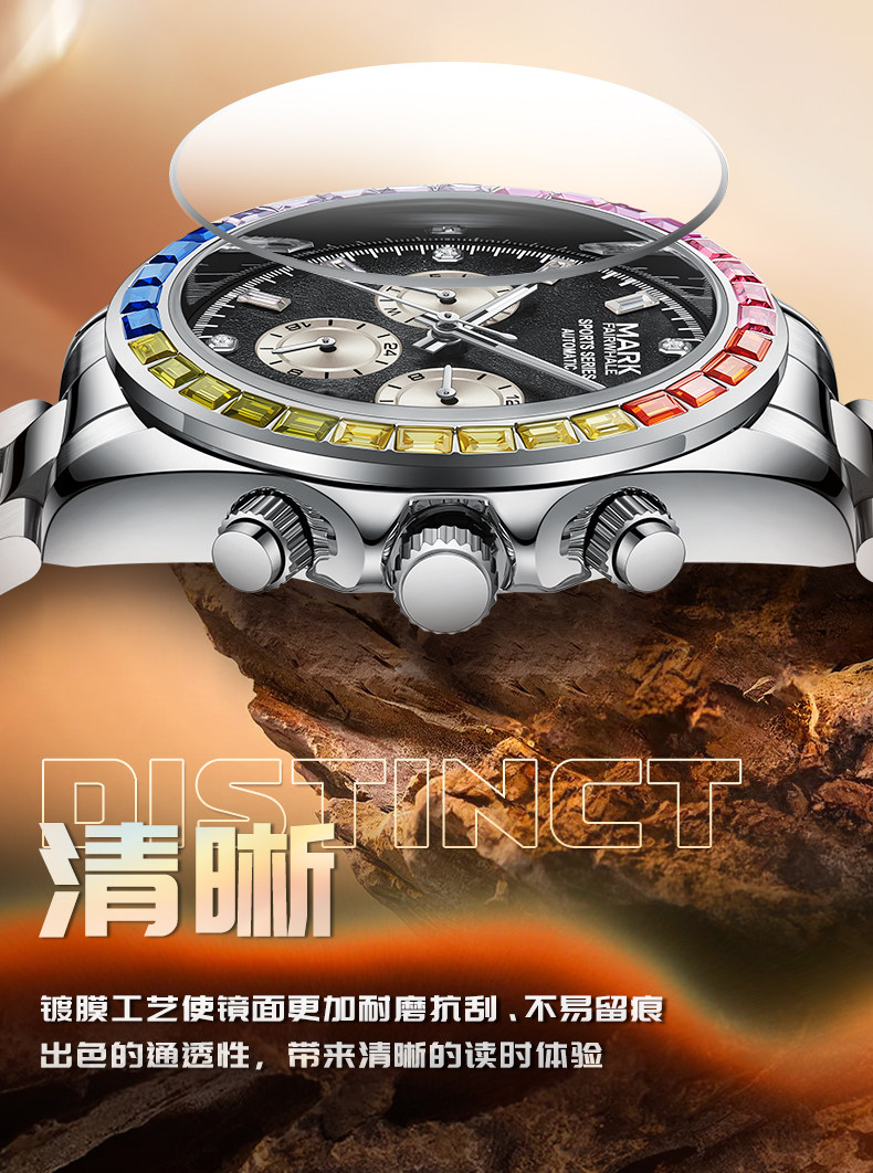 Радужные швейцарские часы, мужские часы, механические водонепроницаемые механические часы