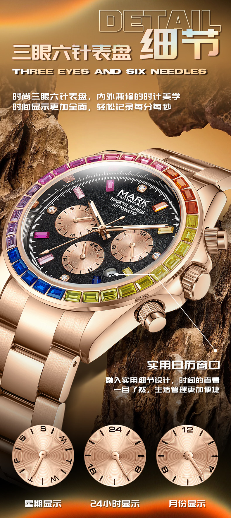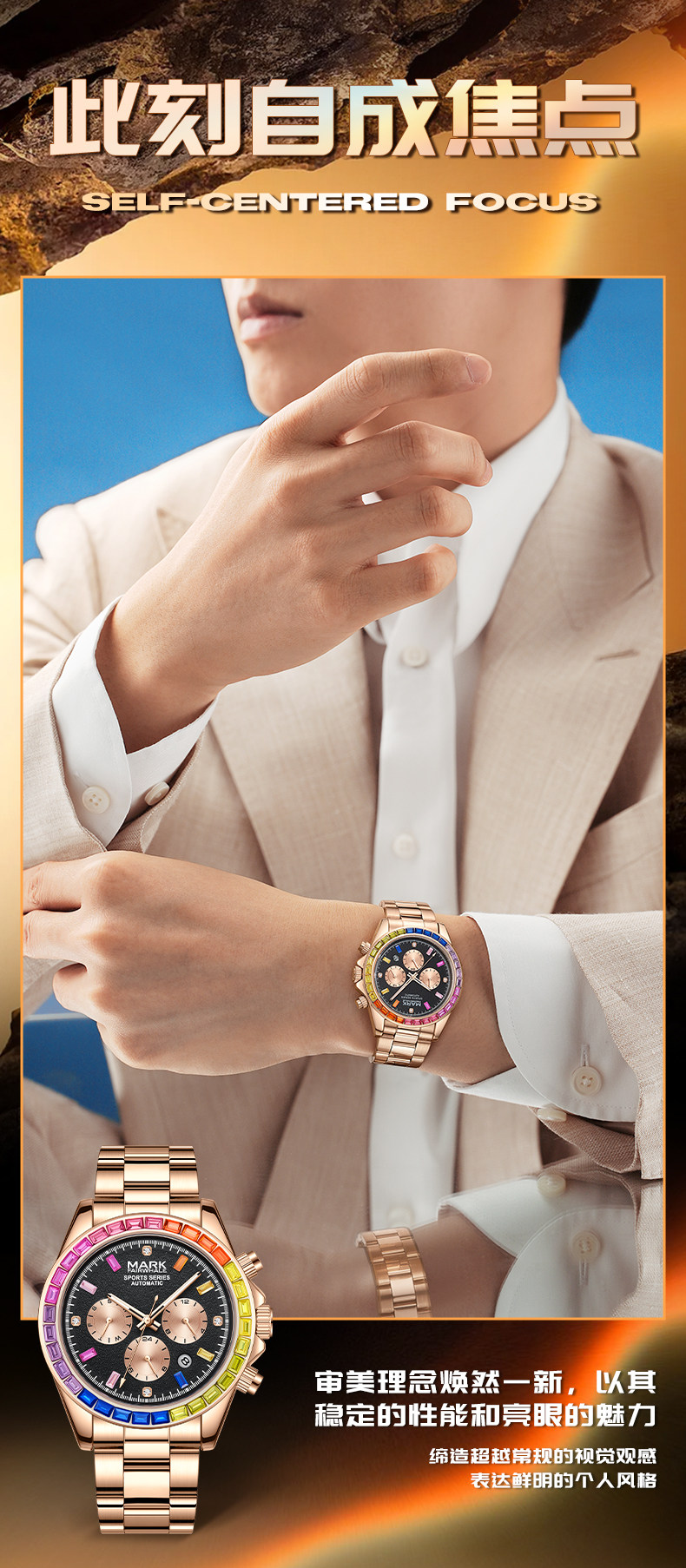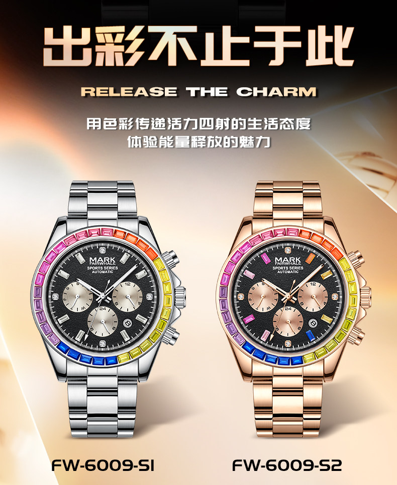 Радужные швейцарские часы, мужские часы, механические водонепроницаемые механические часы