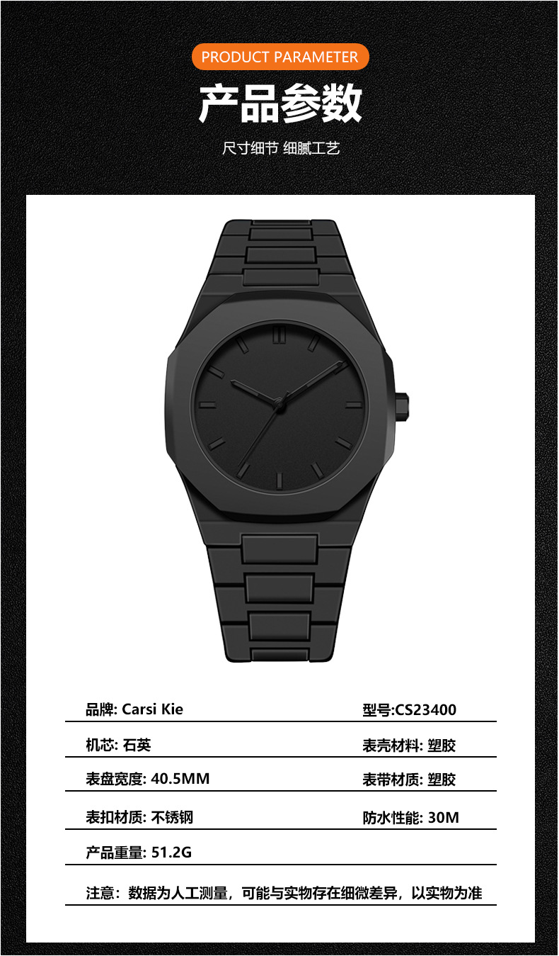 Мужские часы, водонепроницаемые женские часы, пластиковый кварцевый циферблат, изысканный стиль, 30м
