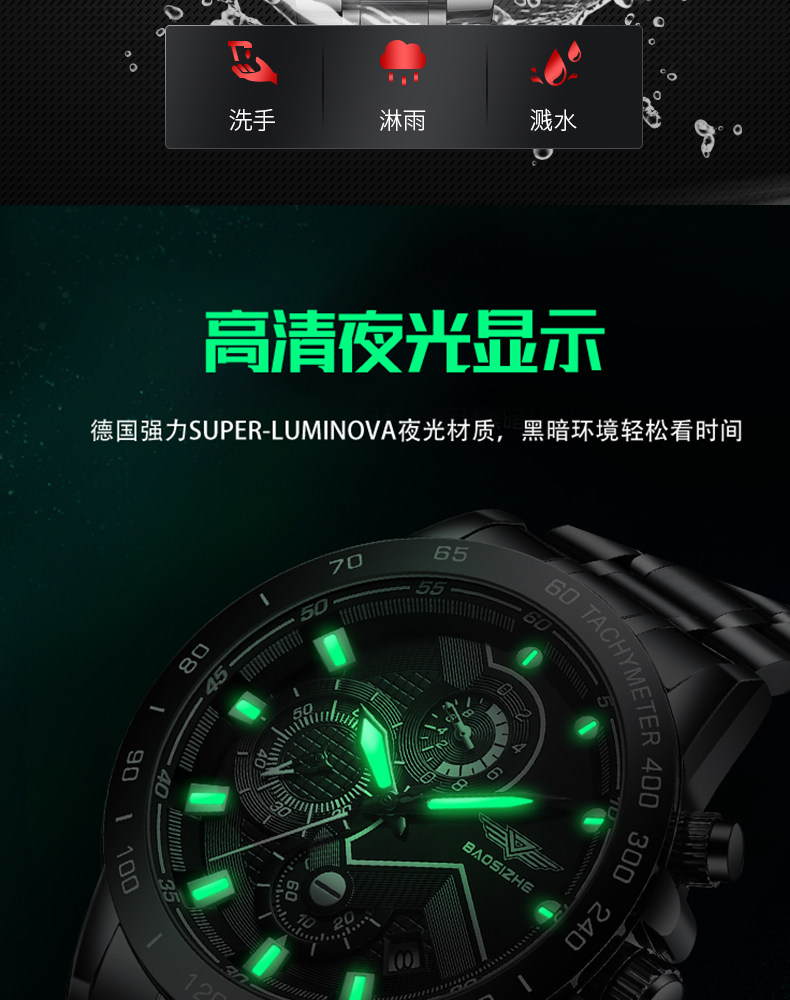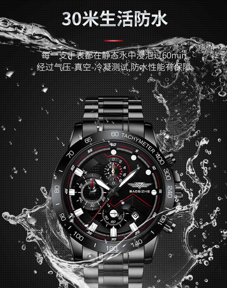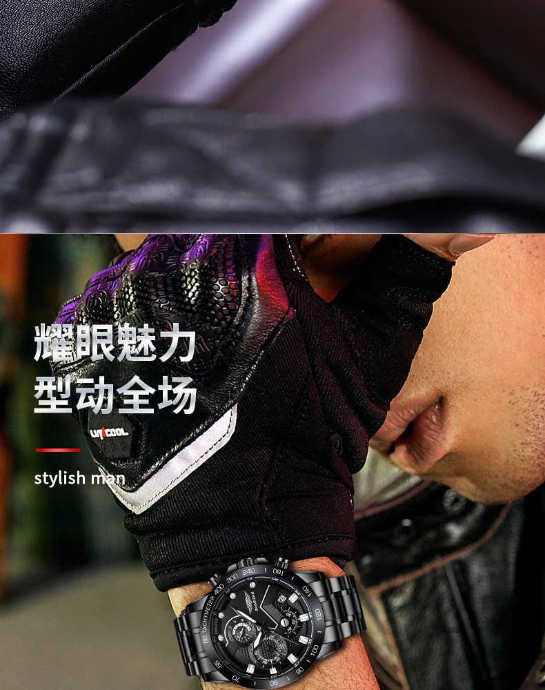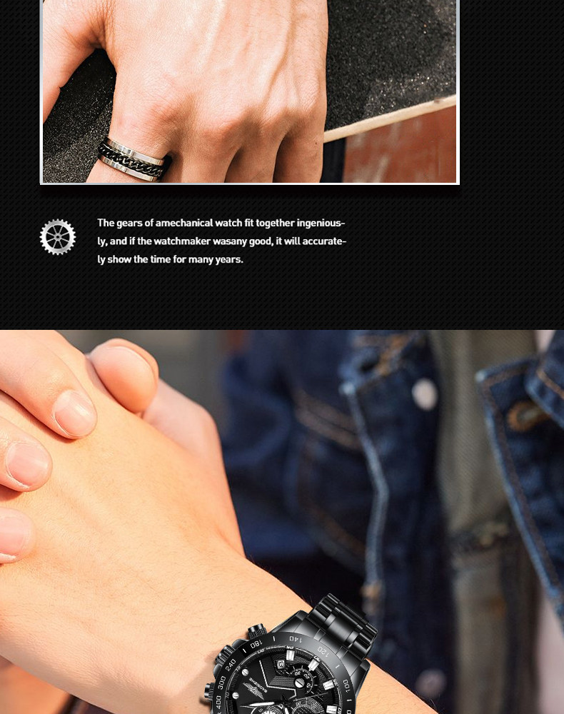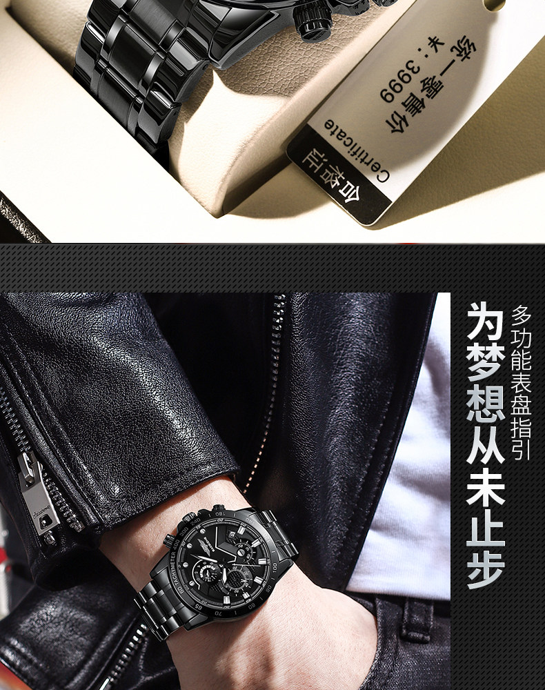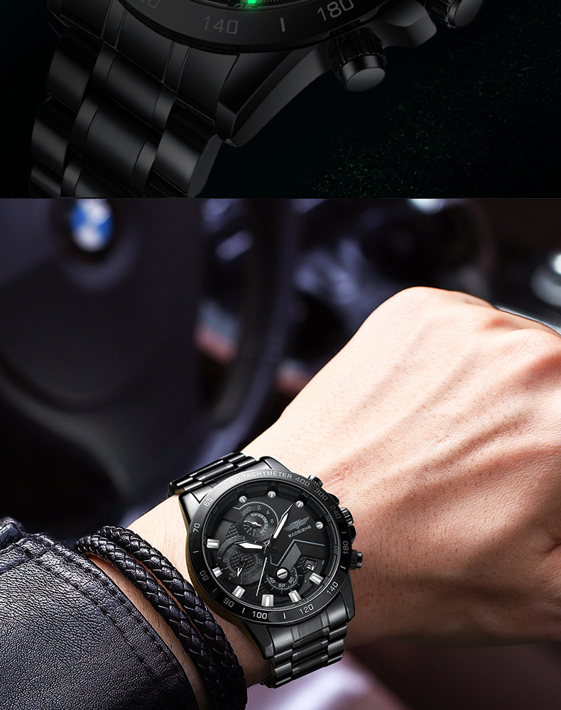 Механические мужские часы для отдыха, мужской водонепроницаемый кварцевый стальной ремешок, полностью автоматический, оптика, Швейцария