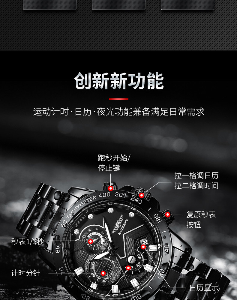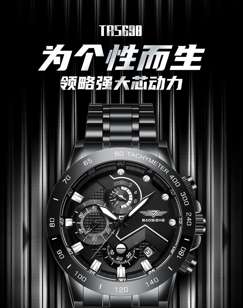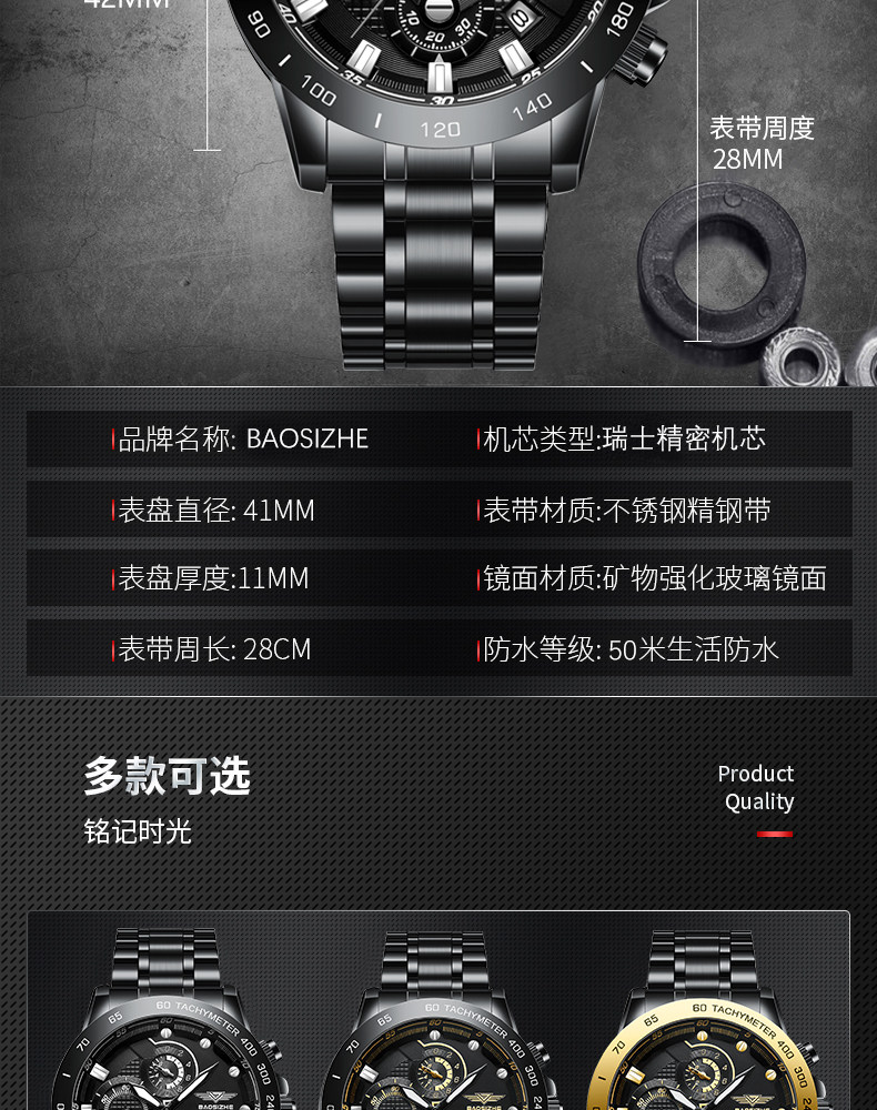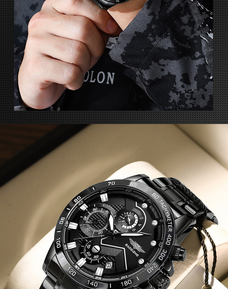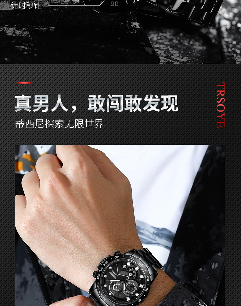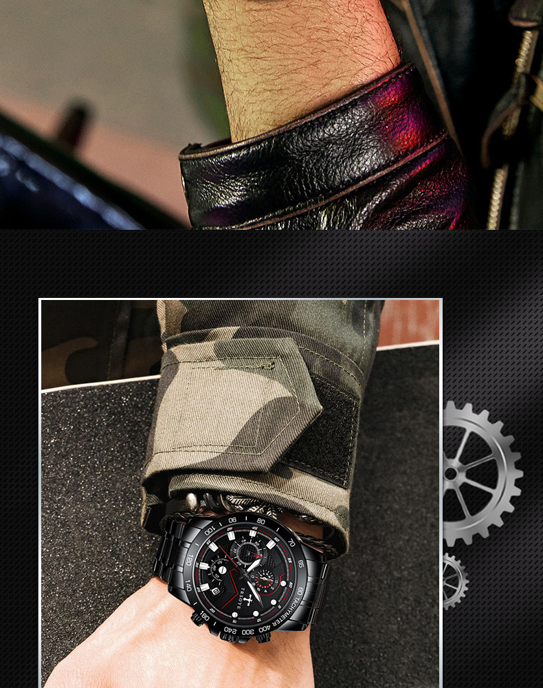 Механические мужские часы для отдыха, мужской водонепроницаемый кварцевый стальной ремешок, полностью автоматический, оптика, Швейцария