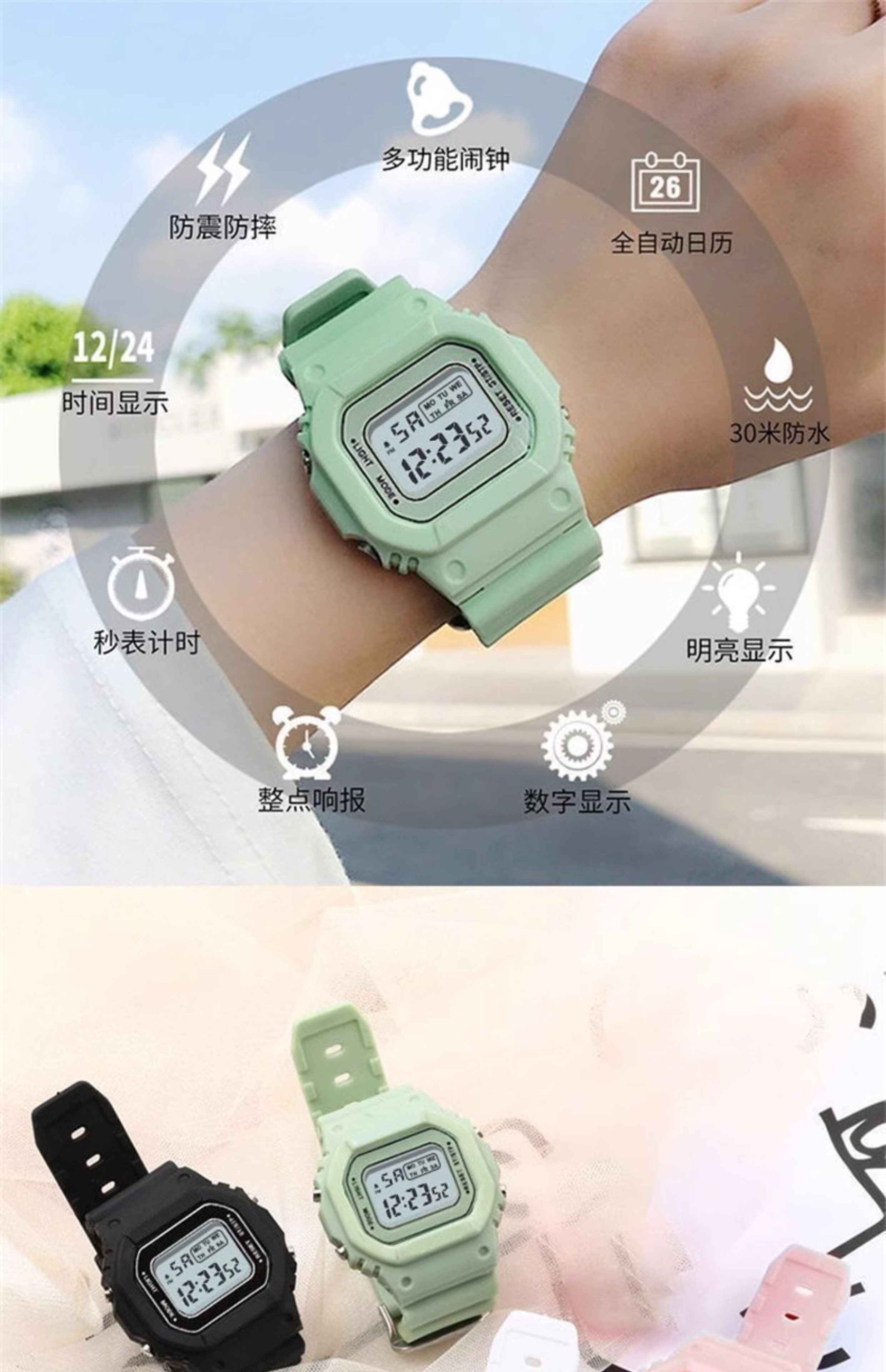Водонепроницаемые универсальные электронные трендовые высококачественные мужские часы подходит для мужчин и женщин, подходит для подростков, простой и элегантный дизайн