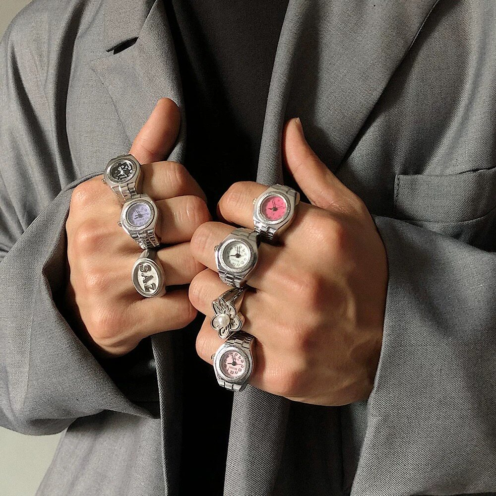 Часы, брендовое трендовое ретро креативное регулируемое кольцо, в корейском стиле, на указательный палец