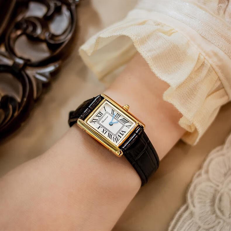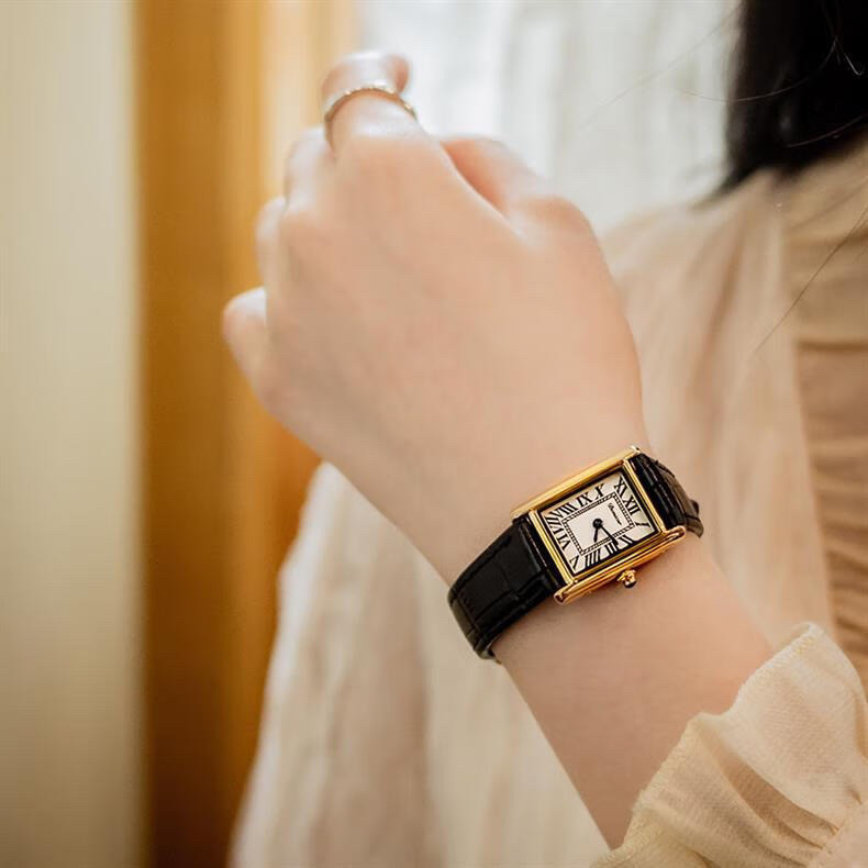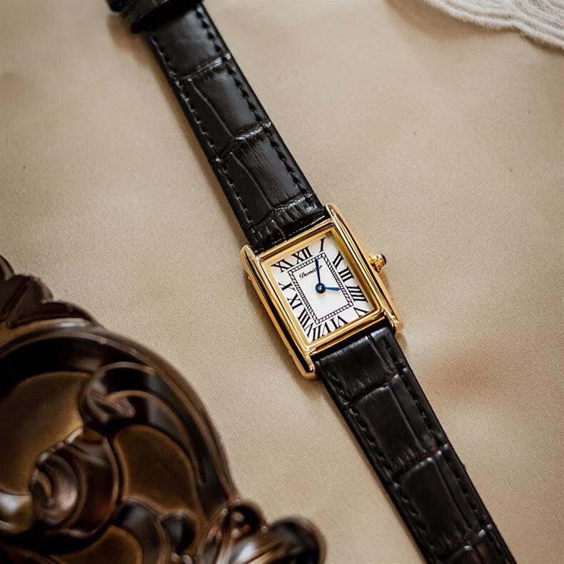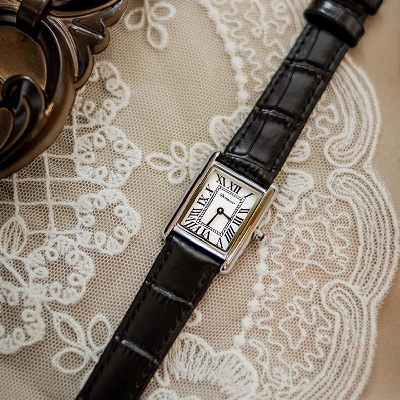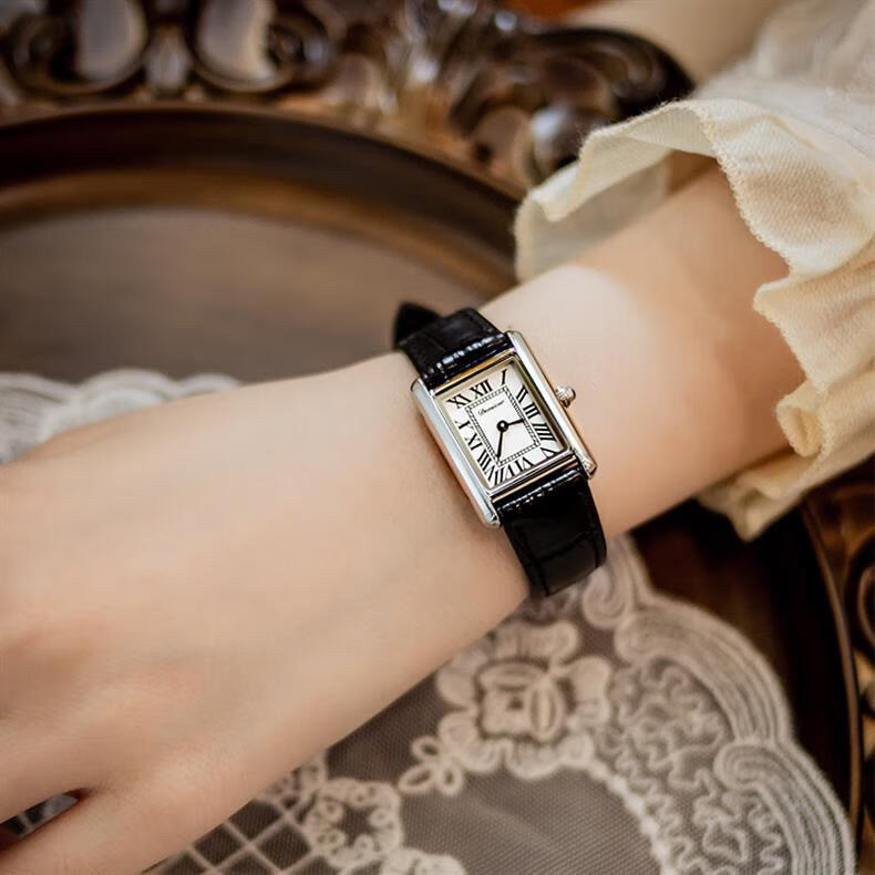 Классический прямоугольный танк, черные кожаные женские часы подходит для мужчин и женщин, из натуральной кожи