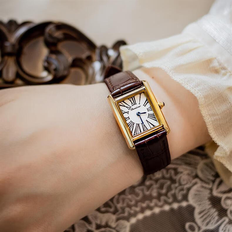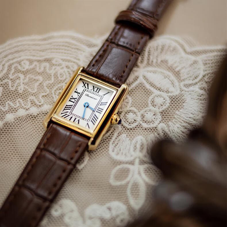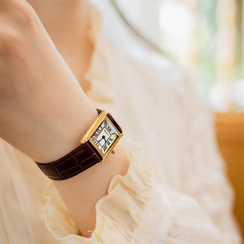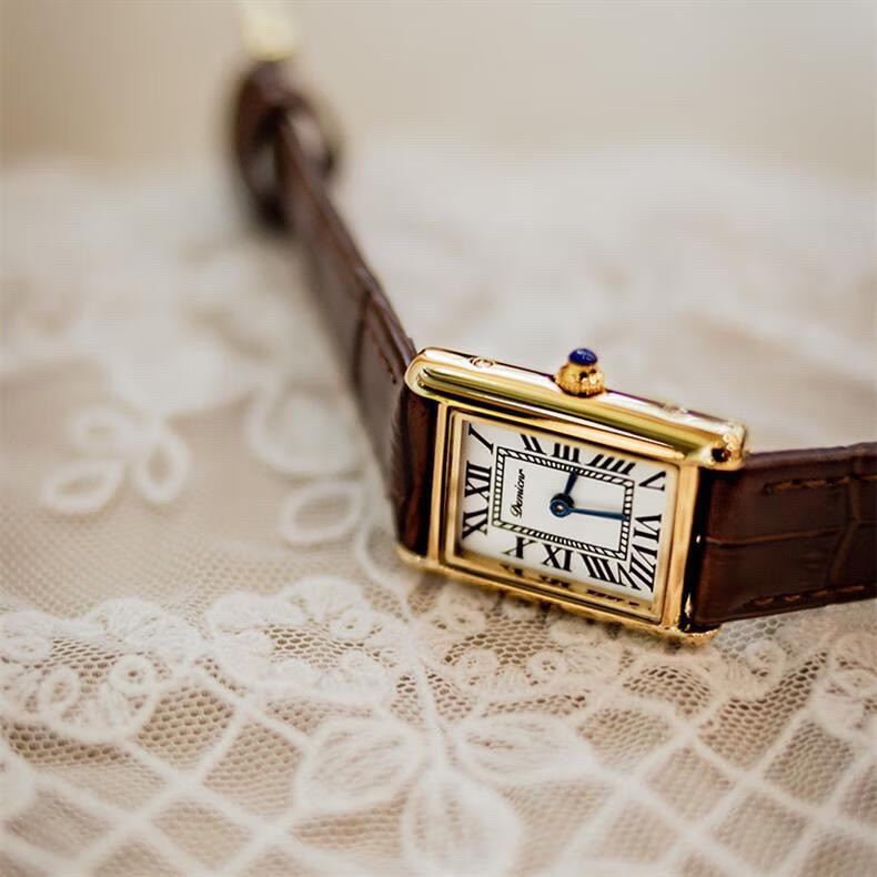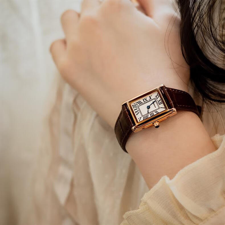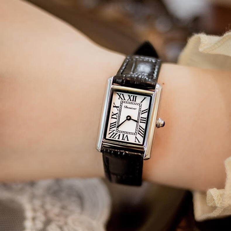 Классический прямоугольный танк, черные кожаные женские часы подходит для мужчин и женщин, из натуральной кожи