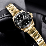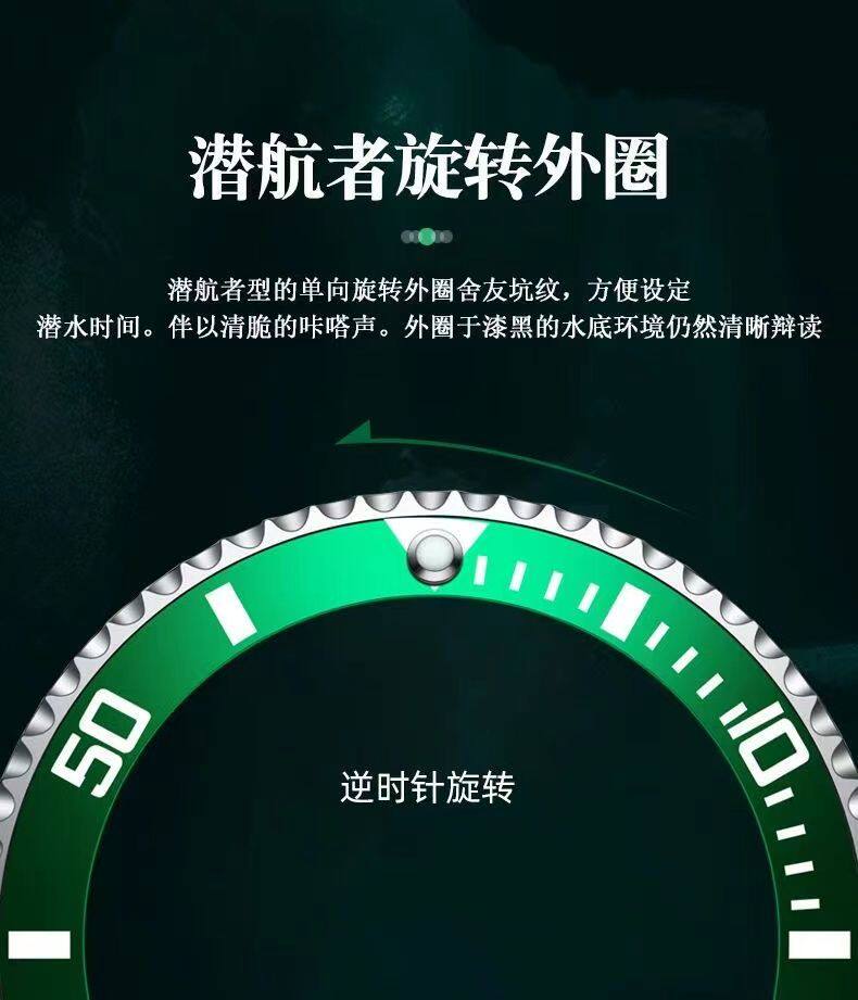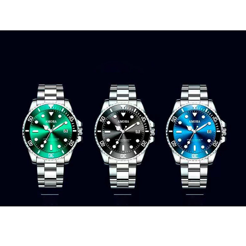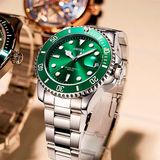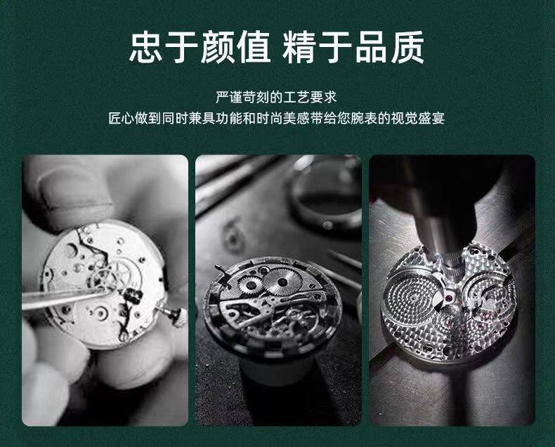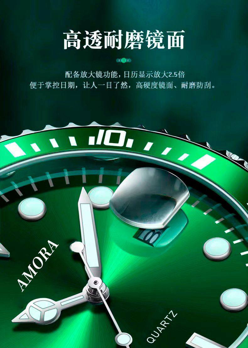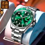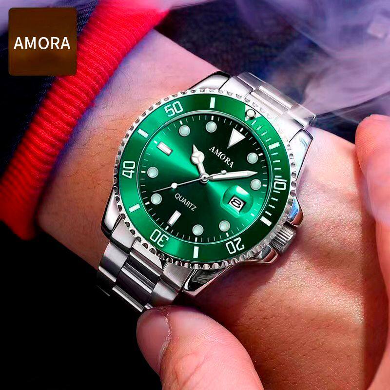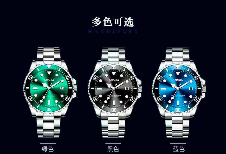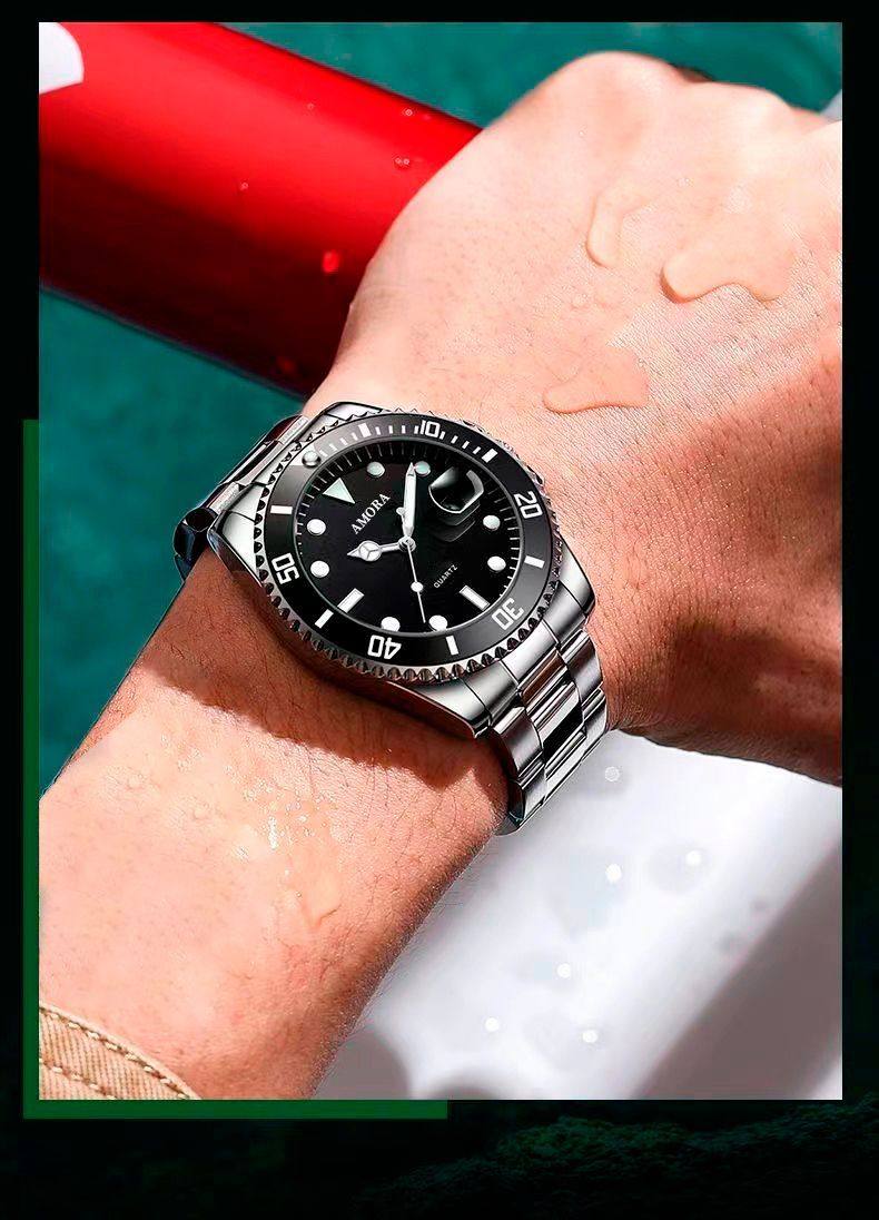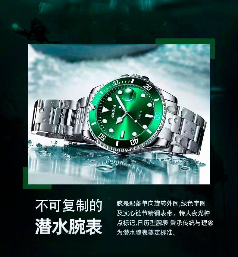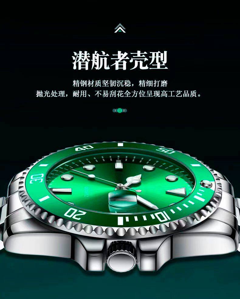 Модные механические кварцевые часы, водонепроницаемый стальной ремешок, зеленый календарь, полностью автоматический