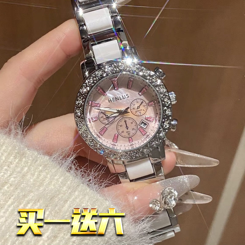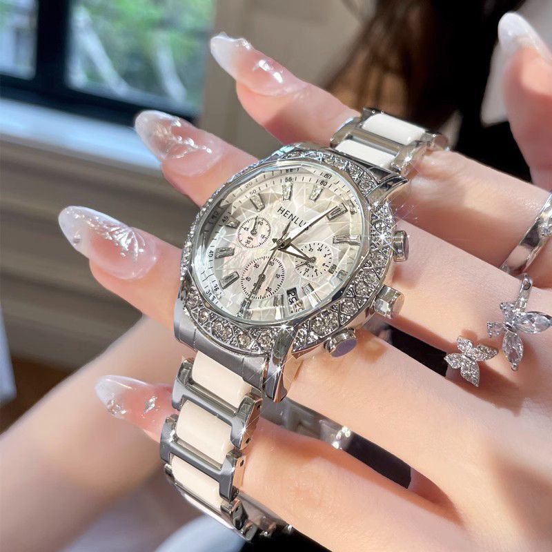 Механические кварцевые часы, календарь, водонепроницаемый стальной ремешок, изысканный стиль, легкий роскошный стиль