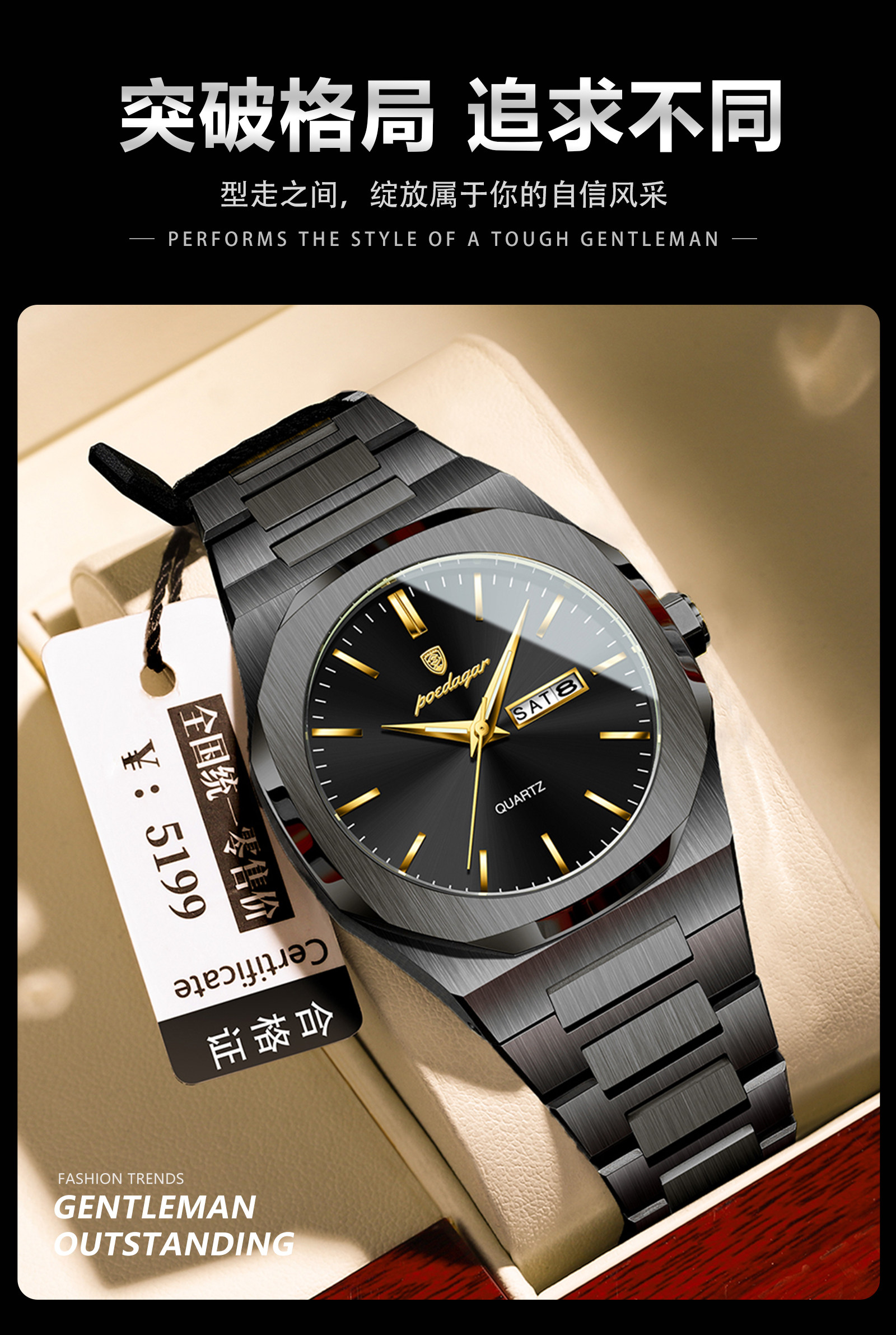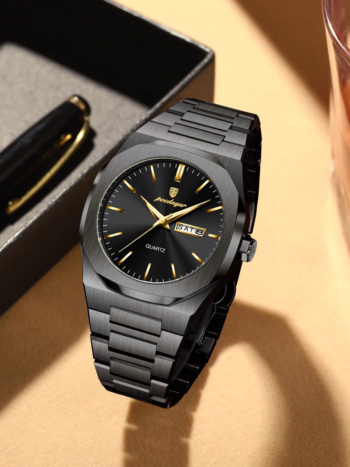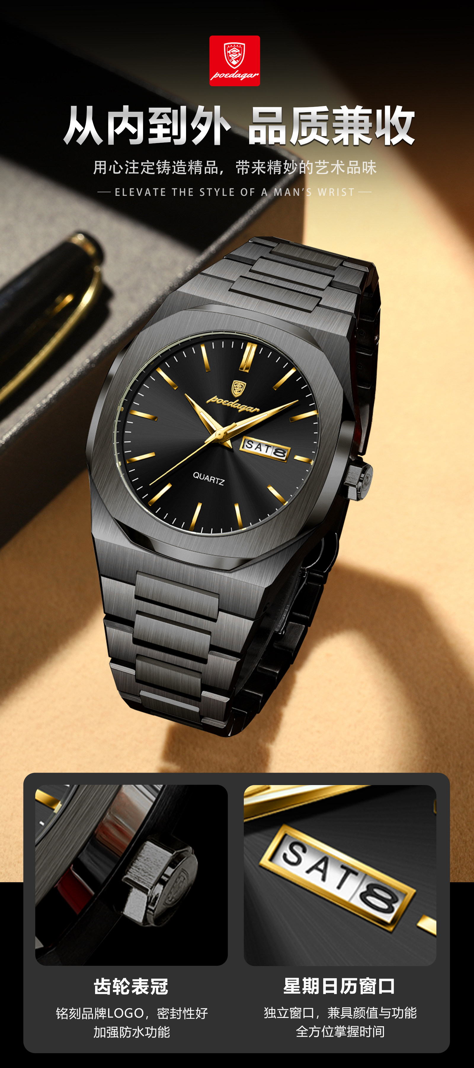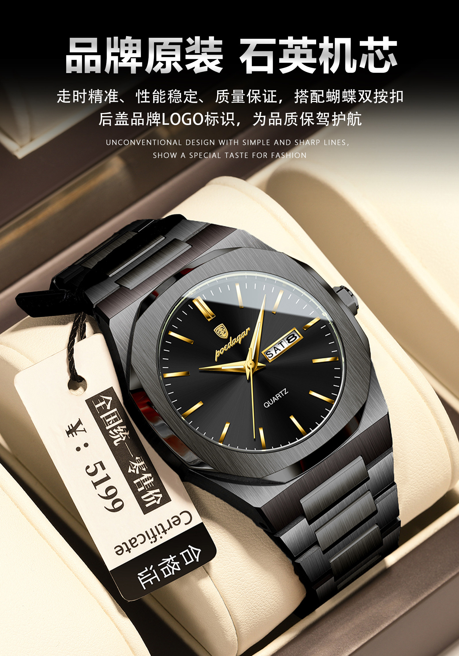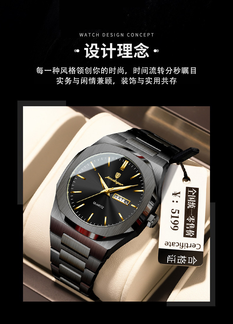 Швейцарские часы, водонепроницаемые мужские часы, трендовый кварцевый календарь, Швейцария, простой и элегантный дизайн