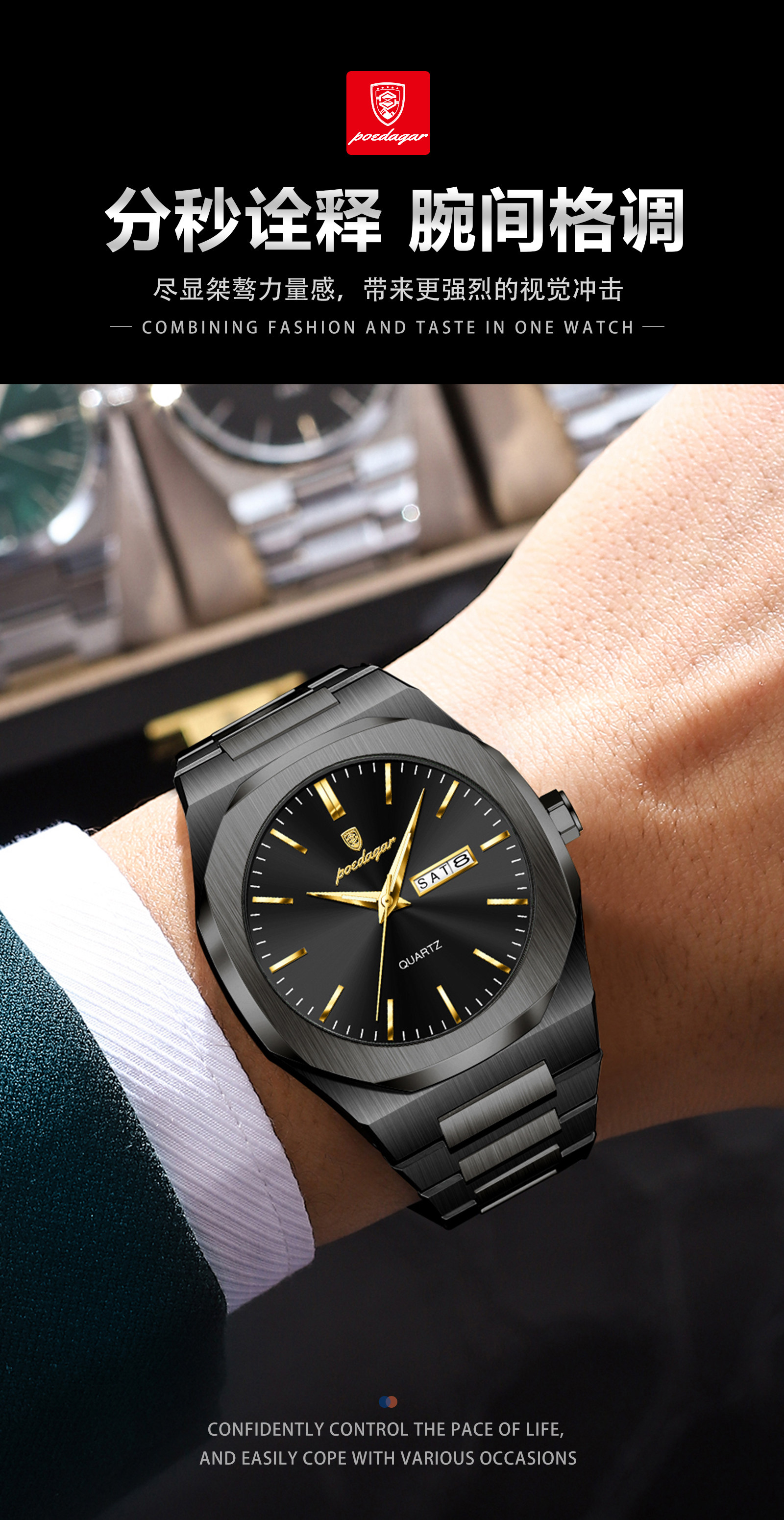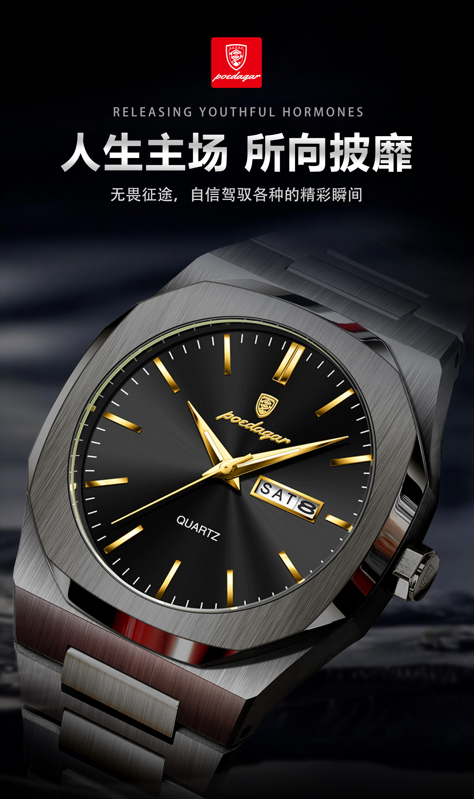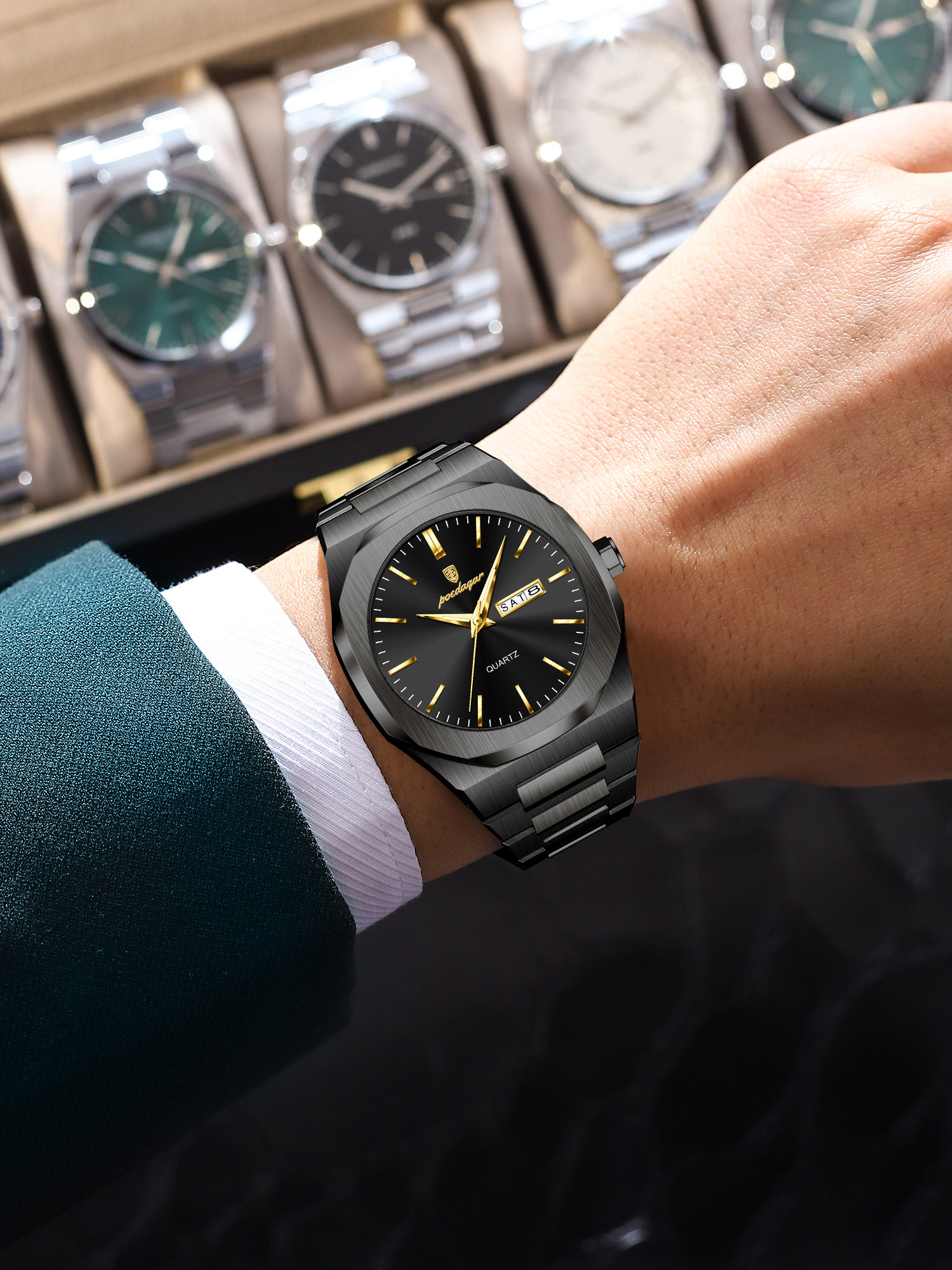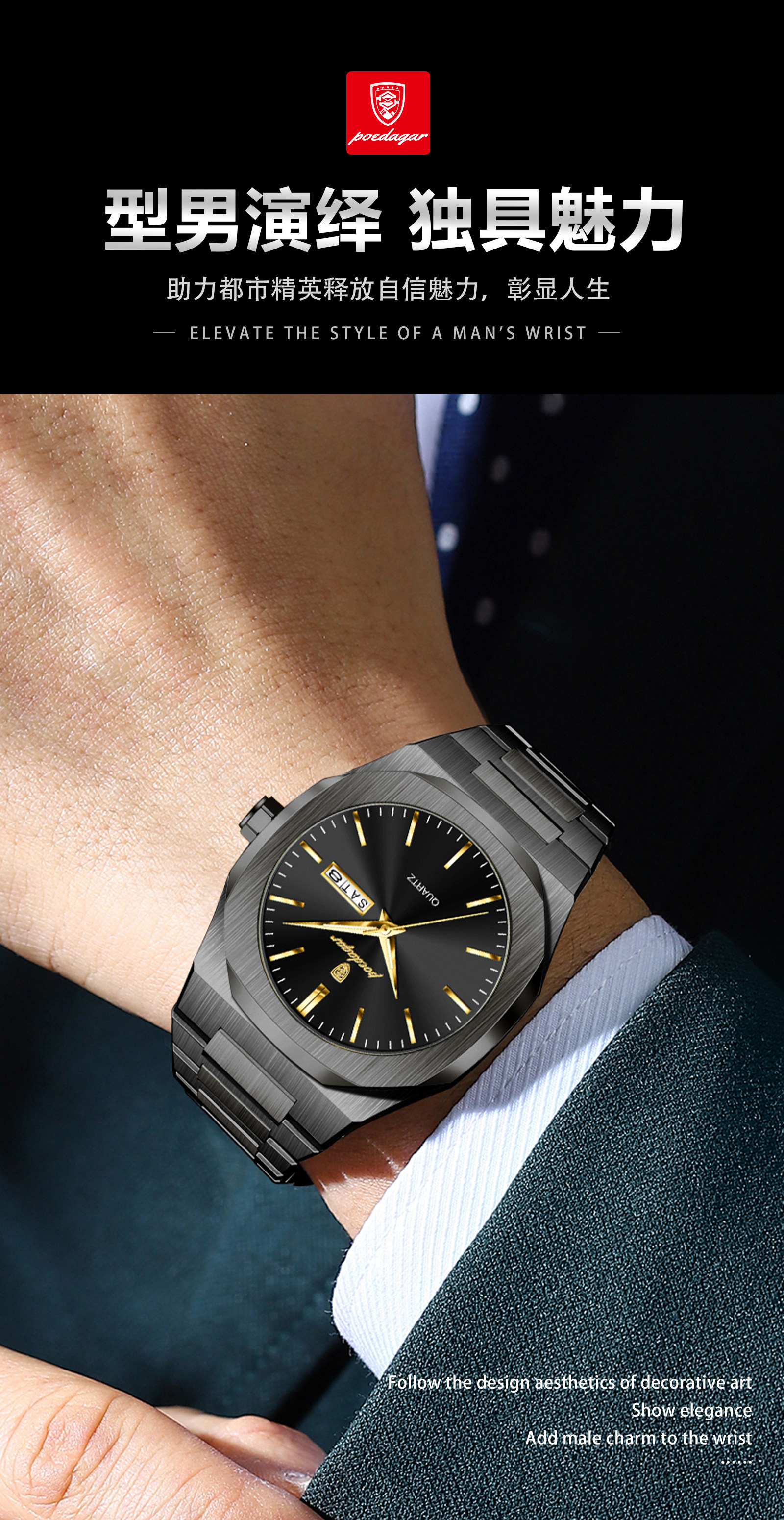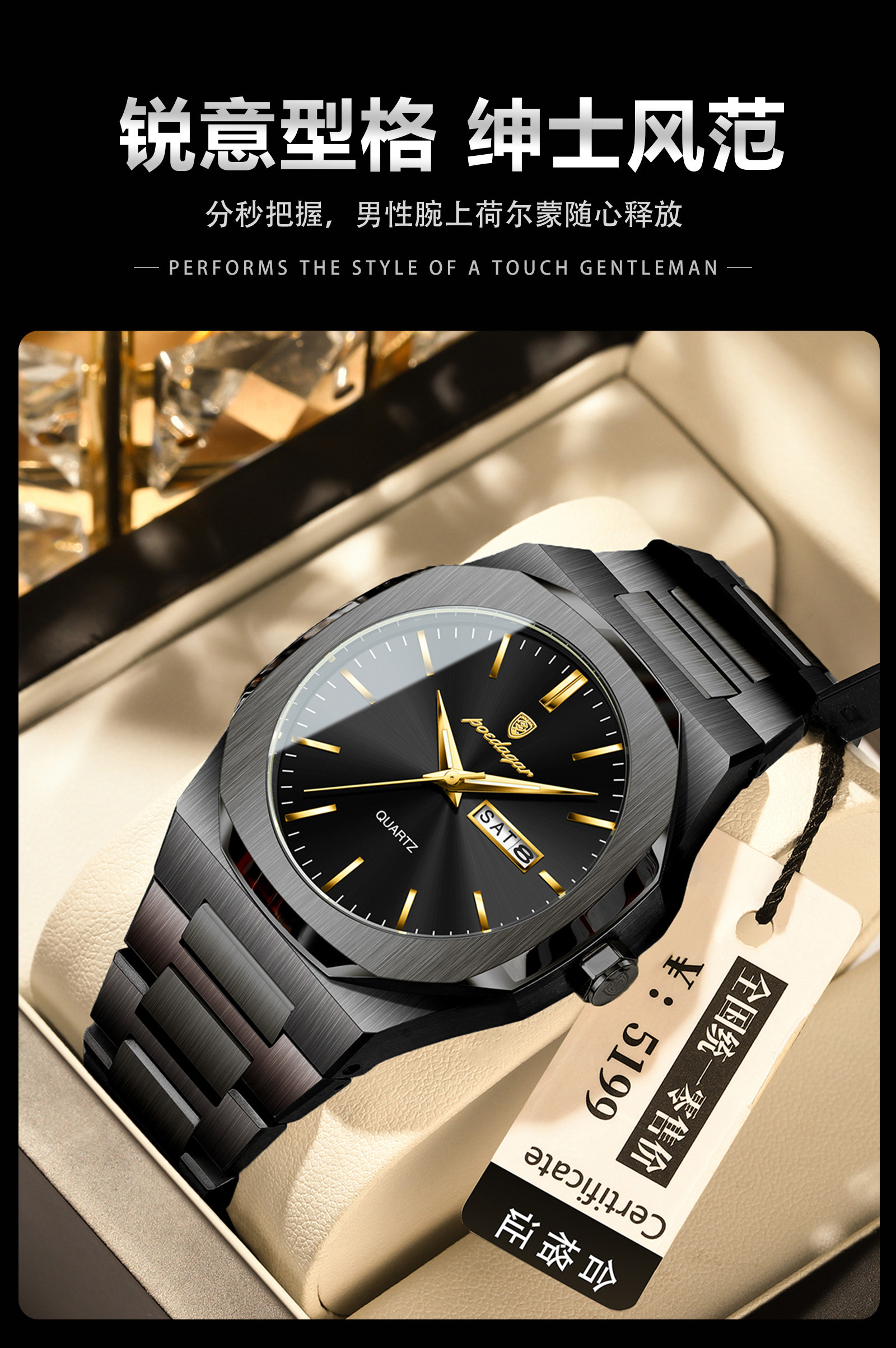 Швейцарские часы, водонепроницаемые мужские часы, трендовый кварцевый календарь, Швейцария, простой и элегантный дизайн