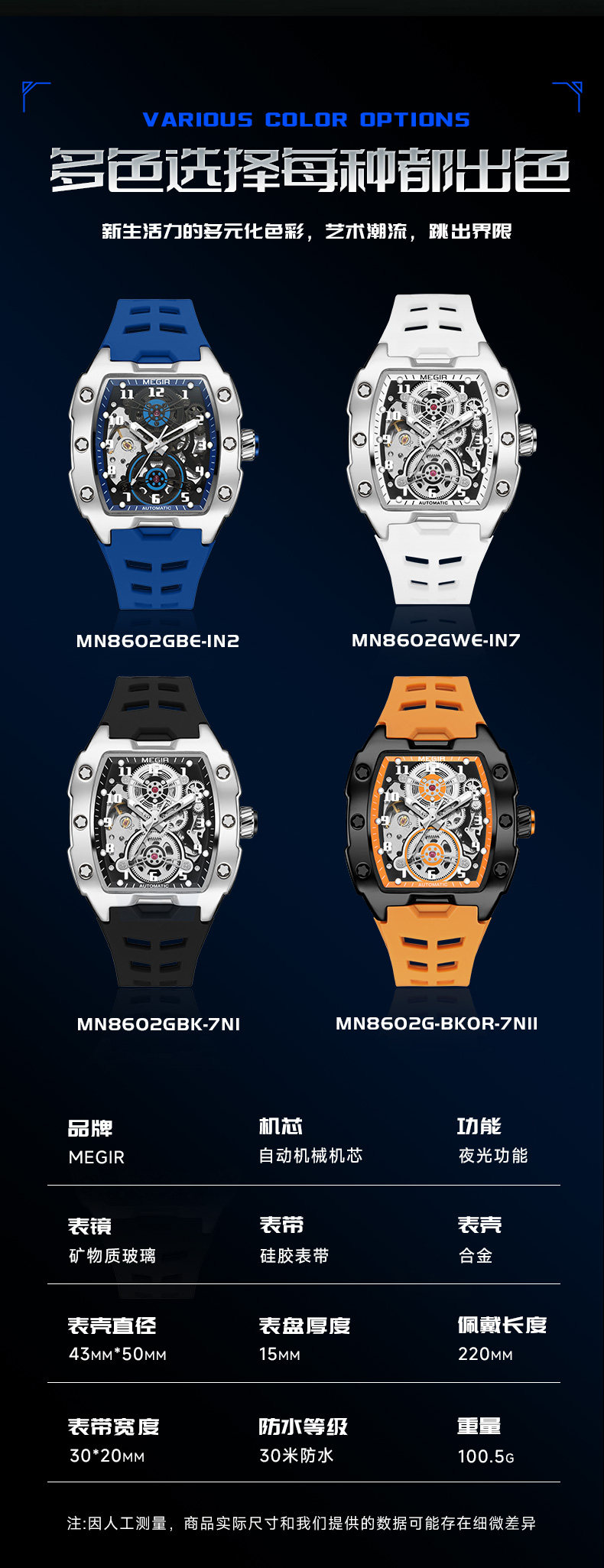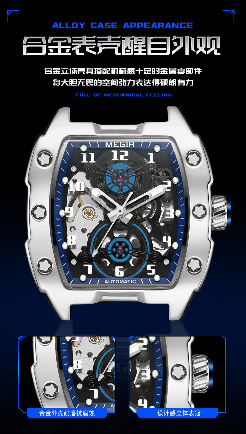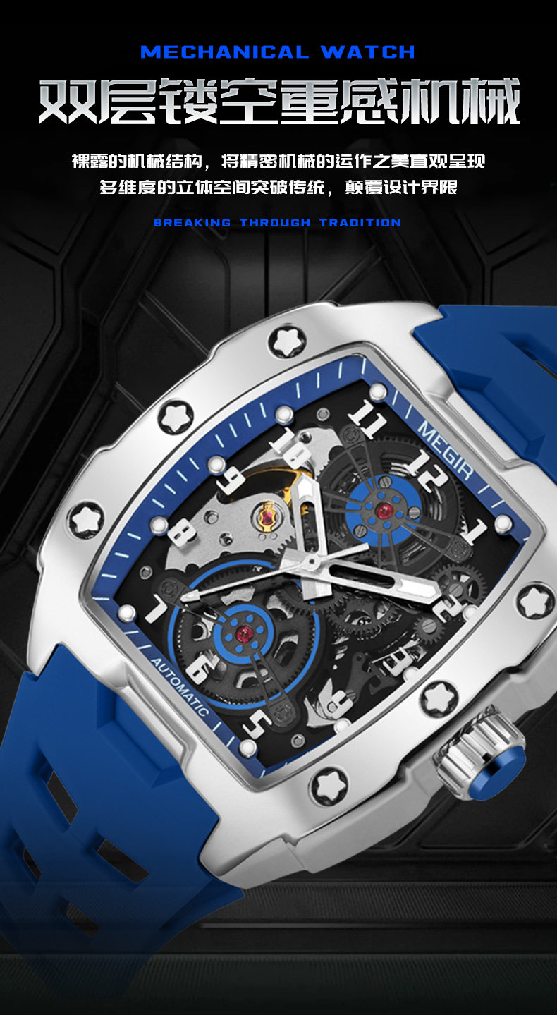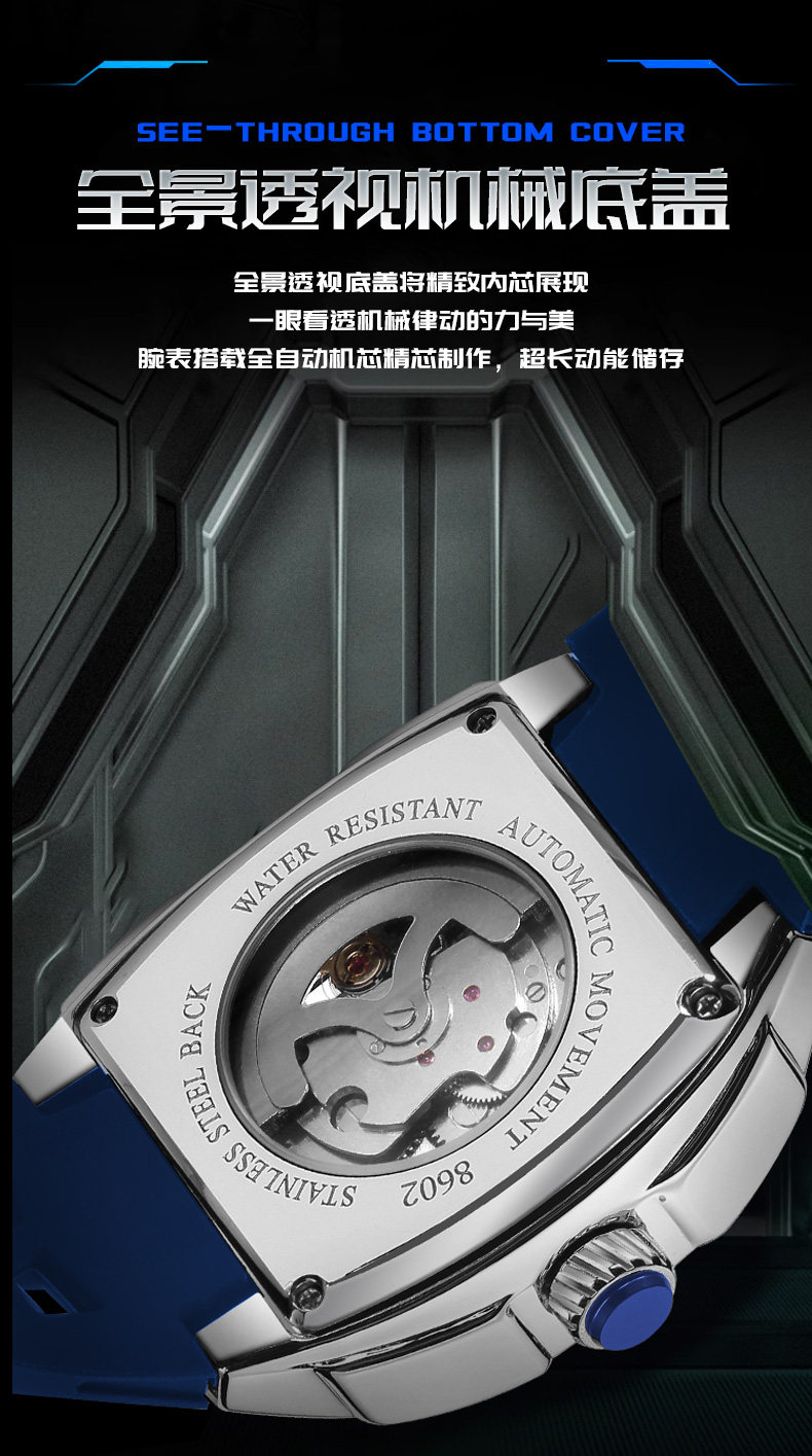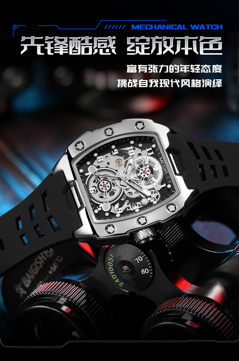 Высококачественные механические спортивные модные механические часы, полностью автоматический