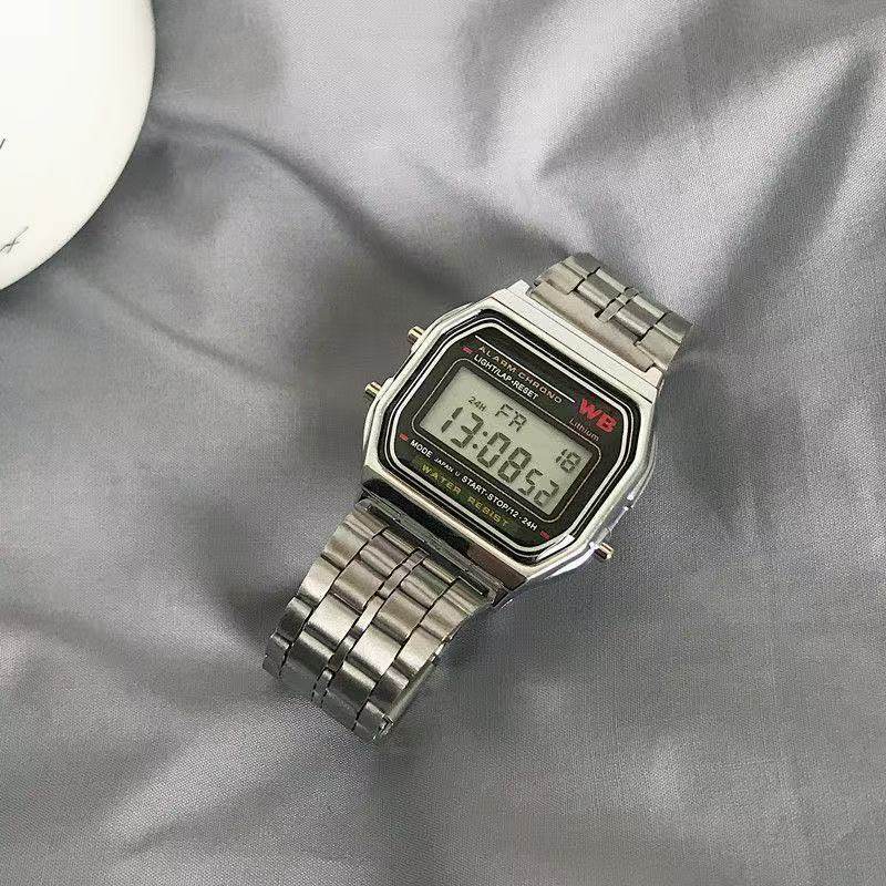 Ретро электронные мужские часы подходит для мужчин и женщин, трендовый универсальный стальной ремешок