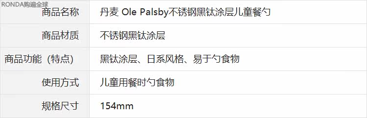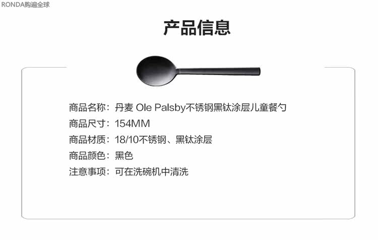 Дания Оле Палсби Дизайн из нержавеющей стали Черная титановая покрытие детской еды детская ложка супа 15.4 см.