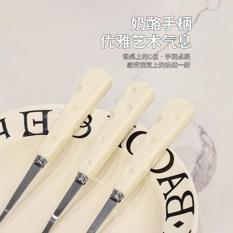 Ложка из нержавеющей стали, вилка, нож, набор для домашнего использования, кремовый комплект, легкий роскошный стиль, 3 предмета