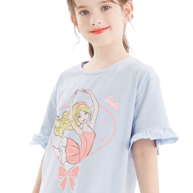 Летняя пижама, тонкая детская юбка, короткий рукав, из ворсистого хлопка