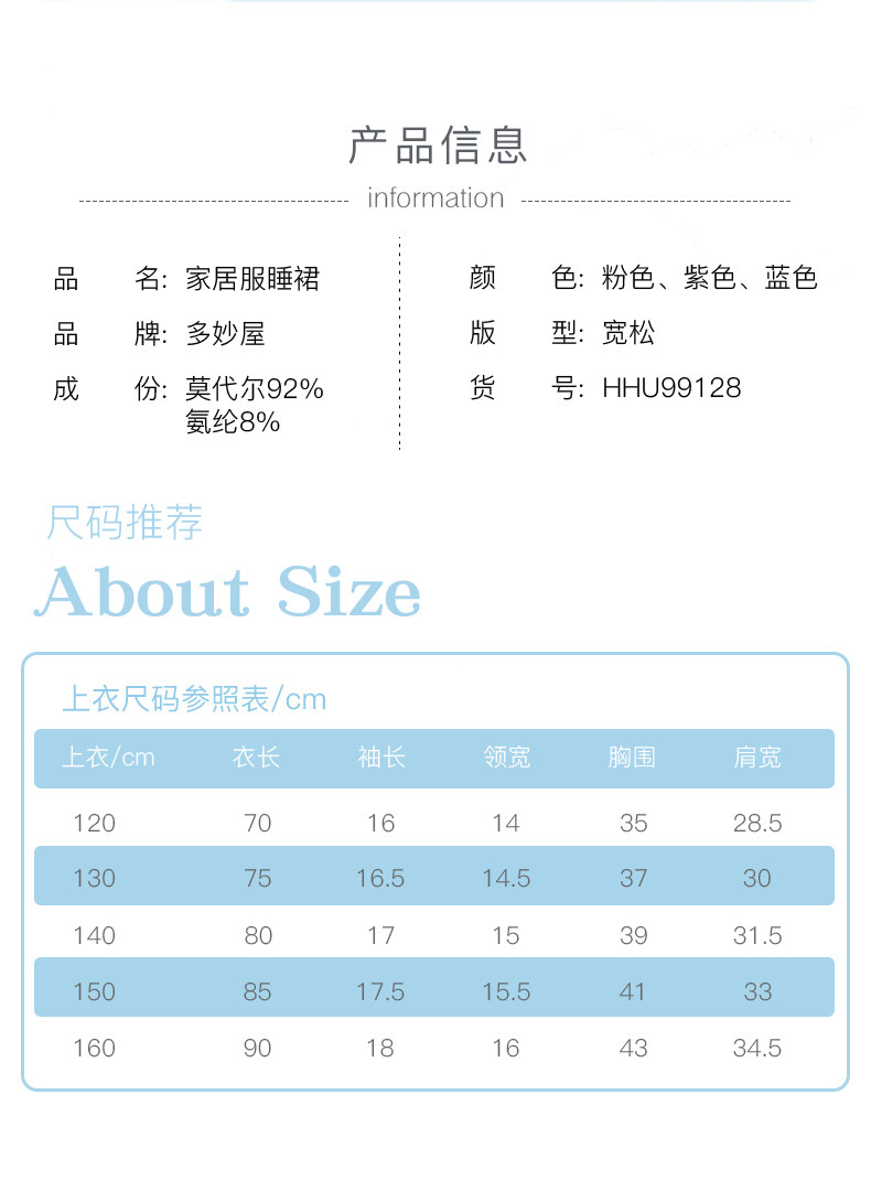 - [Расческа с хлопковой ночной одеждой] Маленькая мала -болли светло -голубой