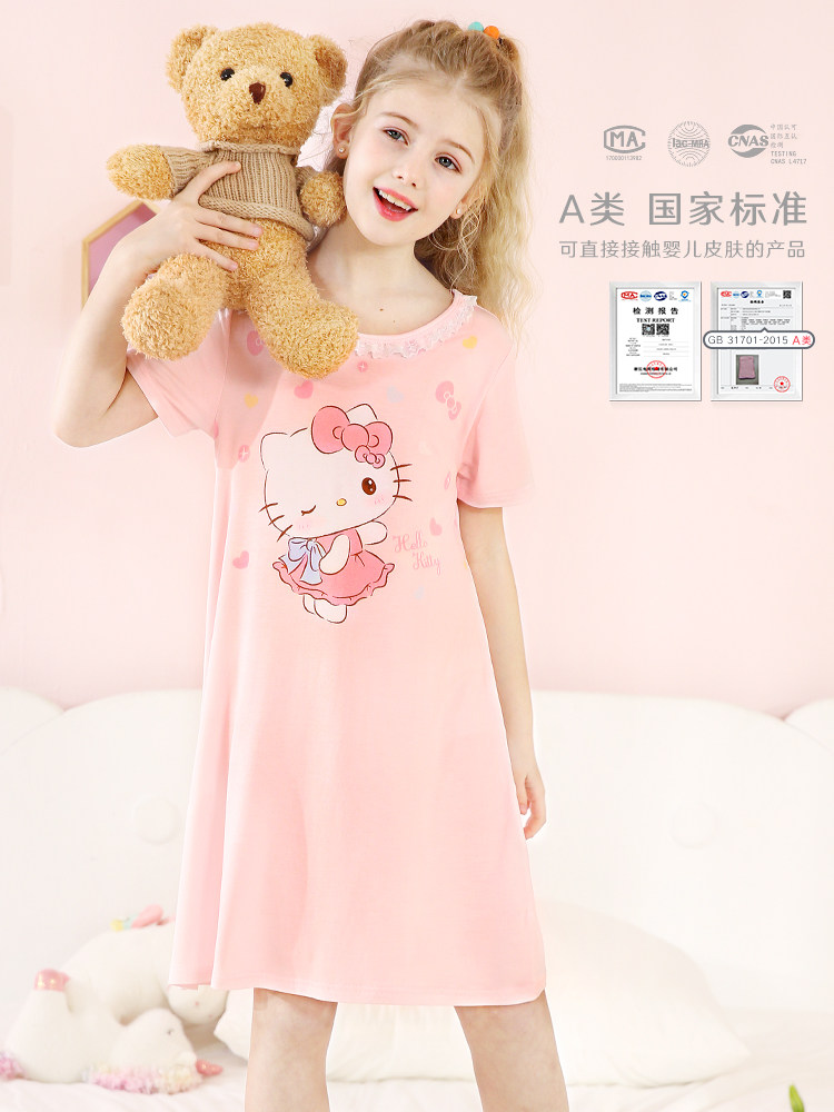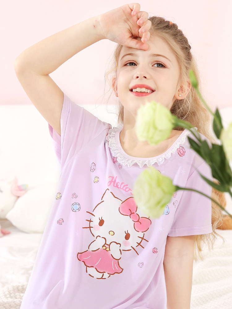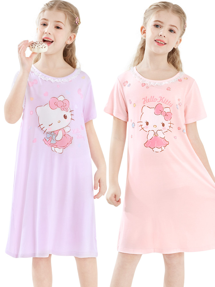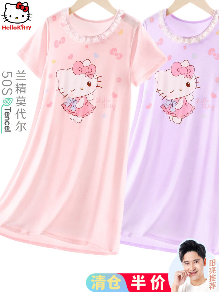 Hello kitty, летняя пижама, детская шелковая тонкая юбка, сшита из модала, короткий рукав, подходит для подростков