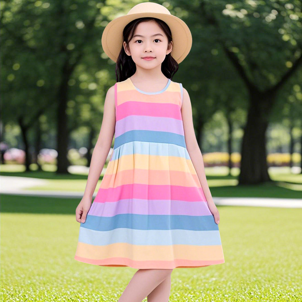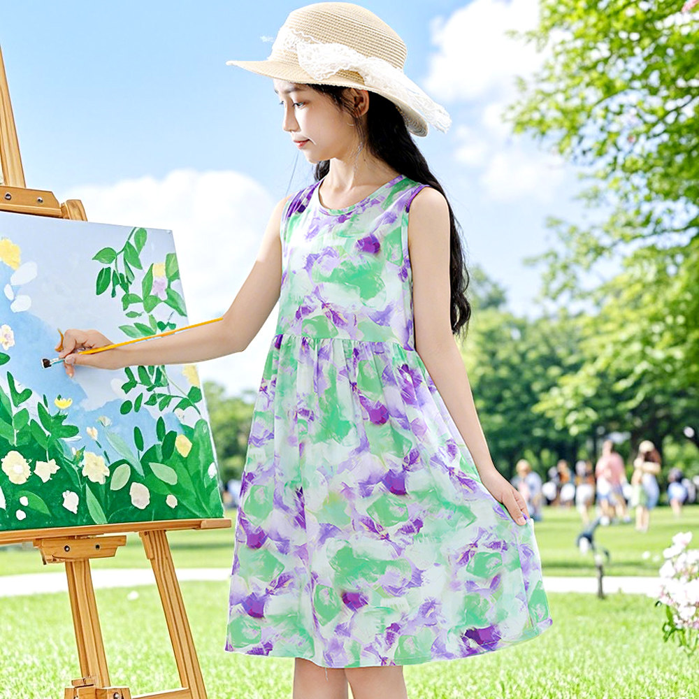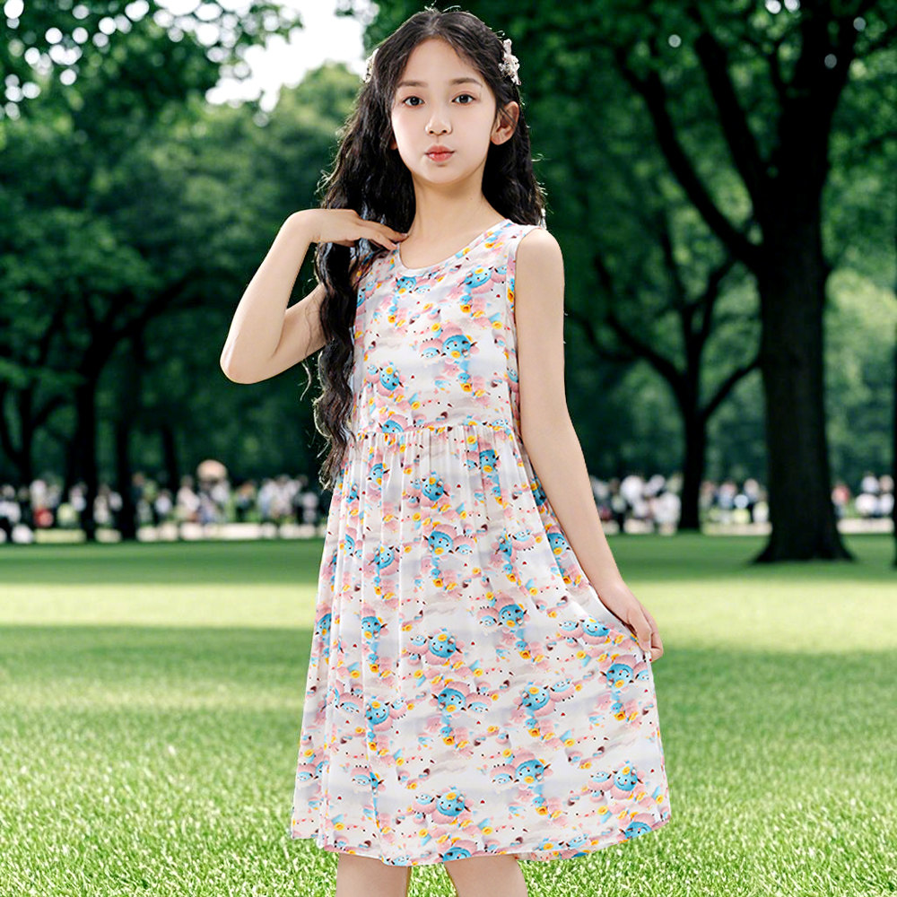 Детское летнее платье, детская юбка, дышащий тонкий наряд маленькой принцессы без рукавов с круглым воротником, в цветочек