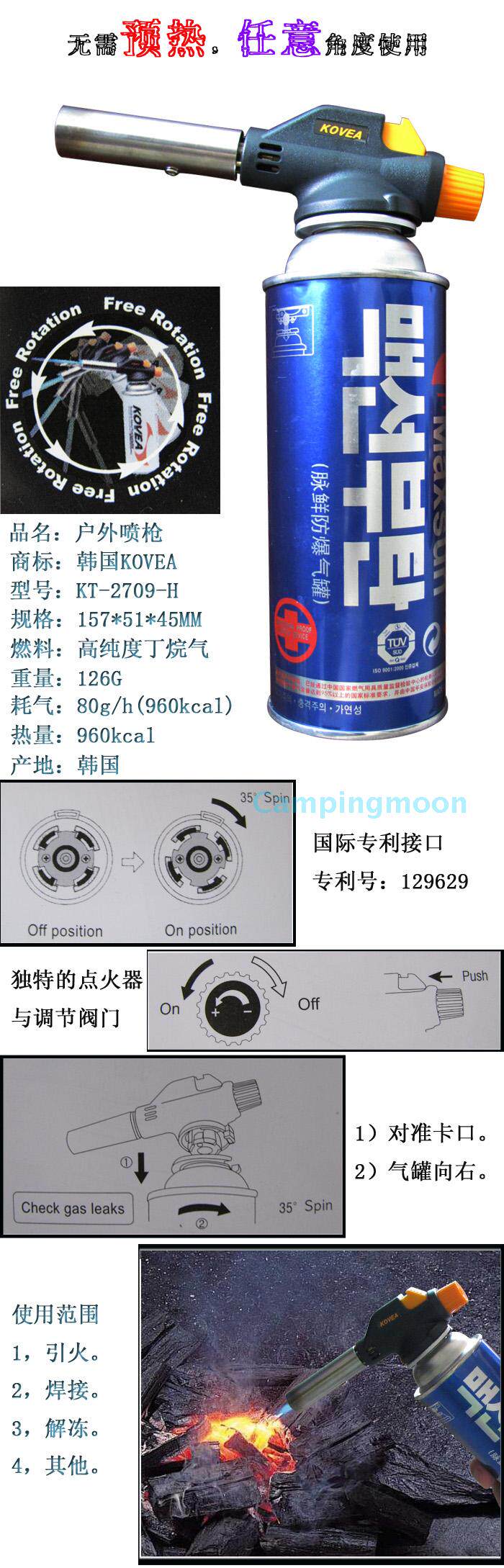Предварительное нагревание новой корейской импортированной спрей-пистолет Kovea KT-2709-H Отобление пистолет-пистолет.