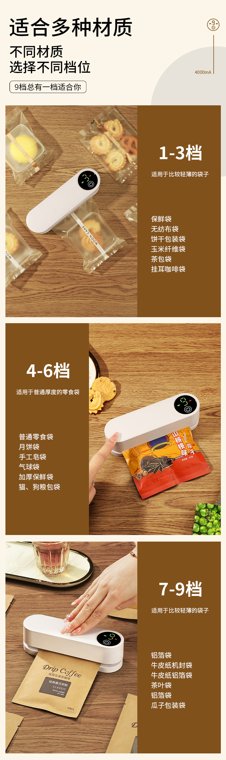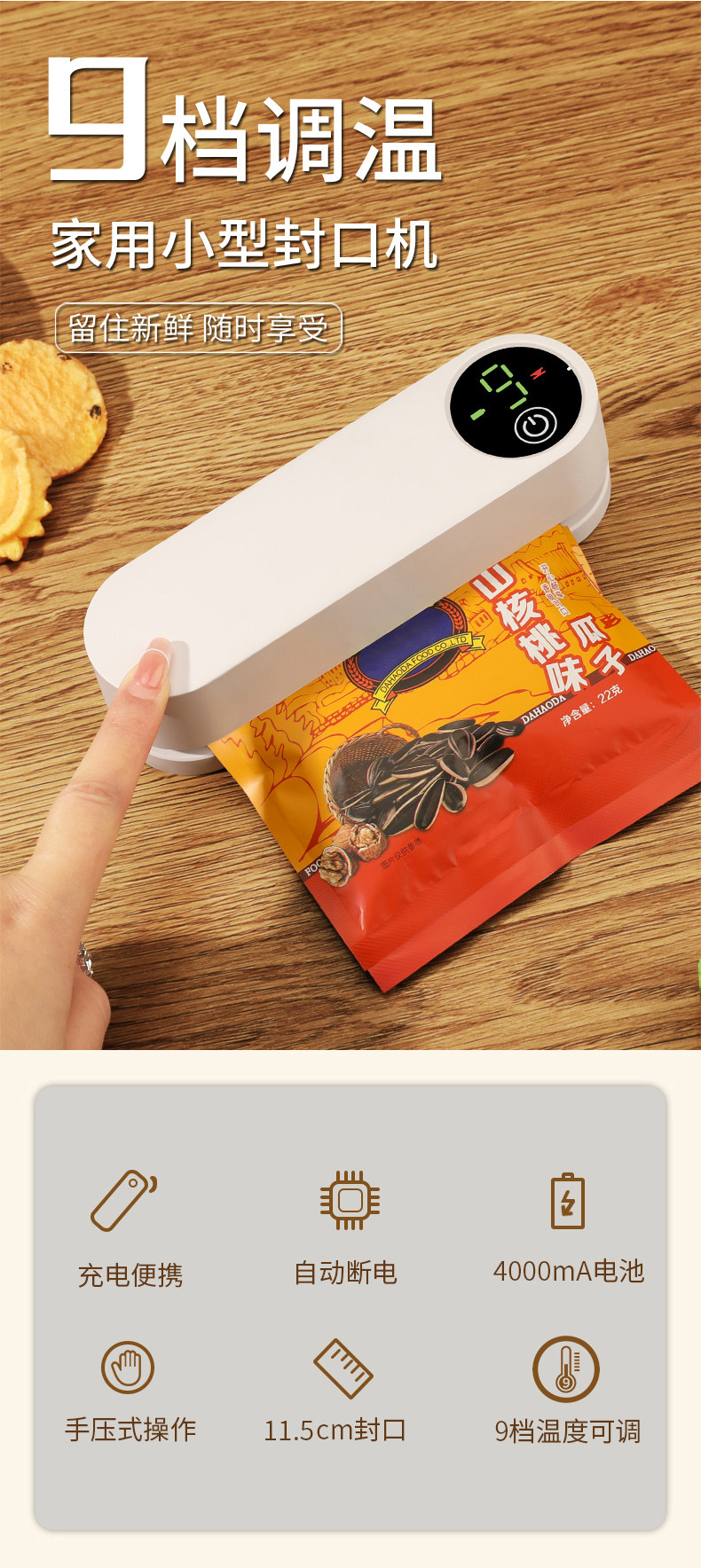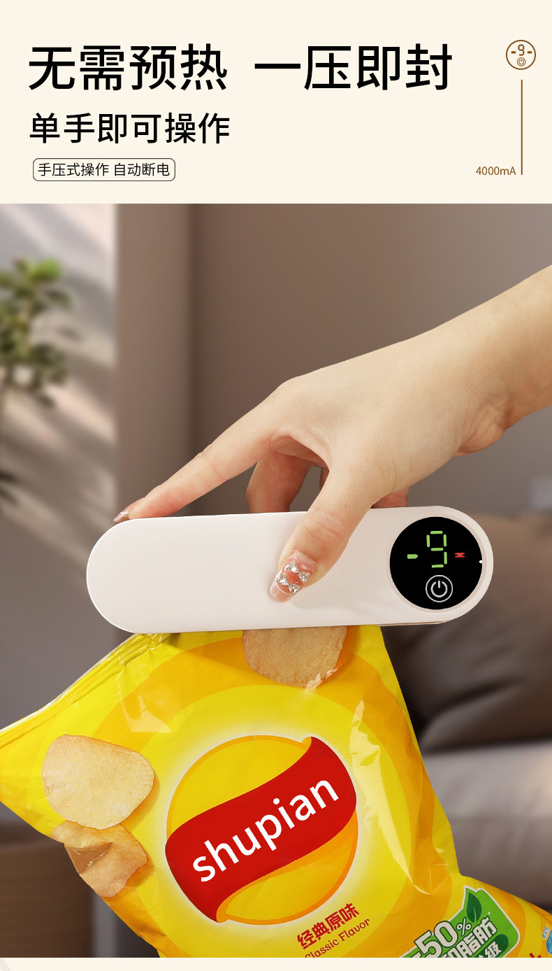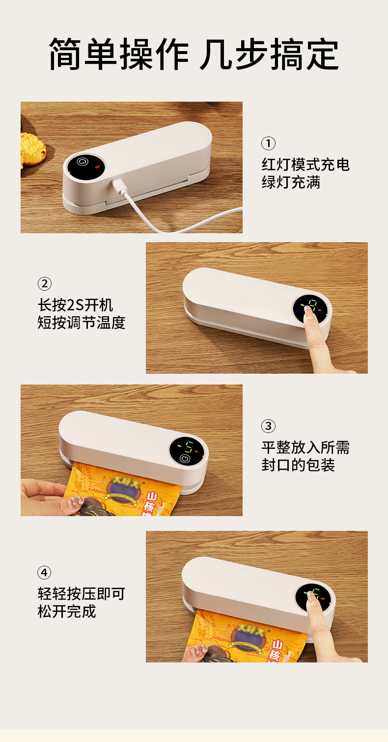Mongdio Запечатывающая машина, бытовая маленькая мини-закуска, портативный запайщик пакетов, запайщик для пищевых продуктов, зажим для запечатывания с подогревом