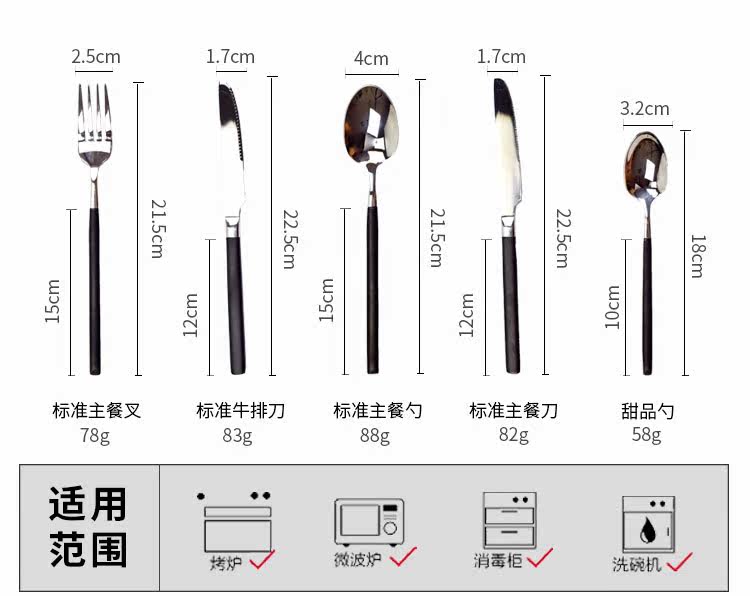 | Цвет: | Стандартная вилка основного блюда, Стандартный стейк -нож, Стандартная ложка основной еды, Стандартный главный нож, Десертная ложка |