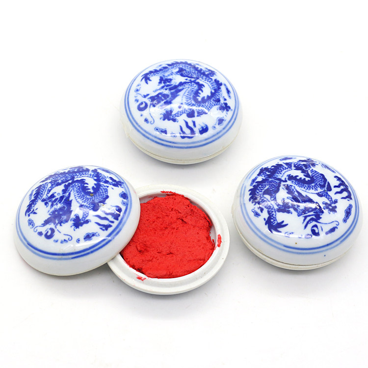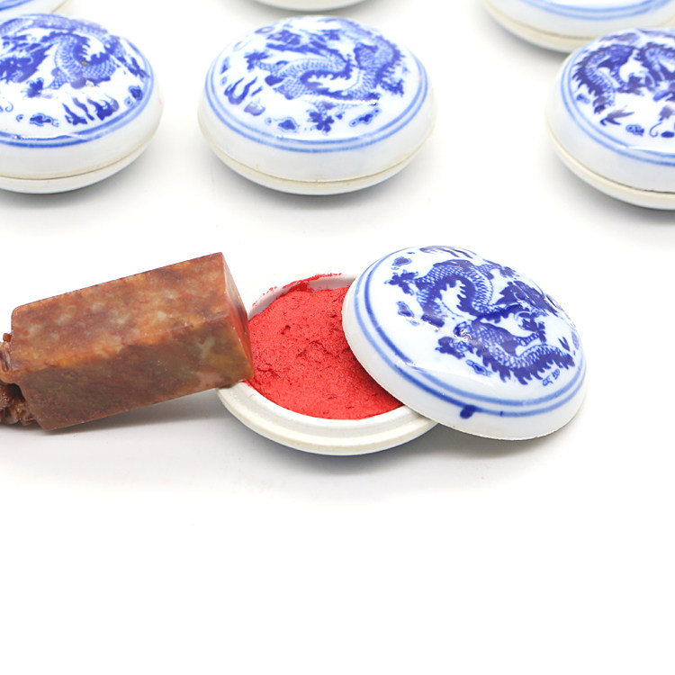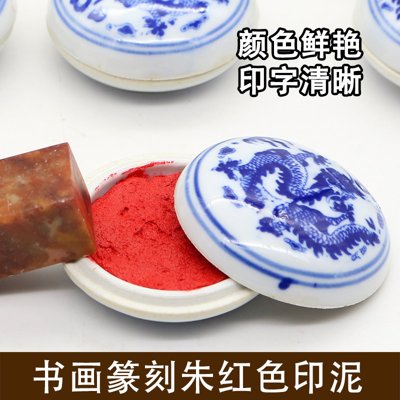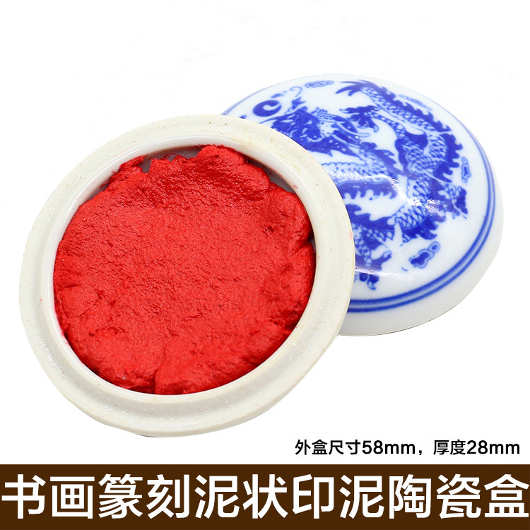 Портативная фарфоровая коробка с красной вермилионом содержит индонезийская каллиграфия, печать по рисованию чернил в уплотнении, уплотнение, уплотнение, уплотнение, уплотнение, уплотнение Текстовая комната Четыре сокровища